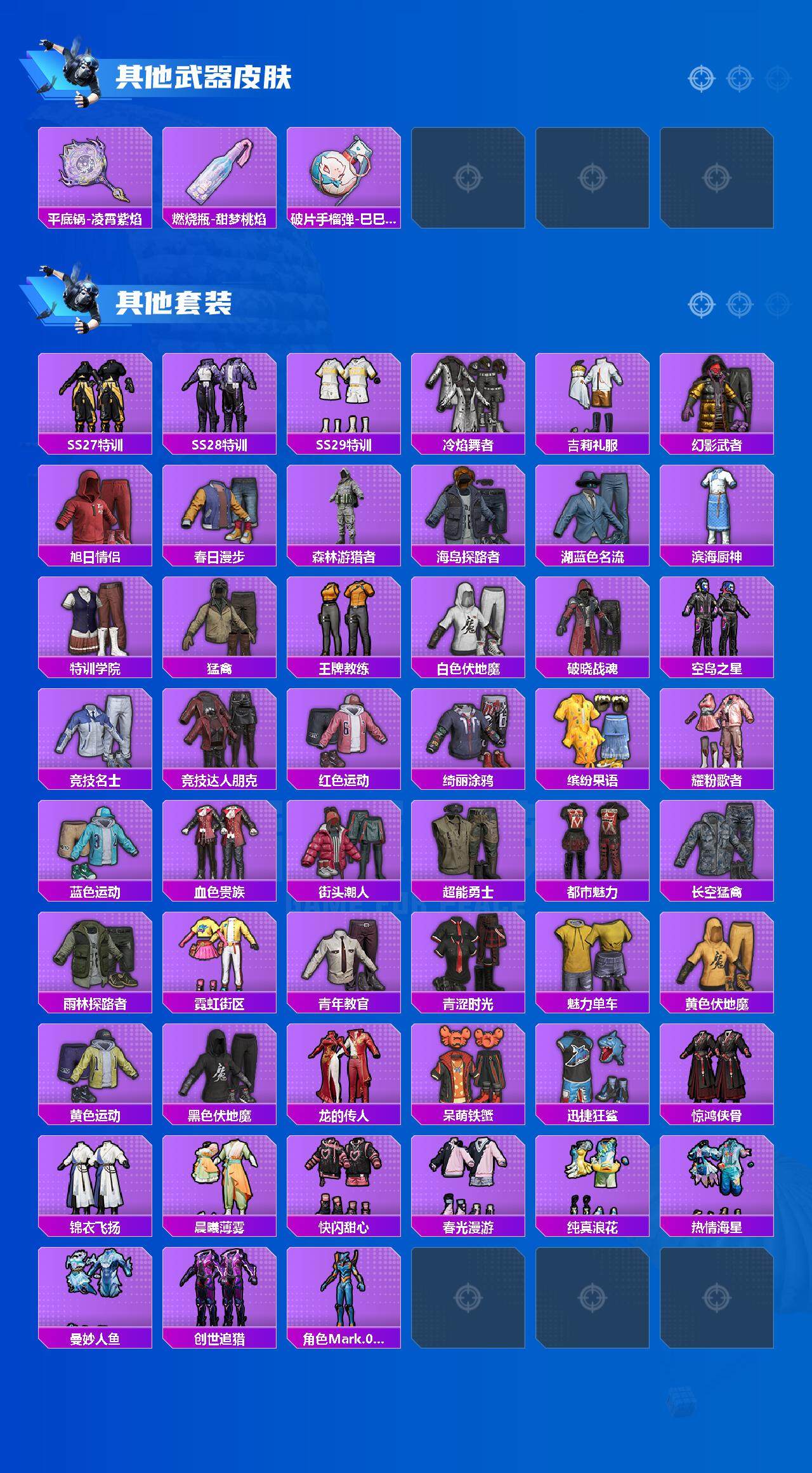 0载具-94套装-134呛皮-94套装/呛械3/装备192/战备91/王牌印记5/热力值36546/五级kar98k-巳巳如意/七级amr-智耀战神/五级dp-28-豹影疾电/角色-mark.06/未来战士/萨利娅/角色-智耀战神/kar98k-巳巳如意/amr-智耀战神/dp-28-豹影疾电/未来战士降落伞/星之彼岸降落伞/精灵梦叶罗丽降落伞/金丰海韵降落伞/未来领航者降落伞/智耀战神降落伞/幻彩电音降落伞/异瞳寒姬降落