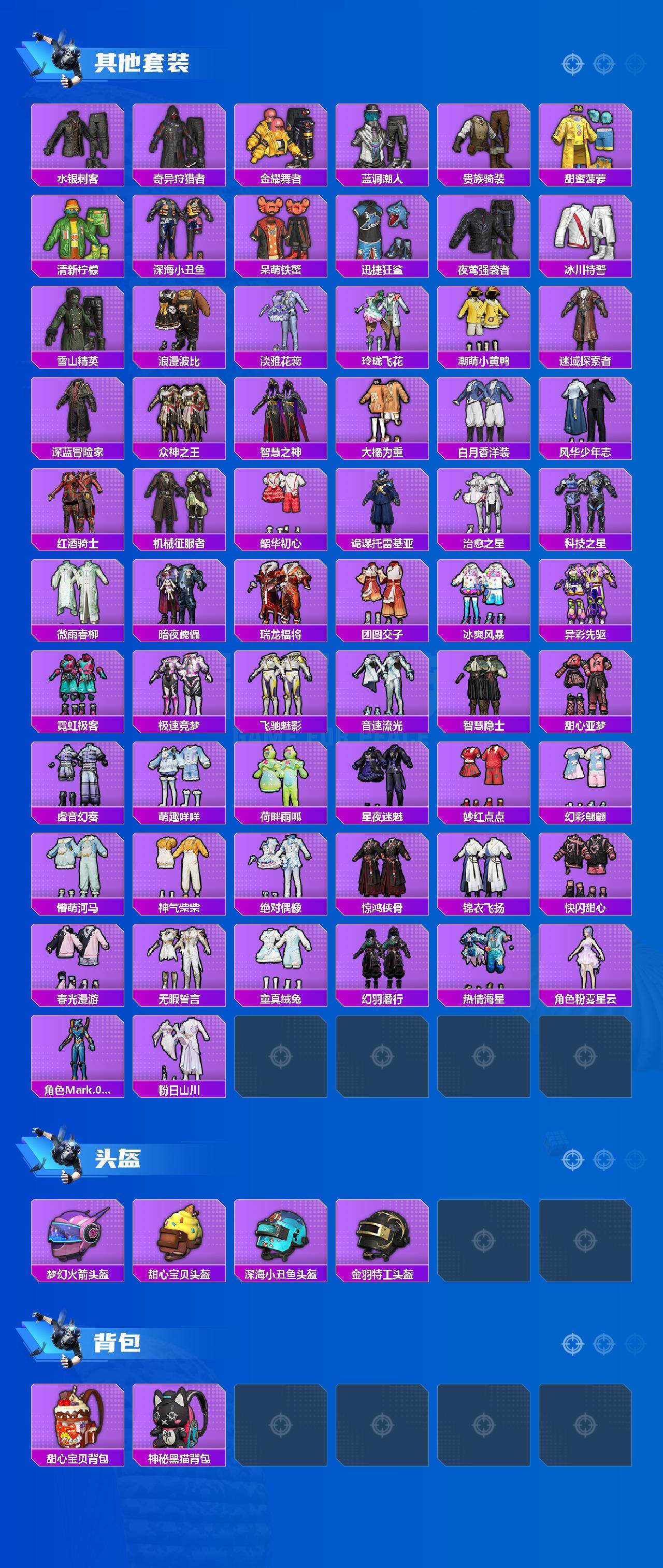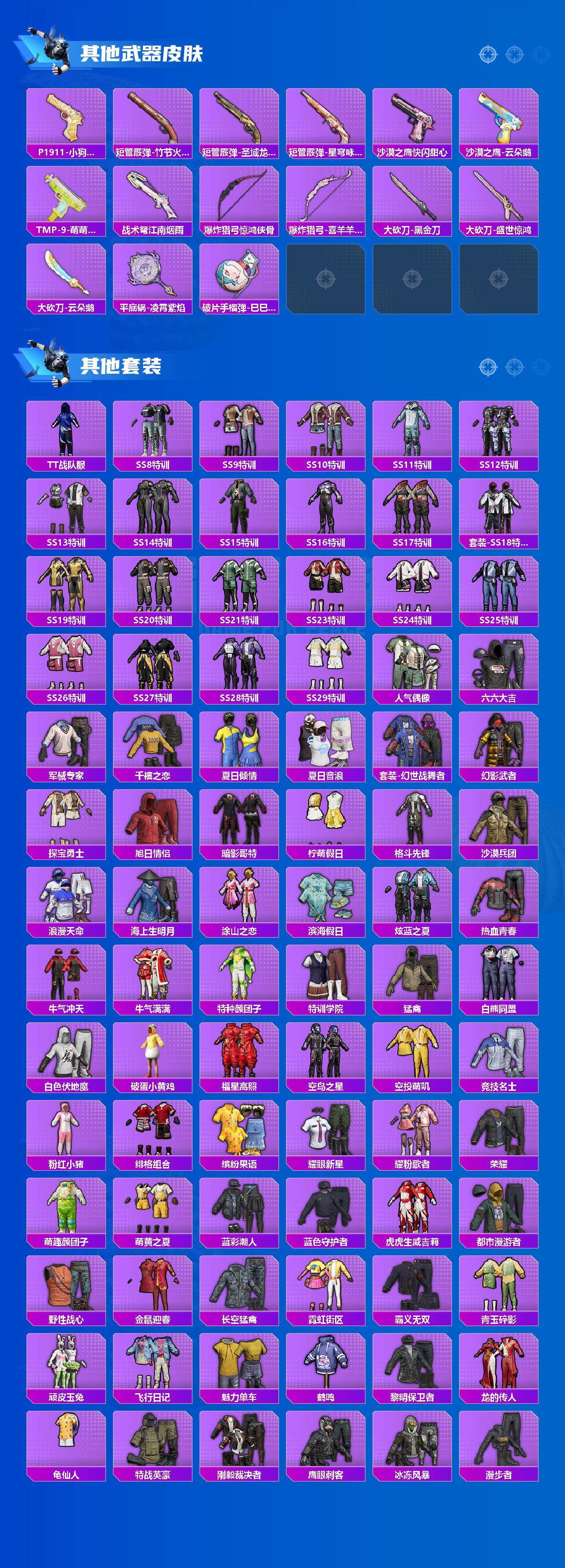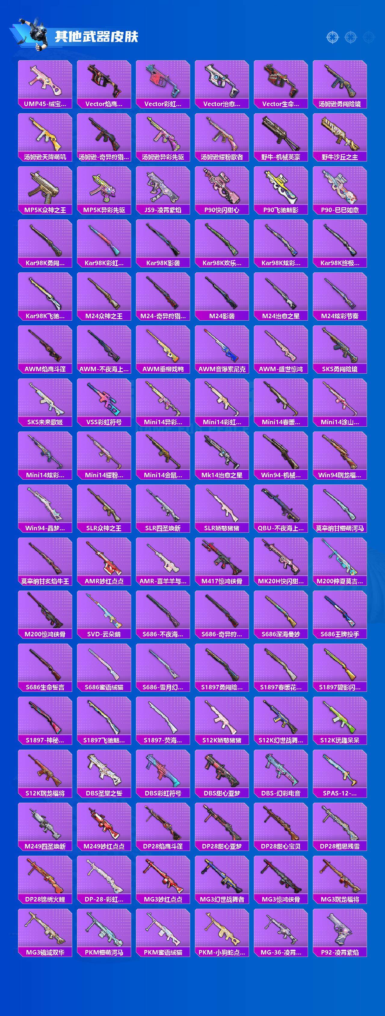 1载具-218套装-329呛皮-218套装/呛械11/装备387/载具1/战备209/王牌印记14/热力值99982/五级akm-幻海仙踪/五级scar-l-锦绣绵绵/五级m416-风花雪月/三级p90-沙丘之主/五级kar98k-巳巳如意/六级m24-魔法神域/三级mk14-盛世惊鸿/七级amr-炫光之旅/五级dp-28-豹影疾电/七级平底锅-仲夏莫吉托/五级破片手留单-瓶中星球/套装-浪漫天命/都市猎人/深海小丑鱼/奇异