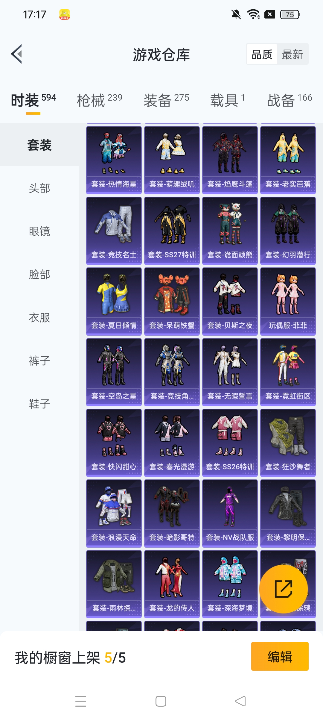 1载具-157套装-239呛皮-地铁变卖物超多,套装-浪漫天命套装-狂沙舞者套装-暗影哥特套装-nv战队服角色-迪迦奥特曼套装-筑梦精灵角色-星云暗核套装-莲影清波套装-炫光之旅套装-老实芭蕉角色-mark.06套装-金丰海韵角色-羊梦糖心,akm-绿萝繁花scar-l-梦幻火箭m416-心之恋语ka