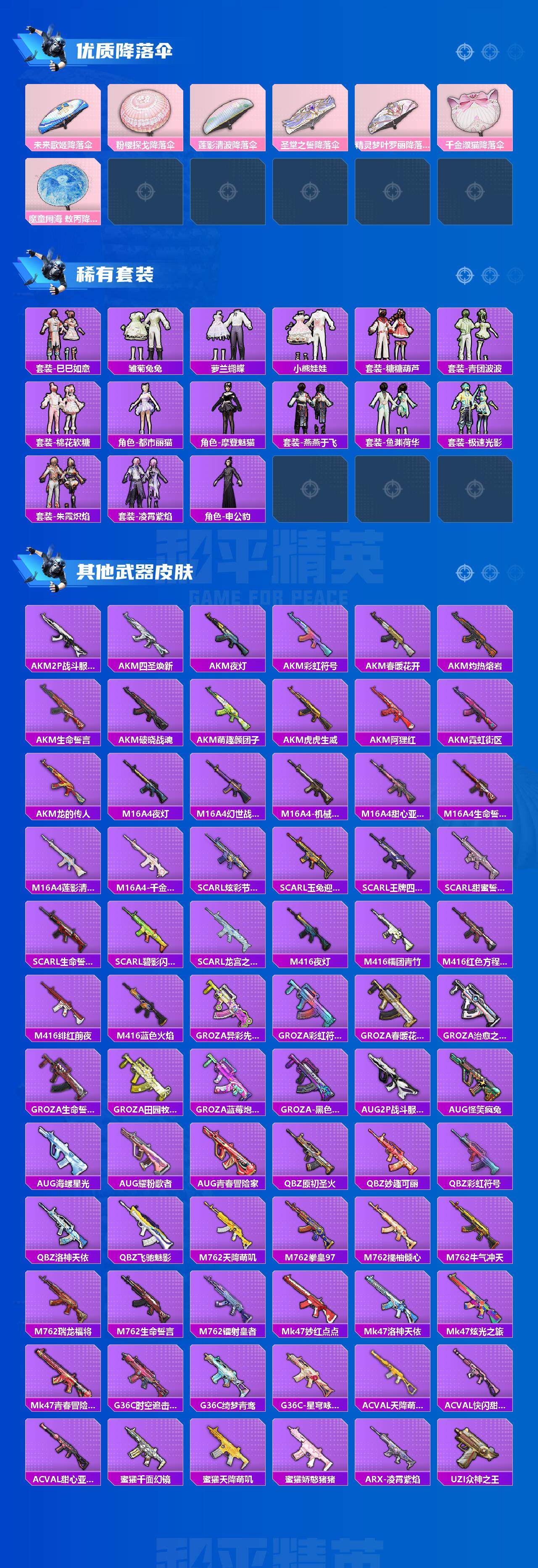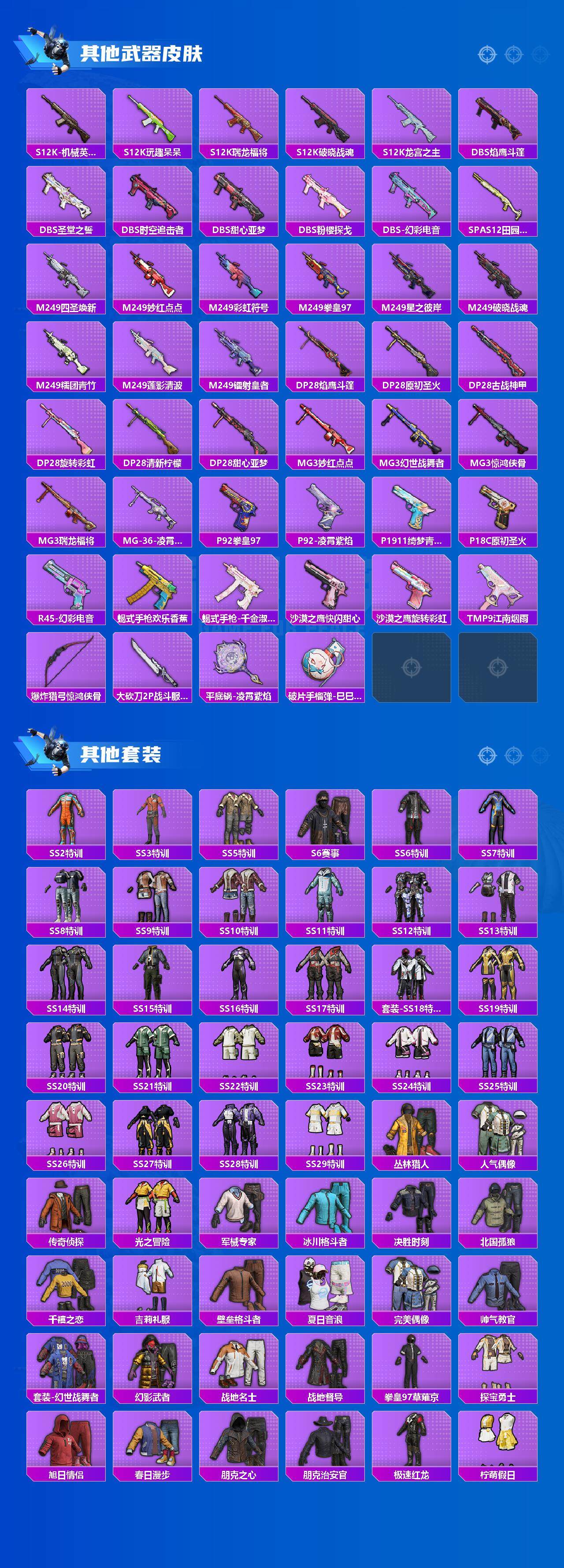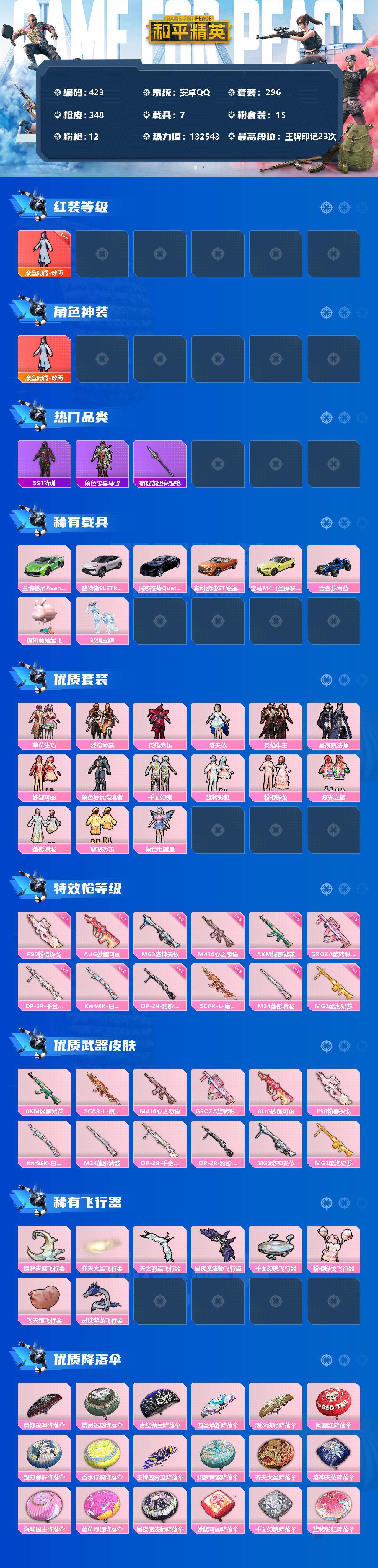 7载具-296套装-348呛皮-296套装/呛械12/装备469/载具7/战备272/王牌印记23/热力值/五级akm-绿萝繁花/三级scar-l-魔童闹海 哪吒/六级m416-心之恋语/五级groza-旋转彩虹/七级aug-妙趣可丽/七级p90-粉樱探戈/五级kar98k-巳巳如意/二级m24-莲影清波/五级dp-28-千金淑猫/五级dp-28-豹影疾电/六级mg3-洛神天依/mg3-酷泡奶龙/二级魔童闹海-敖