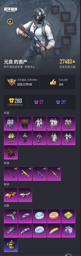 [14484768]苹果【小号/11粉装-4特效呛-2载具-2粉色飞行器】 手q27483热力值-4王牌印记-58套装-64呛皮 【热门品类】:套装-深海小丑鱼 【粉色载具】:路特斯evija(星际黄),路特斯eletre(花绽灰) 【粉色套装】:粉装-天禅智恒,粉装-彗云及圣,粉装-冰霜白皇,粉装-炙焰红王,粉装-彩虹鹿灵,粉装-山涧鹿灵,粉装-薄荷物语,粉装-恐龙拽拽,粉装-冷魅冰骑,粉装-赤焰黑爵,粉装-紫电风暴 【粉色呛皮等级】:scar-l-青春物语五级,ump45-恐龙拽拽五级,sks-碧影闪光二级,dp-28-豹影疾电四级 【粉色呛皮】:scar-l-青春物语,ump45-恐龙拽拽,sks-碧影闪光,dp-28-豹影疾电 【粉色飞行器】:春暖花开飞行器,伏魔团飞行器 【粉色降落伞】:幻影战神降落伞,荧光虫舞降落伞,碧影闪光降落伞,青春物语降落伞,百合蜜语降落伞,恐龙拽拽降落伞,橘柚倾心降落伞,冷魅冰骑降落伞 【稀有呛皮】:akm-恐龙拽拽,m16a4-幻世战舞者,m16a4-甜心亚梦,scar-l-碧影闪光,m416-糯团青竹,m416-紫翼圣骑,m416-红色方程式,groza-恐龙拽拽,groza-田园牧歌,groza-紫翼圣骑,q-暗翼战神,q-飞驰魅影,m762-天降萌叽,m762-橘柚倾心,g36c-冷魅冰骑,ac-val-天降萌叽,ac-val-甜心亚梦,蜜獾-天降萌叽,uzi-墨染幽兰,uzi-幻影战神,uzi-红色方程式,vect-田园牧歌,vect-百合蜜语,汤姆逊-天降萌叽,汤姆逊-幻影战神,汤姆逊-林间仙鹿,p90-飞驰魅影,kar98k-洛神天依,kar98k-炫彩节奏,kar98k-飞驰魅影,m24-炫彩节奏,m24-百合蜜语,awm-恐龙拽拽,vss-田园牧歌,vss-碧影闪光,mini14-炫彩节奏,s686-橘柚倾心,s1897-碧影闪光,s1897-飞驰魅影,s12k-幻世战舞者,s12k-幻影战神,dbs-甜心亚梦,spas-12-田园牧歌,m249-冷魅冰骑,m249-糯团青竹,dp-28-橘柚倾心,dp-28-甜心亚梦,mg3-幻世战舞者,沙墨之鹦-旋转彩虹 【其他套装】:套装-ss19特训,套装-ss20特训,套装-ss21特训,套装-ss22特训,套装-夏日音浪,套装-幻世战舞者,套装-怒火