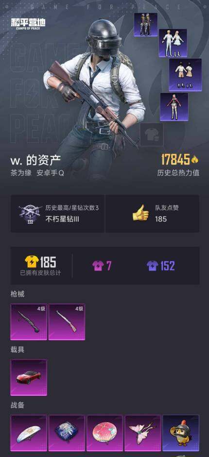 [14485504]苹果【小号 阿斯顿马丁 雪山精英】 手q-0粉装-0特效呛-1载具-0粉色飞行器-7892热力值-1王牌印记-22套装-23呛皮 【粉色降落伞】:精灵迷巫降落伞 【稀有呛皮】:akm-星之信仰,akm-霓虹街区,scar-l-红色方程式,m416-蓝色火焰,groza-黑色刀锋,vect-黑色刀锋,kar98k-红色方程式,sks-夜灯,vss-华贵君王,vss-黑色刀锋,s686-生命誓言 【其他套装】:套装-ss2特训,套装-ss5特训,套装-ss6特训,套装-ss7特训,套装-ss8特训,套装-丛林猎人,套装-北国孤狼,套装-格斗先锋,套装-滨海厨神,套装-疯狂小兔子,套装-竞技勇士朋克,套装-蓝彩潮人,套装-蓝色守护者,套装-跃动心情,套装-霓虹街区,套装-魅力单车,套装-战地菁英,套装-雪山精英,套装-圣诞大吉,套装-核芯基因,套装-精神漫游,套装-黑色刀锋 【稀有头盔】:精灵迷巫头盔(1级) 【稀有背包】:精灵迷巫背包(2级),木曜青龙背包(3级) 【营地id】:921570883