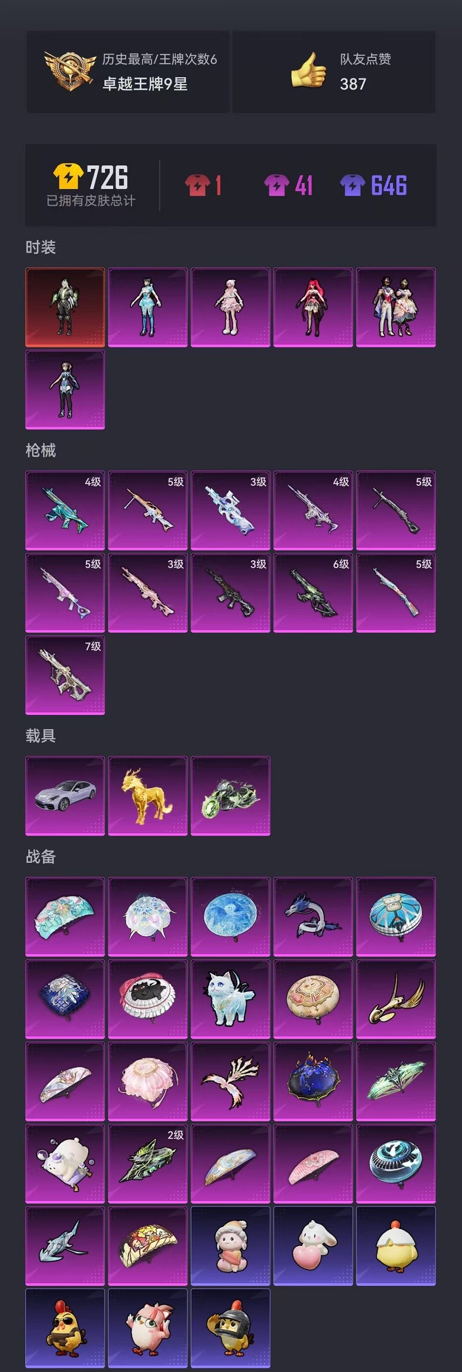 3载具-126套装-188呛皮-【3级红装11特效呛5粉装3载具素材号 秒换绑不用等】 安卓q区-71756热力值-6印记-126套装-188呛皮 【1红装】 幽焰骑士-维塔3级【3载具】 护世瑞兽 幽焰风驰摩托车 保时捷panamera星辰紫【5粉装】 角色-异瞳寒姬 角色-绯穹魔姬 星穹咏叹调 角色-脆鲨七海 角色-羊梦糖心【11特效呛】 m416-墨龙九天3级 akm-幽焰骑士6级 mk