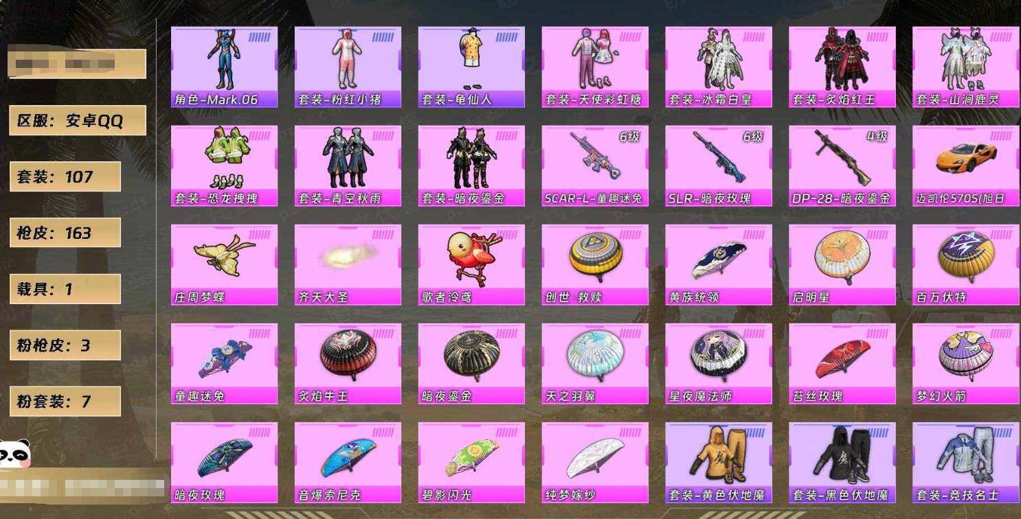 [14485662]安卓 【公主号 天使彩虹糖 山涧鹿灵 恐龙拽拽 迈凯伦570s(旭日黄 童趣迷兔六级 暗夜玫瑰六级】手q-7粉装-3特效呛-1载具-3粉色飞行器-53692热力值-8王牌印记-111套装-166呛皮 【热门品类】:套装-龟仙人,套装-粉红小猪,角色-mark.06 【粉色载具】:迈凯伦570s(旭日黄) 【粉色套装】:粉装-天使彩虹糖,粉装-冰霜白皇,粉装-炙焰红王,粉装-山涧鹿灵,粉装-恐龙拽拽,粉装-青空秋雨,粉装-暗夜鎏金 【粉色呛皮等级】:scar-l-童趣迷兔六级,slr-暗夜玫瑰六级,dp-28-暗夜鎏金四级 【粉色呛皮】:scar-l-童趣迷兔,slr-暗夜玫瑰,dp-28-暗夜鎏金 【粉色飞行器】:齐天大圣飞行器,庄周梦蝶飞行器,歌者泠鸢飞行器 【粉色降落伞】:百万伏特降落伞,梦幻火箭降落伞,童趣迷兔降落伞,暗夜玫瑰降落伞,天之羽翼降落伞,碧影闪光降落伞,炙焰牛王降落伞,星夜魔法师降落伞,启明星降落伞,暗夜鎏金降落伞,苔丝玫瑰降落伞,音爆索尼克降落伞,纯梦嫁纱降落伞,黄族统领降落伞,创世·救赎降落伞 【稀有套装】:套装-龟仙人 【稀有呛皮】:akm-奇异狩猎者,akm-彩虹符号,akm-星之彼岸,akm-星兔领航员,akm-灼热熔岩,akm-破晓战魂,akm-萌趣颜团子,akm-虎虎生威,akm-霓虹街区,akm-龙的传人,m16a4-幻世战舞者,m16a4-甜心亚梦,m16a4-红色方程式,scar-l-暗夜玫瑰,scar-l-炫彩节奏,scar-l-玉兔迎春,m416-暗夜行者,m416-糯团青竹,m416-红色方程式,m416-蓝色火焰,groza-异彩先驱,groza-懵萌河马,groza-田园牧歌,groza-紫翼圣骑,aug-耀粉歌者,q-彩虹符号,q-飞驰魅影,m762-天降萌叽,m762-奇异狩猎者,m762-暗夜鎏金,m762-瑞龙福将,m762-甜心宝贝,m762-第五大道,m762-风花雪月,mk47-妙红点点,mk47-百万伏特,g36c-懵萌河马,g36c-暗夜玫瑰,ac-val-天降萌叽,ac-val-甜心亚梦,蜜獾-天降萌叽,蜜獾-娇憨猪猪,蜜獾-桃夭倾城,uzi-墨染幽兰,uzi-娇憨猪猪,uzi-炫彩节奏,uzi-红色方程式,ump45-仲夏莫吉托,ump45-夜灯,ump45-灵符少年,