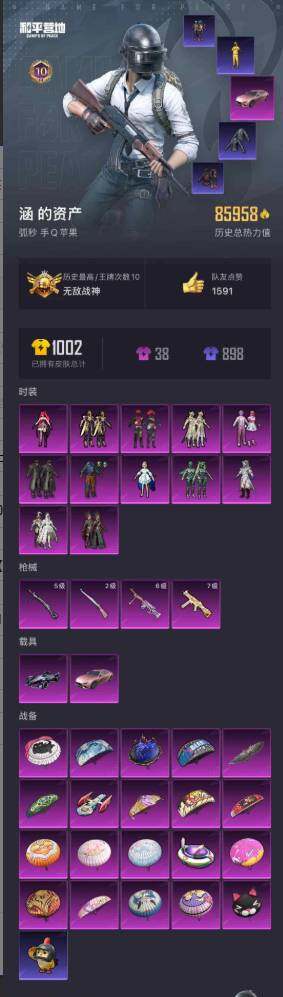 [14485887]苹果【战神号 怪诞乔克 浪漫天命 都市猎人 深海小丑鱼 暗影哥特 浪漫波比 绯穹魔姬 小丑红鼻头mark.06 未来战士 天使彩虹糖 放客神游 洛天依 玛莎拉蒂ghibli(粉),fmula e gen2(幽光蓝) 4特效呛 启明星满级】 手q-无敌战神框-12粉装-4特效呛-2载具-2粉色飞行器-85958热力值-10王牌印记-207套装-281呛皮 【热门品类】:粉装-怪诞乔克,套装-浪漫天命,套装-都市猎人,套装-深海小丑鱼,套装-龟仙人,套装-暗影哥特,套装-浪漫波比,角色-mark.06,小丑红鼻头 【粉色载具】:玛莎拉蒂ghibli(粉),fmula e gen2(幽光蓝) 【粉色套装】:粉装-未来战士,粉装-怪诞乔克,粉装-深渊皇后,粉装-天使彩虹糖,粉装-放客神游,粉装-翡翠骑士,粉装-银刃赛罗,粉装-冰霜白皇,角色-洛天依,粉装-射星猎手,套装-创世·救赎,角色-绯穹魔姬 【粉色呛皮等级】:ump45-启明星七级,kar98k-巳巳如意二级,dp-28-豹影疾电五级,pkm-守护天翼六级 【粉色呛皮】:ump45-启明星,kar98k-巳巳如意,dp-28-豹影疾电,pkm-守护天翼 【粉色飞行器】:太空嘟嘟飞行器 【粉色降落伞】:甜心宝贝降落伞,梦幻火箭降落伞,神秘黑猫降落伞,夏日绵绵冰降落伞,银刃赛罗降落伞,齐天大圣降落伞,蓝莓炮弹降落伞,橘柚倾心降落伞,彩虹甜喵降落伞,冰川粉黛降落伞,歌者泠鸢降落伞,沙丘之主降落伞,忍者神龟降落伞,英伦信使降落伞,bearbrick降落伞,鬼刀降落伞,雪月幻音降落伞,绯穹魔姬降落伞 【稀有套装】:套装-龟仙人,套装-雏菊兔兔,套装-萝兰蝴蝶,套装-糖糖葫芦,套装-青团波波,角色-怀庆长公主,套装-旋风灵鼠,套装-霓虹热舞,套装-云朵鹅,套装-雪绒豹,角色-绛羽幽主,套装-朱霞炽焰,套装-凌霄紫焰 【稀有呛皮】:akm-夜灯,akm-彩虹符号,akm-影袭,akm-星之信仰,akm-生命誓言,akm-破晓战魂,akm-萌趣颜团子,akm-霓虹街区,m16a4-夜灯,m16a4-红色方程式,m16a4-蓝色火焰,scar-l-玉兔迎春,scar-l-王牌四分卫,scar-l-红色方程式,scar-l-银河战甲,m416-滑板小狐,m416-糯团青竹,m416-红色方程式,m416-蓝