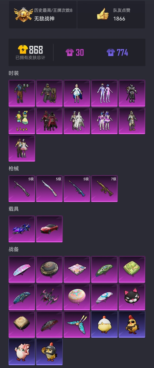 2载具-207套装-239呛皮-【战神框小丑都市男神梦幻火箭11粉装4特效呛2载具身法素材号 秒换绑不用等】 安卓q区-78915热力值-8印记-历史最高段位:无敌战神-207套装-239呛皮 【2载具】 阿斯顿马丁s红色 海龙奔腾【1稀有】 都市猎人【11粉装】 怪诞乔克(小丑) 梦幻火箭 洛天依 极致幻想 香水柠檬 冰霜白皇 蝶舞迷情 炙焰红王 飓风飞鹰 金曜白虎 极限特训【4特效呛】 m416-五爪金龙
