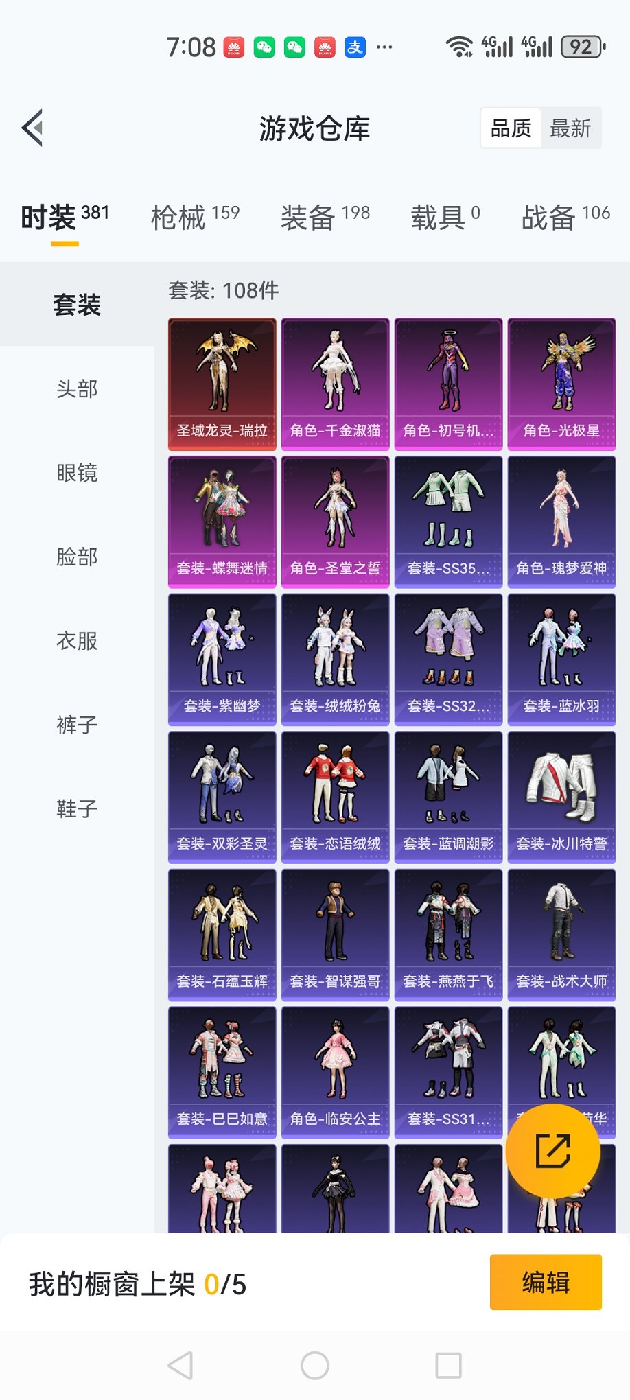 0载具-108套装-159呛皮-【3级红装螳螂满级m4五爪金龙7特效呛5粉装 秒换绑不用等】 安卓q区-53108热力值-7印记-108套装-159呛皮 【1红装】 圣域龙灵-瑞拉3级【1稀有】 8号机粉螳螂【5粉装】 角色-初号机 觉醒ver. 蝶舞迷情 圣堂之誓 角色-光极星 角色-千金淑猫【7特效呛】 kar98k-圣域龙灵2级 m416-五爪金龙7级 scar-l-锦绣绵绵5级 dp-