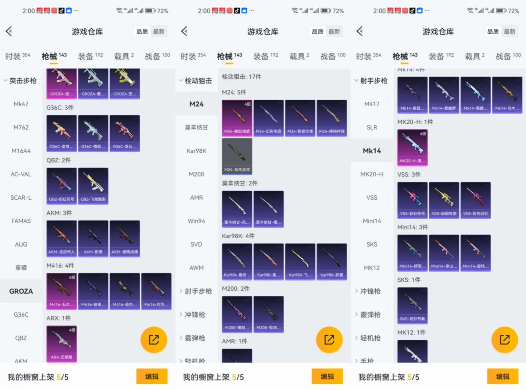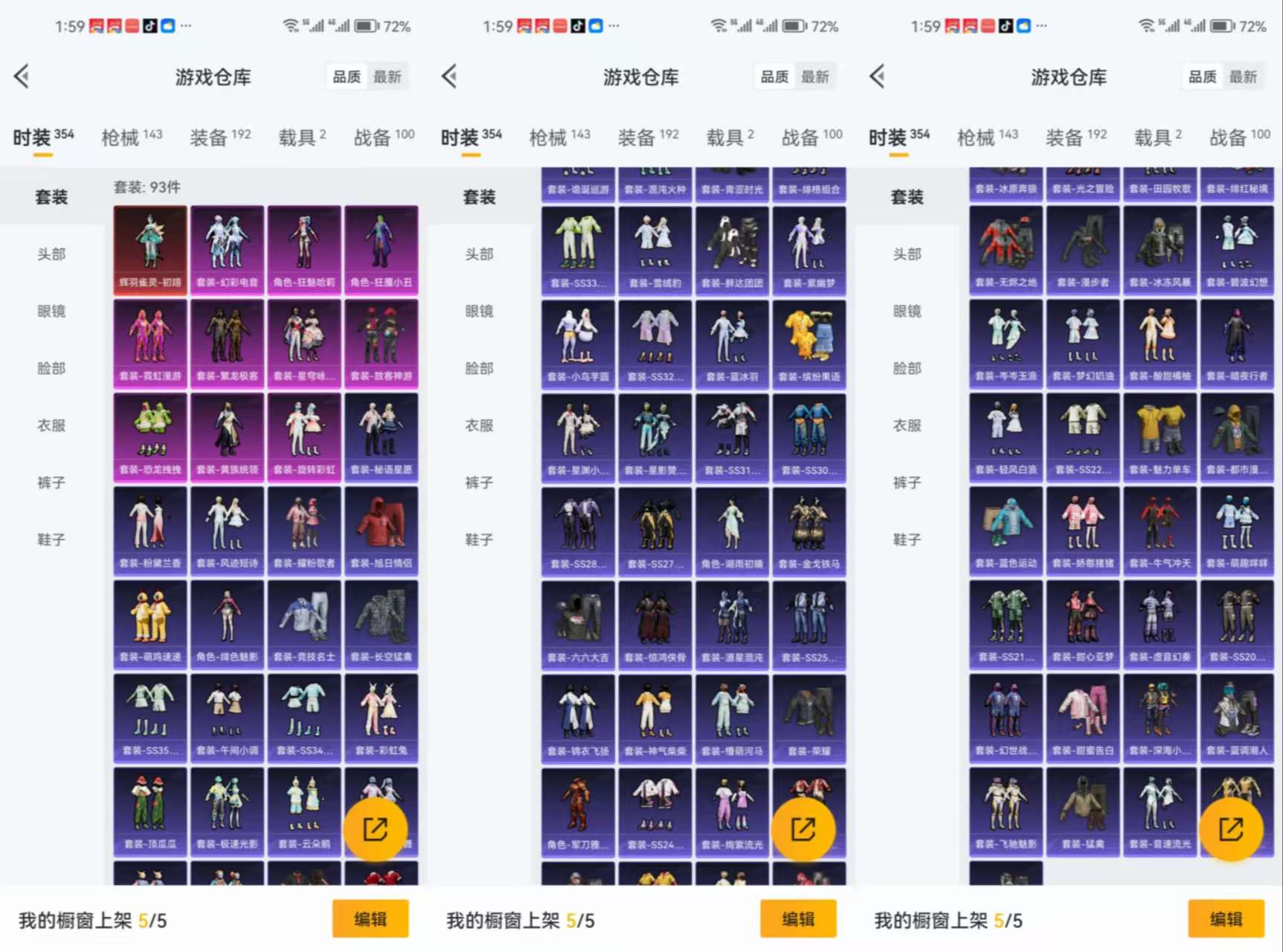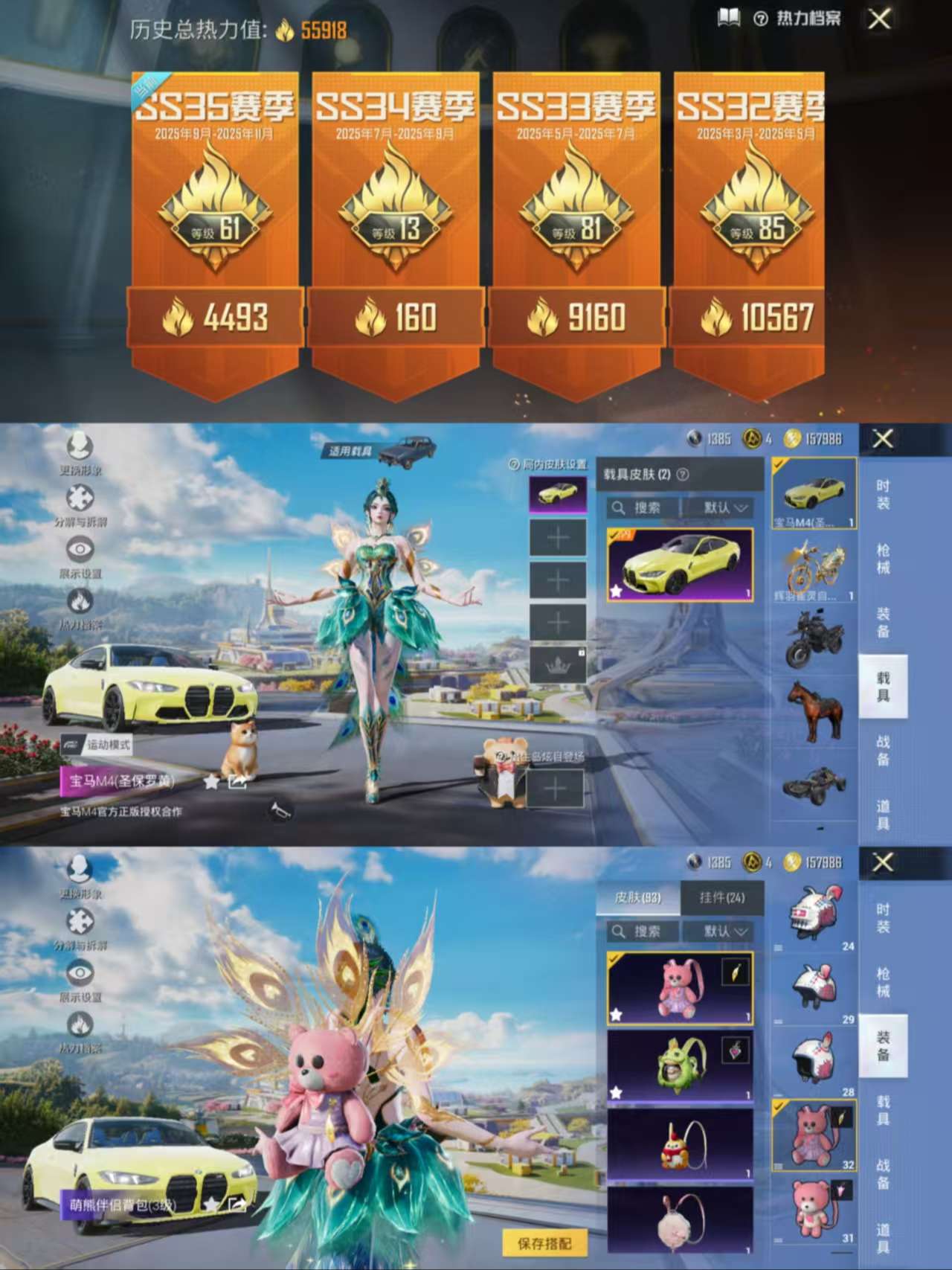 2载具-93套装-143呛皮-aqy616战神框-1红装9粉装-9特效呛2载具-55918热力值-5王牌印记-93套装-143呛皮【优质套装】无二次: 放客神游 繁龙极客 恐龙拽拽 霓虹漫游 黄族统领 旋转彩虹【优质载具皮肤】 宝马m4圣保罗黄【特效呛等级】:m416-五爪金龙五级m416-五爪金龙groza-旋转彩虹五级groza-旋转彩虹m24-翩跹演武四级m24-翩跹演武20-h-海螺星光