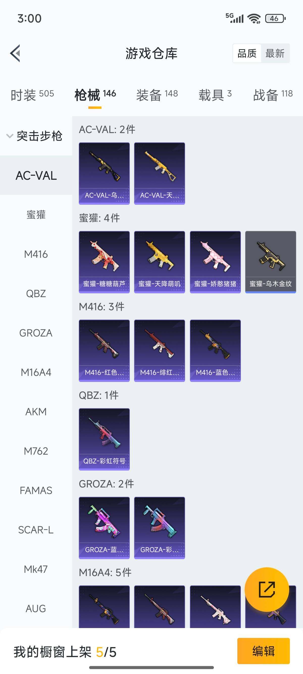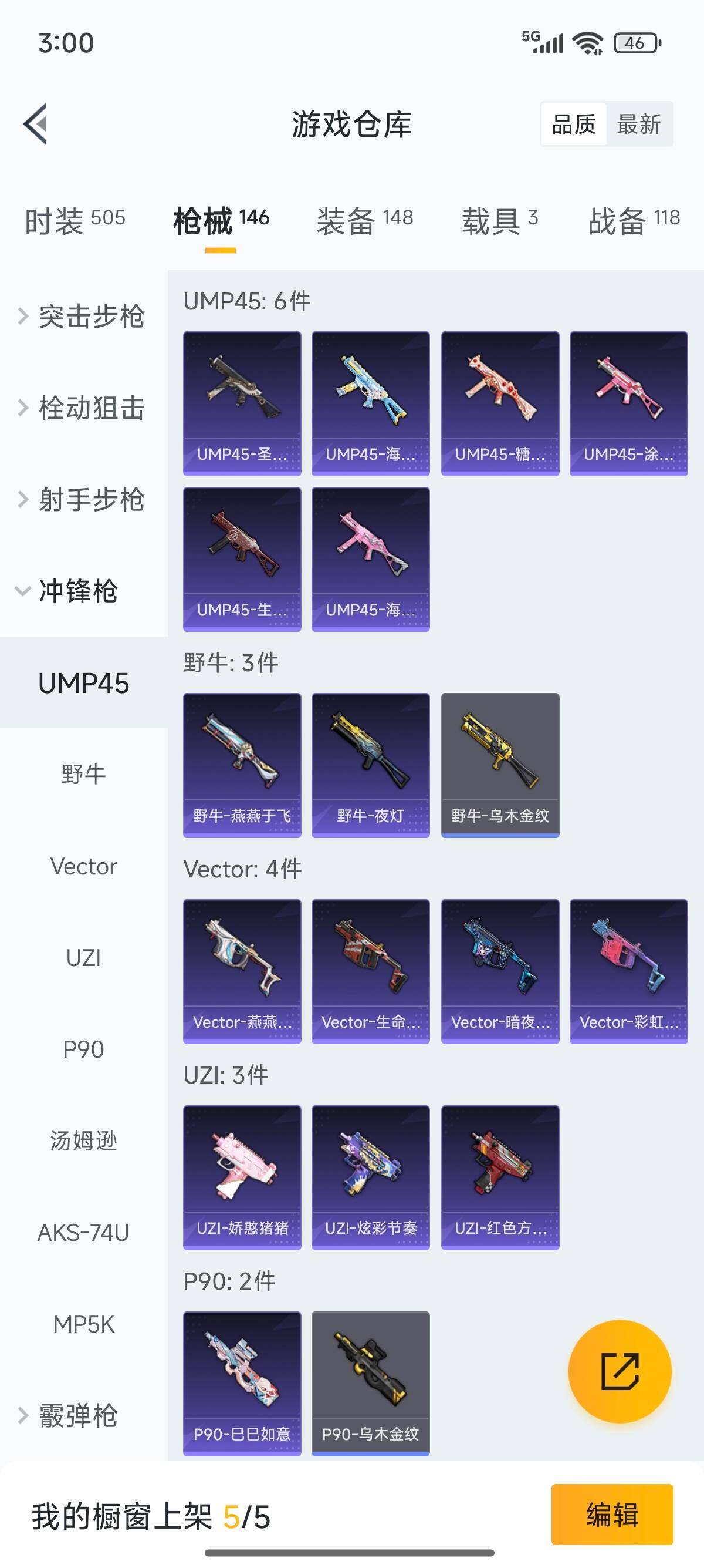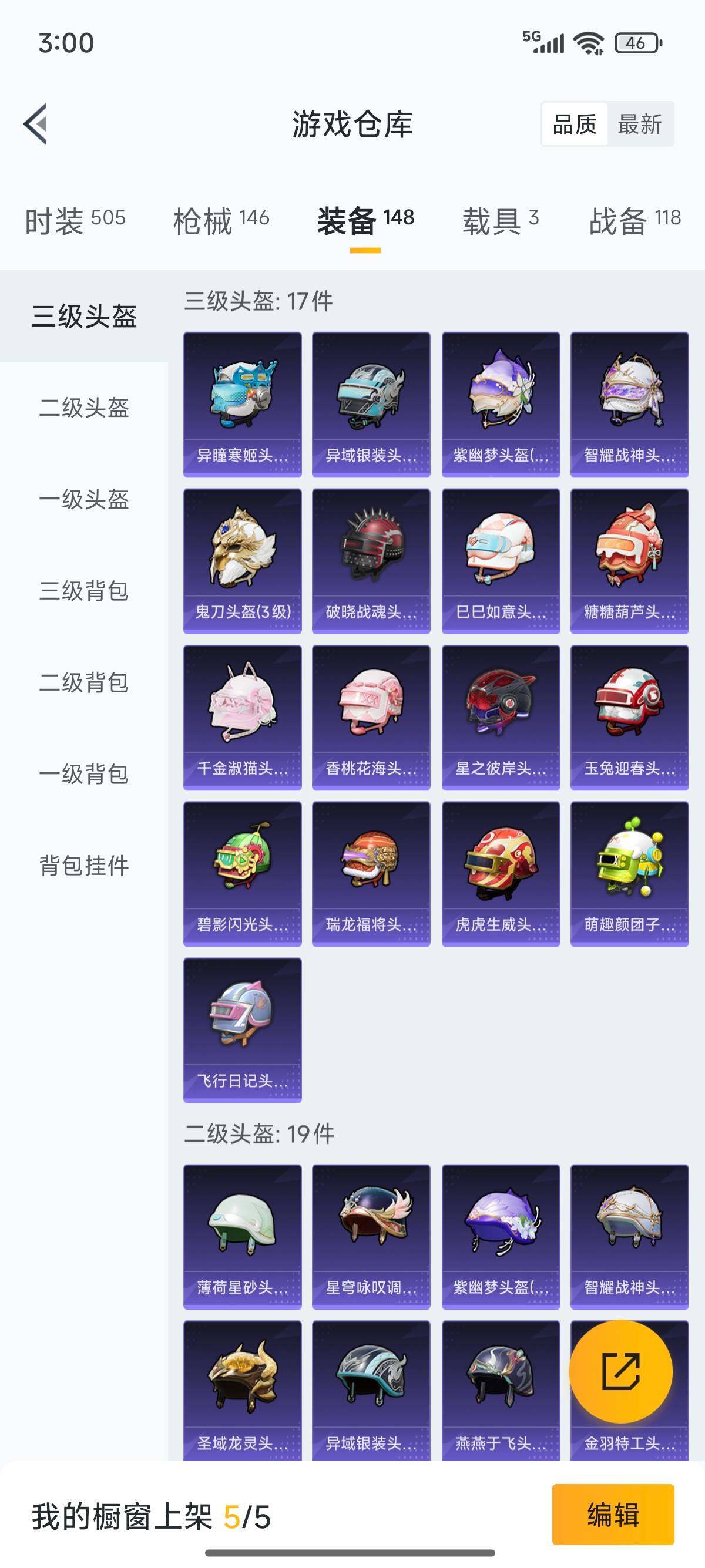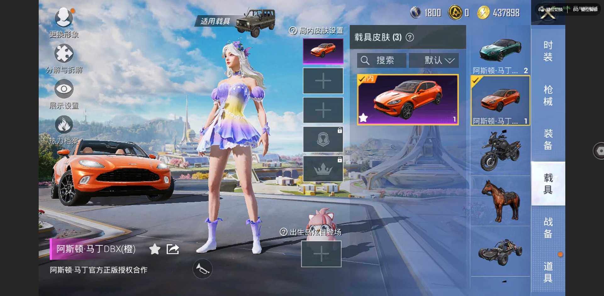 3载具-505套装-146呛皮-时装数: 130 载具数: 3 呛械数: 146 战备数: 118 热门装扮: 萨利娅 载具: 阿斯顿·马丁dbs红阿斯顿·马丁dbs绿阿斯顿·马丁dbx橙 稀有呛皮: 五级kar98k-巳巳如意五级dp-28-豹影疾电