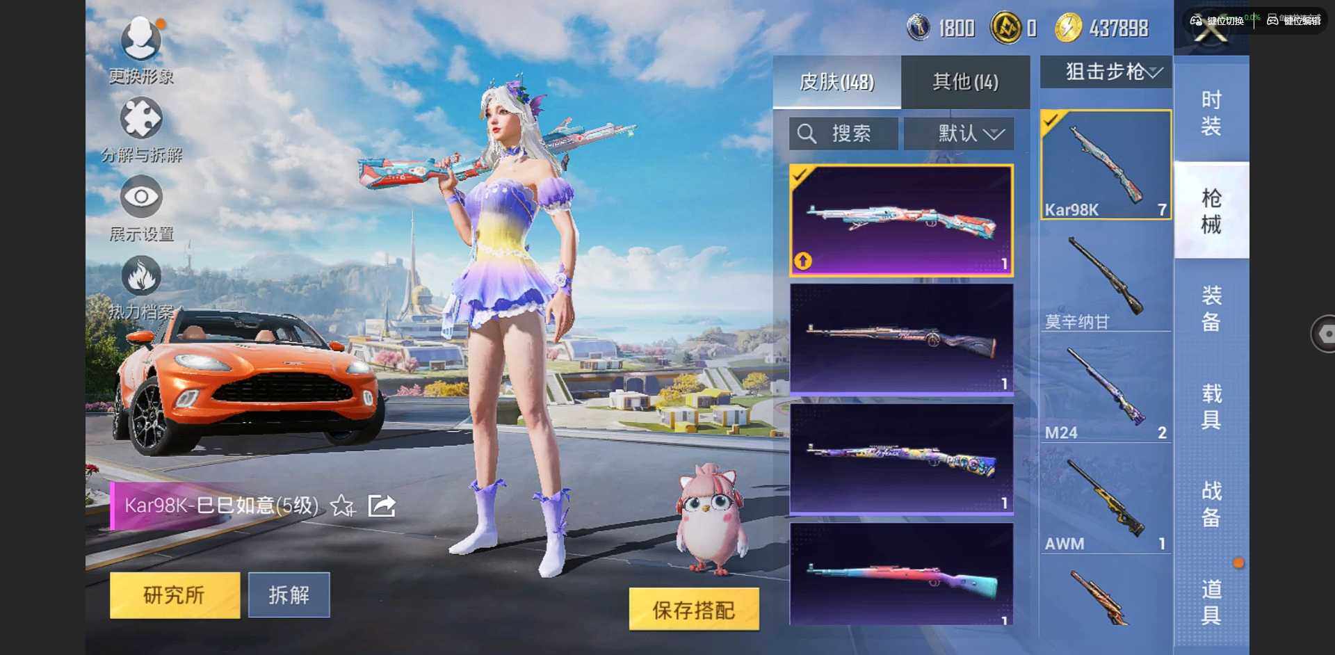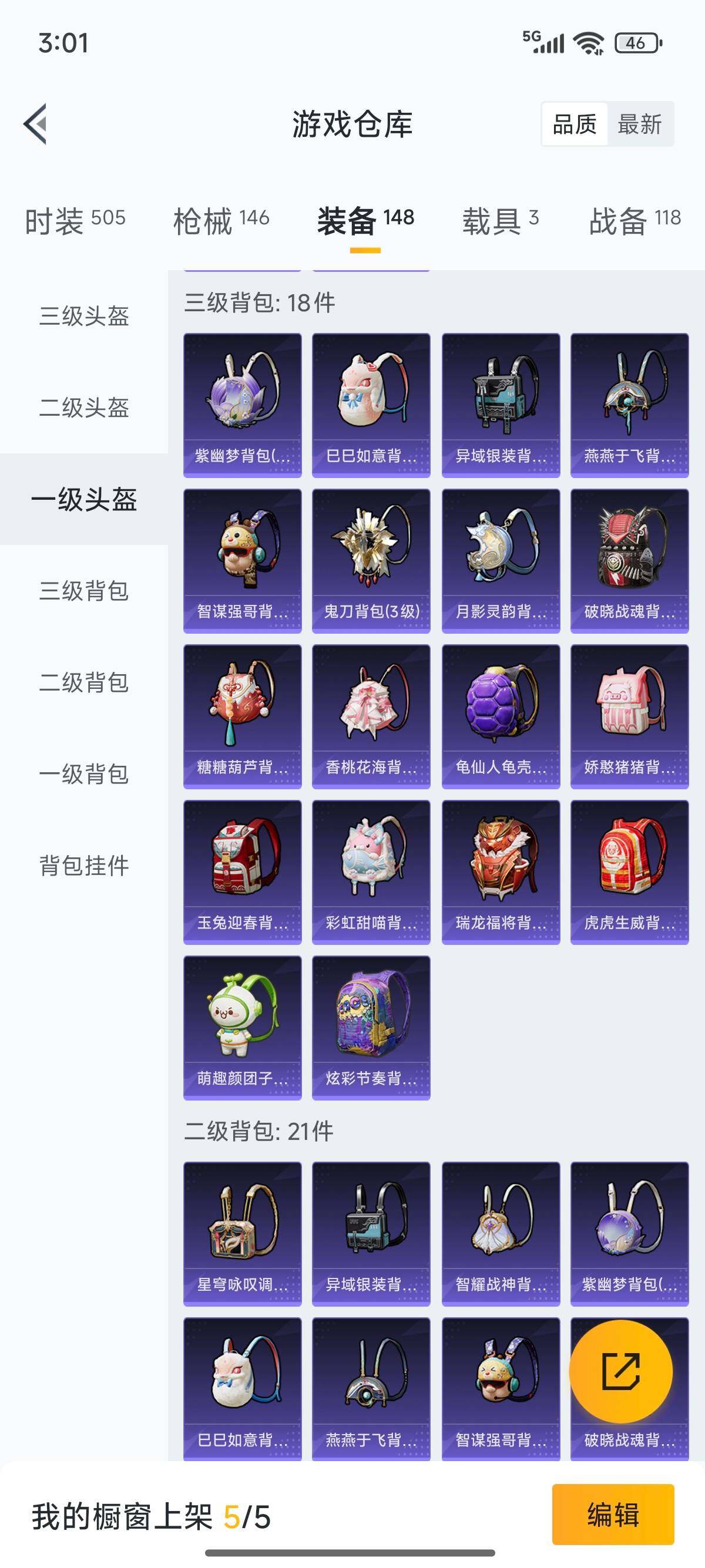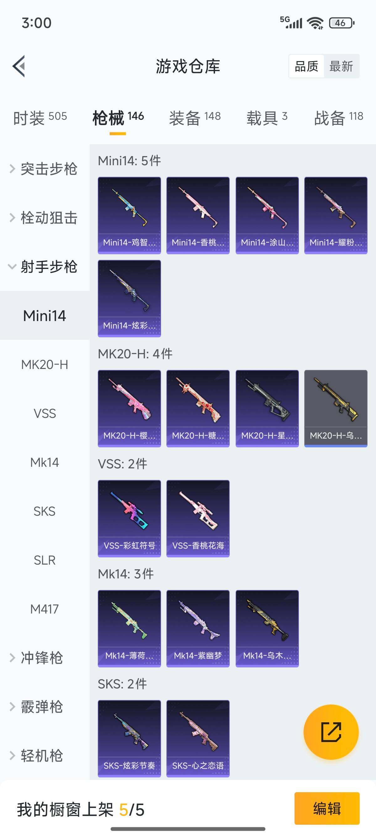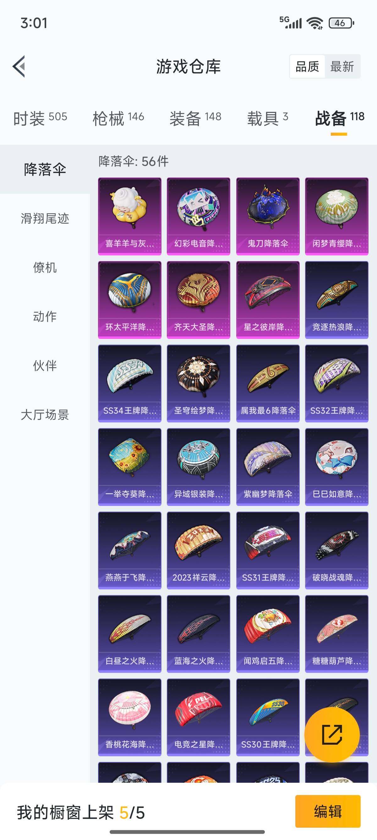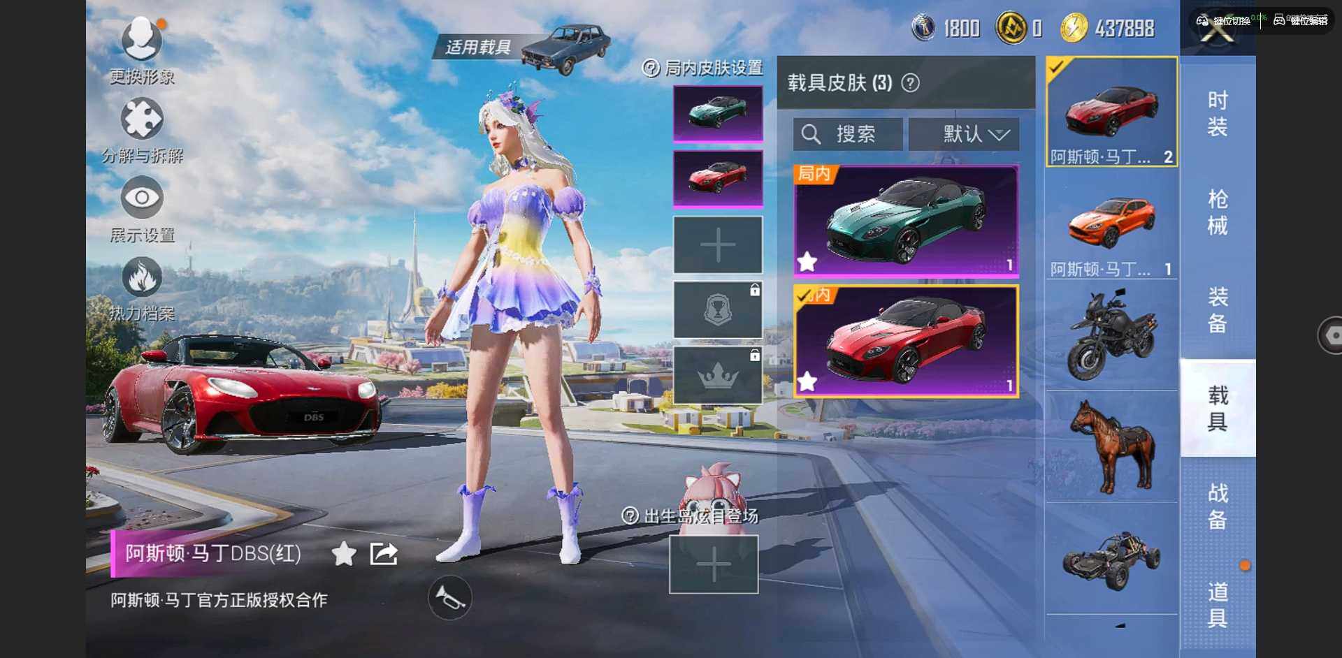 3载具-505套装-146呛皮-时装数: 130 载具数: 3 呛械数: 146 战备数: 118 热门装扮: 萨利娅 载具: 阿斯顿·马丁dbs红阿斯顿·马丁dbs绿阿斯顿·马丁dbx橙 稀有呛皮: 五级kar98k-巳巳如意五级dp-28-豹影疾电