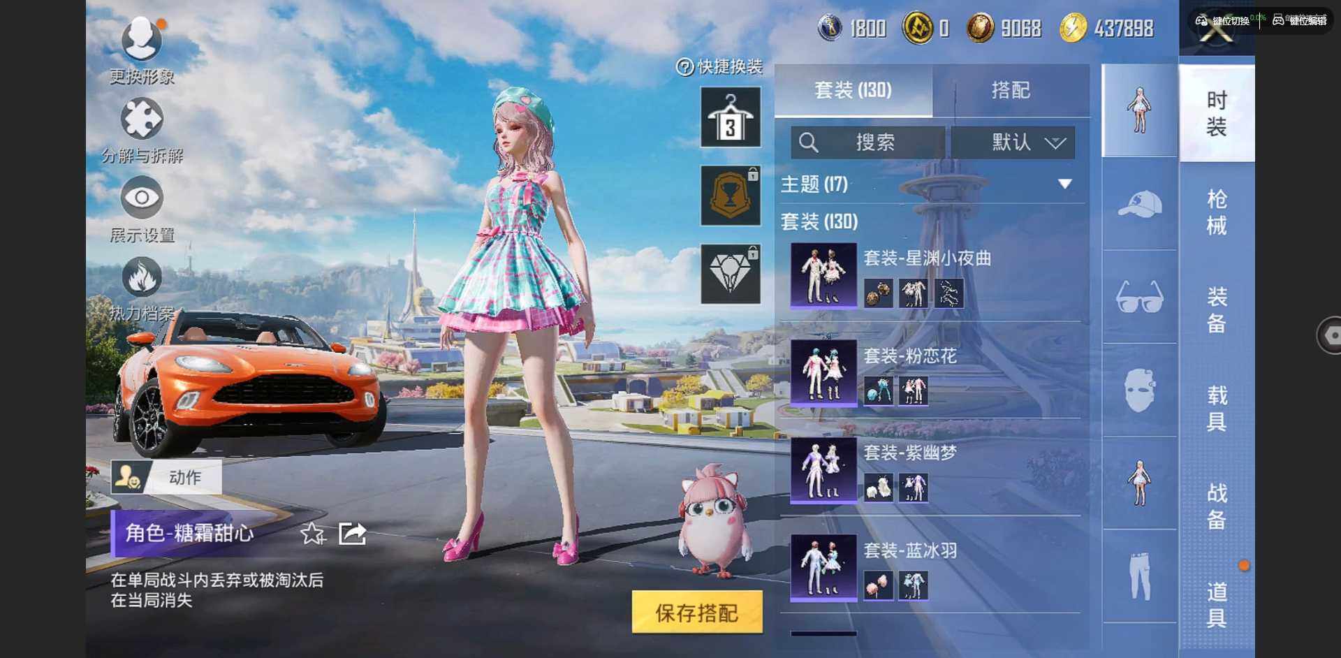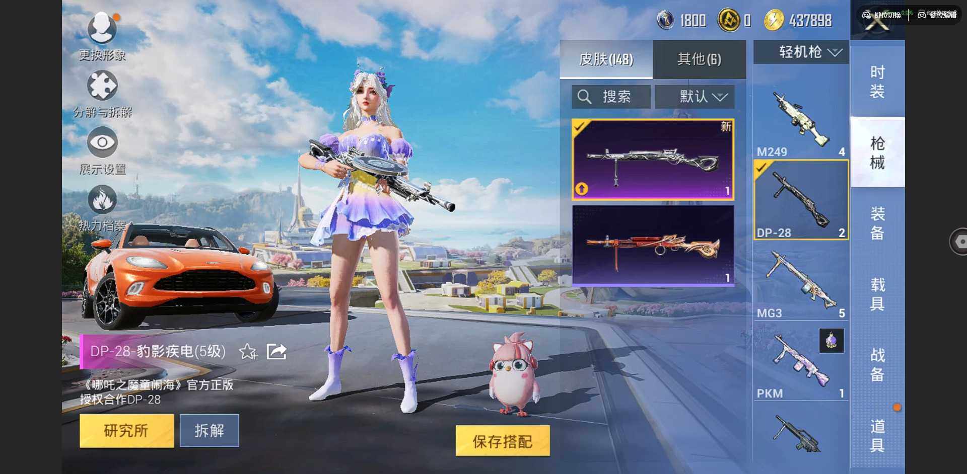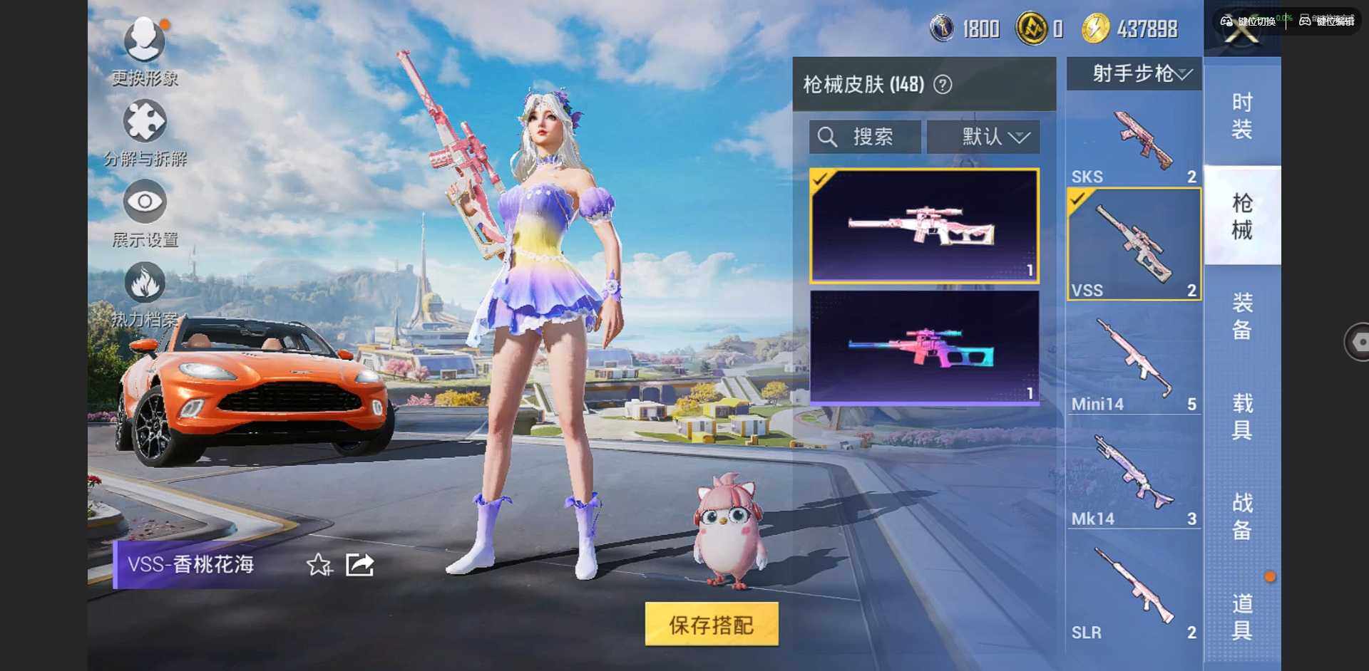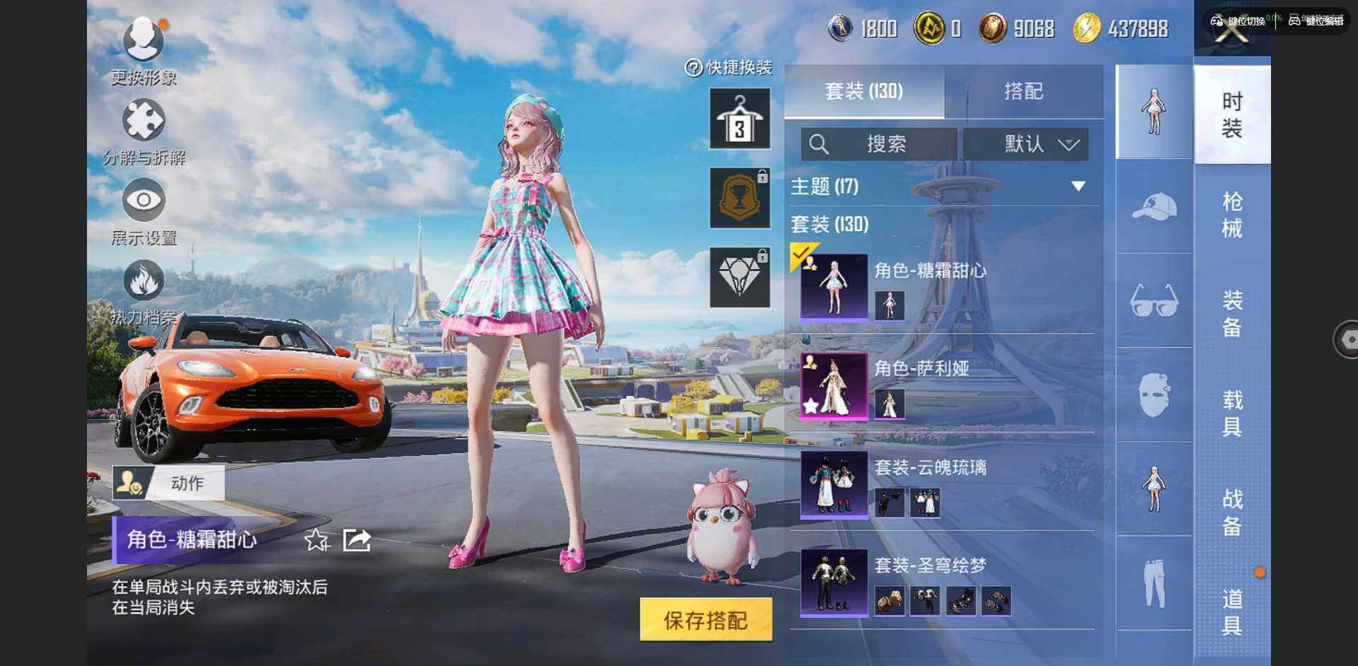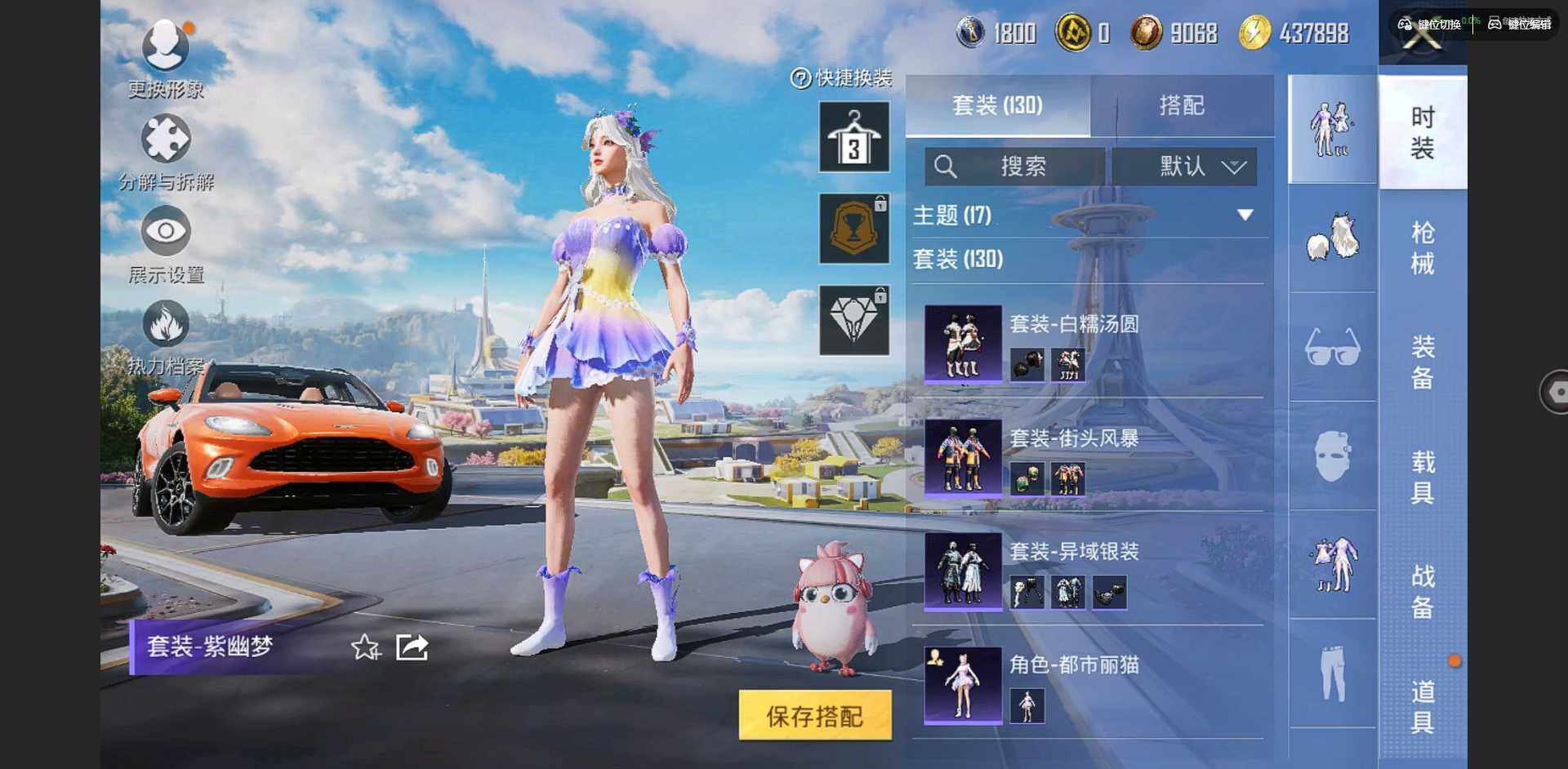 3载具-505套装-146呛皮-时装数: 130 载具数: 3 呛械数: 146 战备数: 118 热门装扮: 萨利娅 载具: 阿斯顿·马丁dbs红阿斯顿·马丁dbs绿阿斯顿·马丁dbx橙 稀有呛皮: 五级kar98k-巳巳如意五级dp-28-豹影疾电