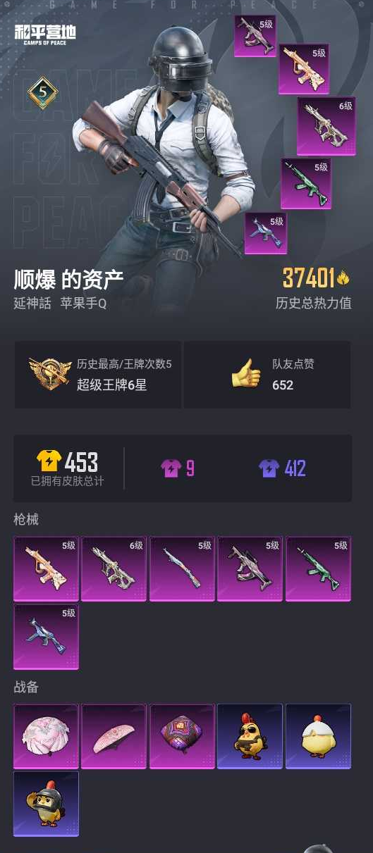 【和平精英】【lyhp17711】地铁满天赋 6特效呛 6级aug许七安 0粉装,6特效呛,0载具,历史最高段位:超级王牌6星 王牌印记5次 热力值:37401,102套装,135呛械,134装备,64战备;套装:套装-特训学院,套装-猎鹰,套装-青年教官,套装-橘黑制服,套装-红色运动,套装-黄色运动,套装-蓝色运动,套装-黄色伏地魔,套装-白色伏地魔,套装-黑色伏地魔,套装-竞技名士,套装-深蓝色名流,套装-酒红色名流,套装-湖蓝色名流,套装-黄色名流,套装-猛禽,套装-长空猛禽,套装-黎明保卫者,套装-海岛探路者,套装-冷焰舞者,套装-浪漫天命,套装-战地督导,套装-特殊使命,套装-甜蜜告白,套装-春日漫步,套装-暗黑骑手,套装-完美偶像,套装-人气偶像,套装-幻影武者,套装-街头潮人,套装-蓝彩潮人,套装-魅力单车,套装-绮丽涂鸦,套装-耀眼新星,套装-竞技达人朋克,套装-都市漫游者,套装-野性战心,套装-破晓战魂,套装-都市魅力,套装-荣耀,套装-沙漠兵团,套装-夏日倾情,套装-缤纷果语,套装-龙魂突击队,套装-元素星魂,套装-极速红龙,套装-破蛋小黄鸡,套装-霓虹街区,套装-白熊同盟,套装-夏日音浪,套装-萌趣颜团子,套装-战术大师,套装-ss18特训,套装-耀粉歌者,套装-ss14特训,套装-ss15特训,套装-ss16特训,套装-ss17特训,套装-福星高照,套装-虎虎生威吉莉,角色-军刀雅典娜,套装-ss19特训,套装-炫蓝之夏,套装-ss20特训,套装-ss21特训,套装-ss22特训,套装-ss23特训,套装-神气柴柴,套装-懵萌河马,套装-王牌教练,套装-柠萌假日,套装-ss24特训,套装-ss25特训,套装-龙的传人,套装-ss27特训,套装-恋语绒绒,套装-ss28特训,角色-银尘,套装-街头风暴,套装-海盐绵绵冰,套装-蝶变,套装-ss29特训,套装-雏菊兔兔,套装-萝兰蝴蝶,套装-异域银装,套装-星途旅人,套装-青团波波,套装-棉花软糖,套装-糖糖葫芦,套装-黑曜寓言,套装-ss31特训,套装-鱼渊荷华,套装-燕燕于飞,套装-紫幽梦,套装-ss33特训,套装-云朵鹅,套装-巳巳如意,套装-ss32特训,套装-蓝冰羽,套装-顶瓜瓜,套装-雪绒豹,角色-乐音;呛皮:蜜獾-天降萌叽,蜜獾-糖糖葫芦,蜜獾-鸡智如我,蜜獾-乌木金纹,6级aug-许七安,5级aug-暖羊咩咩,aug-甜蜜菠萝,aug-耀粉歌者,aug-天降萌叽,aug-异域银装,5级m762-青锋波束,m762-天降萌叽,m762-雏菊兔兔,m762-云朵鹅,m416-蓝色火焰,m416-绯红前夜,m416-红色方程式,m416-糯团青竹,ac-val-乌木金纹,scar-l-红色方程式,scar-l-夜灯,scar-l-炫彩节奏,scar-l-玉兔迎春,scar-l-星途旅人,scar-l-海盐豹豹,5级groza-镜光银凌,groza-彩虹符号,groza-懵萌河马,groza-海盐豹豹,g36c-懵萌河马,g36c-乌木金纹,m16a4-蓝色火焰,m16a4-红色方程式,m16a4-幻世战舞者,m16a4-冰河战士,mk47-乌木金纹,akm-破晓战魂,akm-夜灯,akm-龙的传人,famas-乌木金纹,q-彩虹符号,莫辛纳甘-乌木金纹,莫辛纳甘-懵萌河马,m200-乌木金纹,5级kar98k-巳巳如意,kar98k-红色方程式,kar98k-炫彩节奏,kar98k-乌木金纹,m24-乌木金纹,svd-云朵鹅,mk14-冰河战士,mk14-紫幽梦,sks-夜灯,sks-未来歌姬,sks-霓虹漫游,sks-棋盘冕主,mk20-h-星途旅人,mk20-h-糖糖葫芦,mk20-h-乌木金纹,m417-玩趣呆呆,vss-香桃花海,mini14-银河战甲,mini14-耀粉歌者,mini14-涂山之恋,mini14-香桃花海,mini14-雏菊兔兔,slr-彩虹符号,slr-墨龙九天,汤姆逊-耀粉歌者,汤姆逊-炫彩节奏,汤姆逊-智耀战神,5级ump45-量子极限,ump45-夜灯,ump45-蓝色火焰,ump45-生命誓言,ump45-糖糖葫芦,vect-生命誓言,vect-音爆索尼克,vect-燕燕于飞,p90-玩趣呆呆,p90-巳巳如意,p90-乌木金纹,uzi-红色方程式,uzi-炫彩节奏,uzi-天降萌叽,uzi-冰河战士,野牛-夜灯,野牛-雏菊兔兔,野牛-燕燕于飞,野牛-乌木金纹,mp5k-乌木金纹,s686-红色方程式,s686-生命誓言,s686-巳巳如意,s1897-炫彩节奏,s1897-青蛇行歌,s1897-紫幽梦,s1897-糯团青竹,s1897-乌木金纹,s12k-破晓战魂,s12k-音爆索尼克,spas-12-燕燕于飞,spas-12-云朵鹅,spas-12-乌木金纹,dbs-荧海星豚,dbs-乌木金纹,m249-破晓战魂,m249-星之彼岸,m249-无面战甲,m249-乌木金纹,mg3-乌木金纹,mg3-霓彩脉冲,dp-28-彩虹符号,pkm-懵萌河马,pkm-啾咪啾咪,pkm-紫幽梦,蝎式手呛-幽秘魅影,蝎式手呛-燕燕于飞,p92-紫幽梦,p18c-糖糖葫芦,r1895-雏菊兔兔,沙墨之鹦-云朵鹅,平底锅-炫紫旋律,平底锅-懵萌河马,平底锅-萌萌彩虹球,平底锅-雏菊兔兔,平底锅-糖糖葫芦,平底锅-紫幽梦,撬棍-信仰神谕,大砍刀-云朵鹅,盐雾蛋-冰氧夏日,十子怒-燕燕于飞,十子怒-异域银装,破片手留单-星途旅人,破片手留单-巳巳如意;降落伞:红色滑翔尾迹,异域银装飞行器,顶峰精英尾迹; 详情看图