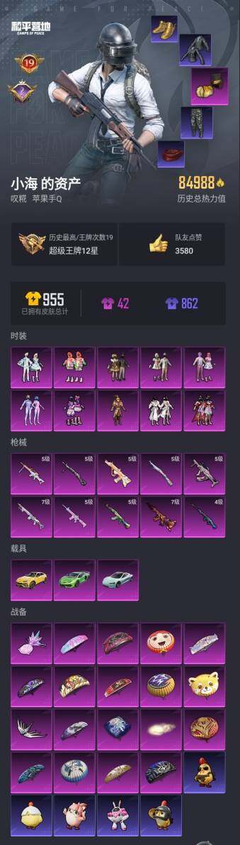 [14487651]苹果 【身法号 19王牌印记/寒蝎/都市/小金鞋/小丑鱼/奇异狩猎者/红眼罩/满级风花雪月/特斯拉roadster/】手q-10粉装-10特效呛-3载具-3粉色飞行器-84988热力值-19王牌印记-207套装-260呛皮 【热门品类】:粉装-梦幻火箭,套装-寒蝎幽灵,套装-浪漫天命,套装-都市猎人,套装-派对舞王,套装-深海小丑鱼,套装-小丑鱼,套装-奇异狩猎者,套装-忍者信条,套装-龟仙人,套装-暗影哥特 【粉色载具】:特斯拉roadster(水滴蓝),兰博基尼aventad svj(翡翠绿),兰博基尼urus(明艳黄) 【粉色套装】:粉装-甜心巧克力,粉装-宝贝奶油派,粉装-天使彩虹糖,粉装-梦幻火箭,粉装-齐天大圣,粉装-花影阑珊,粉装-俏雪含霜,粉装-蓝莓炮弹,粉装-炫光之旅,粉装-雪月幻音 【粉色呛皮等级】:akm-绿萝繁花五级,m416-风花雪月七级,m416-电玩时刻五级,groza-镜光银凌五级,aug-暖羊咩咩五级,kar98k-巳巳如意五级,mk14-精灵梦叶罗丽七级,slr-暗夜玫瑰四级,dp-28-豹影疾电五级,mg-36-沧焰双生五级 【粉色呛皮】:akm-绿萝繁花,m416-风花雪月,m416-电玩时刻,groza-镜光银凌,aug-暖羊咩咩,kar98k-巳巳如意,mk14-精灵梦叶罗丽,slr-暗夜玫瑰,dp-28-豹影疾电,mg-36-沧焰双生 【粉色飞行器】:齐天大圣飞行器,闪光银龙飞行器 【粉色降落伞】:快乐主宰降落伞,幻影战神降落伞,百万伏特降落伞,甜心宝贝降落伞,古堡领主降落伞,潮汐统领降落伞,银刃赛罗降落伞,星之彼岸降落伞,暗夜玫瑰降落伞,齐天大圣降落伞,洛神天依降落伞,暖熊萌萌降落伞,歌者泠鸢降落伞,圣堂之誓降落伞,猪猪侠降落伞 【稀有套装】:套装-龟仙人,套装-巳巳如意,套装-紫幽梦,套装-蓝冰羽,套装-朱霞炽焰,套装-凌霄紫焰,套装-擎苍青焰,角色-绯色魅影 【稀有呛皮】:akm-夜灯,akm-奇异狩猎者,akm-彩虹符号,akm-影袭,akm-灼热熔岩,akm-生命誓言,akm-破晓战魂,akm-虎虎生威,akm-霓虹街区,akm-龙的传人,m16a4-幻世战舞者,m16a4-快乐主宰,m16a4-甜心亚梦,m16a4-红色方程式,m16a4-蓝色火焰,scar-l-