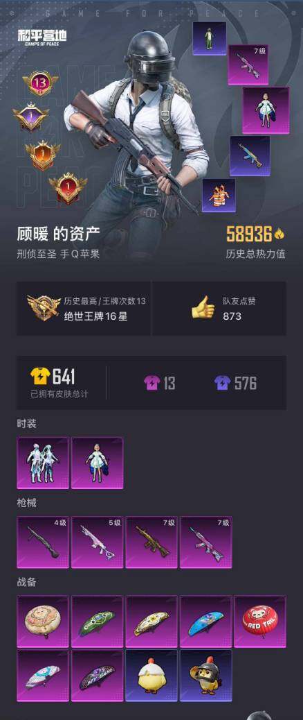 [14487680]苹果 【公主号 13王牌印记/1绝世印记/小丑鱼/奇异狩猎者/洛天依/幻彩电音/满级五爪金龙/】手q-2粉装-4特效呛-0载具-0粉色飞行器-58936热力值-13王牌印记-151套装-198呛皮 【热门品类】:套装-小丑鱼,套装-奇异狩猎者,套装-忍者信条,套装-龟仙人 【粉色套装】:角色-洛天依,粉装-幻彩电音 【粉色呛皮等级】:akm-炫紫旋律七级,m416-五爪金龙七级,mk14-甜梦熊击五级,dp-28-豹影疾电四级 【粉色呛皮】:akm-炫紫旋律,m416-五爪金龙,mk14-甜梦熊击,dp-28-豹影疾电 【粉色降落伞】:快乐主宰降落伞,四圣焕新降落伞,阿狸红降落伞,音爆索尼克降落伞,拂晓神骑降落伞,忍者神龟降落伞,星穹咏叹调降落伞 【稀有套装】:套装-龟仙人,角色-海琴烟,套装-霓虹热舞,套装-彩虹兔,套装-云朵鹅,套装-雪绒豹 【稀有呛皮】:akm-冰凉西瓜,akm-夜灯,akm-灼热熔岩,akm-虎虎生威,akm-霓虹街区,akm-龙的传人,m16a4-机械英豪,m16a4-甜心亚梦,scar-l-夜灯,scar-l-炫彩节奏,scar-l-玉兔迎春,scar-l-红色方程式,scar-l-黄金龙骨,m416-夜灯,m416-糯团青竹,m416-红色方程式,m416-蓝色火焰,groza-影袭,groza-懵萌河马,groza-治愈之星,groza-生命誓言,groza-黑色刀锋,aug-幻影战神,aug-耀粉歌者,q-原初圣火,q-洛神天依,q-飞驰魅影,m762-天降萌叽,m762-奇异狩猎者,m762-彩虹符号,m762-深海曼妙,m762-潮萌小黄鸭,m762-牛气冲天,m762-瑞龙福将,m762-云朵鹅,mk47-妙红点点,mk47-洛神天依,mk47-炫光之旅,g36c-懵萌河马,g36c-星穹咏叹调,ac-val-快闪甜心,ac-val-甜心亚梦,蜜獾-天降萌叽,uzi-众神之王,uzi-炫彩节奏,ump45-夜灯,ump45-时空追击者,ump45-涂山之恋,ump45-猪猪侠,ump45-生命誓言,ump45-蓝色火焰,vect-彩虹符号,vect-治愈之星,vect-生命誓言,vect-黑色刀锋,汤姆逊-勇闯险境,汤姆逊-天降萌叽,汤姆逊-耀粉歌者,汤姆逊-智耀战神,野牛-机械英