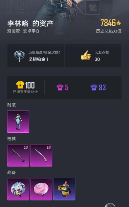 [14488406]安卓【小号 角色-异瞳寒姬 角色-瑰梦爱神 角色-情公主 ar98k-巳巳如意三级 海渊国主降落伞】 手q-1粉装-2特效呛-0载具-0粉色飞行器-7846热力值-0王牌印记-20套装-29呛皮 【粉色套装】:角色-异瞳寒姬 【粉色呛皮等级】:kar98k-巳巳如意三级,dp-28-豹影疾电二级 【粉色呛皮】:kar98k-巳巳如意,dp-28-豹影疾电 【粉色降落伞】:海渊国主降落伞,幻彩电音降落伞 【稀有套装】:角色-瑰梦爱神 【稀有呛皮】:m416-糯团青竹,m416-红色方程式,aug-天降萌叽,m762-天降萌叽,m762-暗夜鎏金,蜜獾-垂柳戏鸭,蜜獾-天降萌叽,uzi-天降萌叽,ump45-炫光之旅,汤姆逊-幻影战神,p90-巳巳如意,kar98k-幻影战神,slr-彩虹符号,dbs-圣堂之誓,mg3-幻世战舞者,短管霰弹-星穹咏叹调 【其他套装】:套装-ss17特训,套装-ss21特训,套装-ss22特训,套装-ss23特训,套装-暗黑骑手,套装-柠萌假日,套装-甜蜜告白,套装-白色伏地魔,套装-蓝彩潮人,套装-魅力单车,套装-黄色运动,套装-黑色伏地魔,套装-迅捷狂鲨,套装-绚烂繁星,角色-情公主 【营地id】:908759378