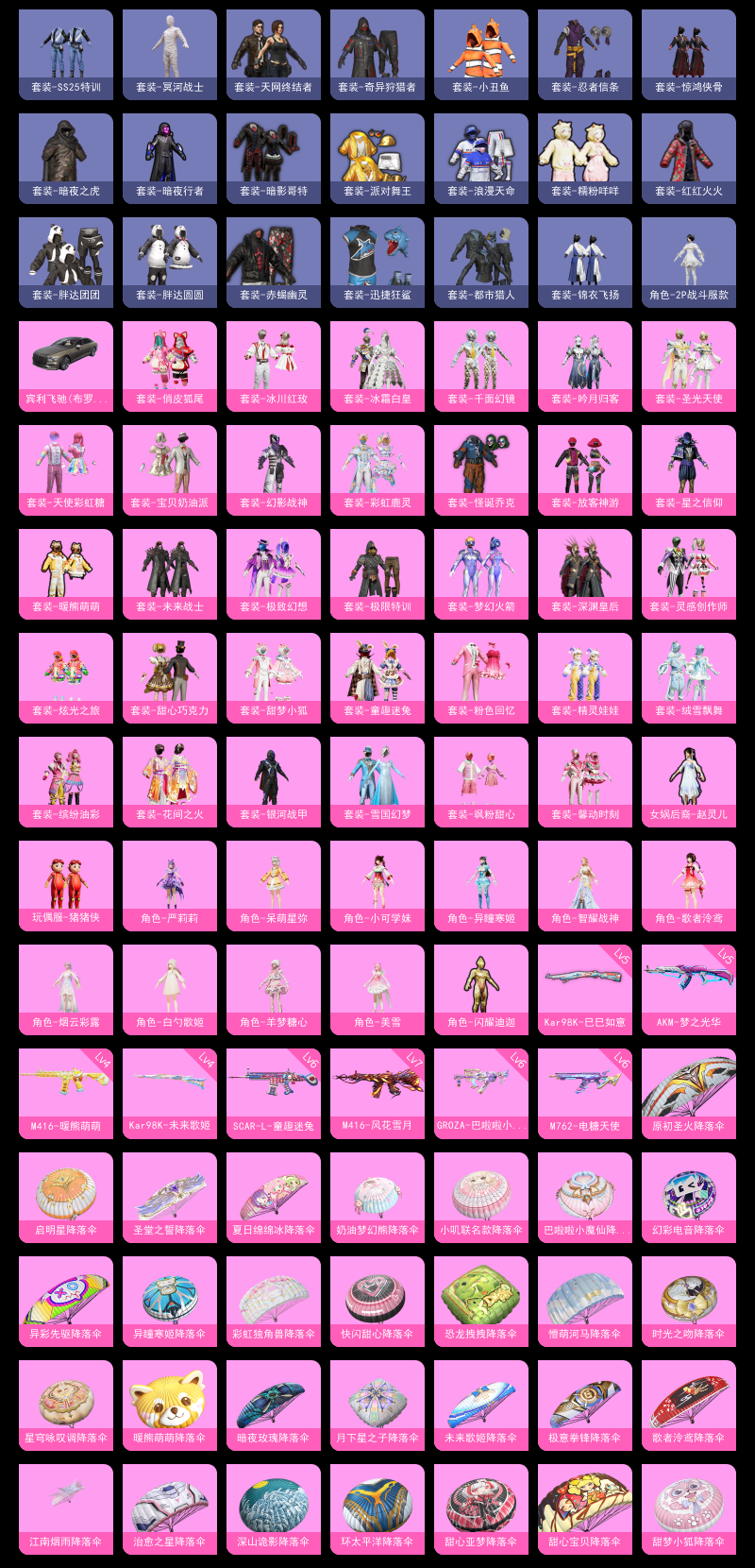 【和平精英】【lyhp17687】【身法皮肤号】21印记 冰雪奇缘 金迪迦 赵灵儿 怪诞乔克 幻影战神 梦幻火箭 猪妹 放客 巧克力三件套 多呛型 7级风花雪月 (男神套 赤蝎 舞王 都市 天网 木乃伊 盼达团团圆圆 小丑鱼 狂沙 哥特 奇异) 46粉装,10特效呛,1载具,历史最高段位:超级王牌20星 王牌印记21次 热力值:162770,393套装,430呛械,629装备,287战备;套装:套装-极限特训,套装-幻影战神,套装-未来战士,套装-粉色回忆,套装-银河战甲,套装-怪诞乔克,套装-甜心巧克力,套装-宝贝奶油派,套装-天使彩虹糖,套装-深渊皇后,套装-雪国幻梦,套装-梦幻火箭,套装-星之信仰,套装-缤纷油彩,套装-放客神游,套装-花间之火,套装-馨动时刻,套装-极致幻想,套装-俏皮狐尾,套装-冰霜白皇,套装-童趣迷兔,套装-彩虹鹿灵,角色-闪耀迪迦,套装-吟月归客,套装-精灵娃娃,套装-千面幻镜,套装-绒雪飘舞,套装-暖熊萌萌,套装-圣光天使,套装-甜梦小狐,套装-灵感创作师,套装-冰川红玫,女娲后裔-赵灵儿,角色-歌者泠鸢,角色-小可学妹,角色-呆萌星弥,角色-白勺歌姬,套装-飒粉甜心,套装-炫光之旅,玩偶服-猪猪侠,角色-烟云彩露,角色-美雪,角色-严莉莉,角色-异瞳寒姬,角色-智耀战神,角色-羊梦糖心,套装-特训学院,套装-猎鹰,套装-青年教官,套装-橘黑制服,套装-红色运动,套装-黄色运动,套装-蓝色运动,套装-黄色伏地魔,套装-白色伏地魔,套装-黑色伏地魔,套装-骑行爱好者,套装-登山爱好者,套装-冰川格斗者,套装-壁垒格斗者,套装-深海格斗者,套装-帅气教官,套装-竞技名士,套装-深蓝色名流,套装-酒红色名流,套装-湖蓝色名流,套装-黄色名流,套装-猛禽,套装-棕色飞行服,套装-野性山猫,套装-长空猛禽,套装-漫步者,套装-黎明保卫者,套装-蓝色守护者,套装-灰色守护者,套装-海岛探路者,套装-雨林探路者,套装-沙漠探路者,套装-西部风情,套装-旭日情侣,套装-六六大吉,套装-赤蝎幽灵,套装-冷焰舞者,套装-灼焰舞者,套装-都市猎人,套装-水银刺客,套装-浪漫天命,套装-特战装甲,套装-战地菁英,套装-贵族骑装,套装-战地督导,套装-特殊使命,套装-街舞达人,套装-突袭者,套装-青春校园,套装-灰色格斗者,套装-活力之心,套装-甜蜜告白,套装-战地名士,套装-迎春赐吉,套装-春日漫步,套装-潮流先锋,套装-龙腾端午,套装-燃烧卡路里,套装-滨海假日,套装-沙漠毒蛇,套装-鹰眼刺客,套装-冰冻风暴,套装-冷酷挑战者,套装-完美偶像,套装-人气偶像,套装-幻影武者,套装-热血骑手,套装-特战英豪,套装-云霄猎人,套装-街头潮人,套装-红潮炫舞,套装-蓝彩潮人,套装-怒火燎原,套装-魅力单车,套装-绮丽涂鸦,套装-耀眼新星,套装-狂战萌兔,套装-坚韧舞者,套装-竞技达人朋克,套装-朋克治安官,套装-夜莺强袭者,套装-野性战心,套装-野性战魂,套装-超能勇士,套装-狂沙舞者,套装-破晓战魂,套装-都市魅力,套装-荣耀,套装-风行保卫者,套装-热血青春,套装-沙漠兵团,套装-派对舞王,套装-极地朋克,套装-烈火街头,套装-摩艾涂鸦,套装-幻世战舞者,套装-无烬之地,套装-甜蜜菠萝,套装-清新柠檬,套装-奇异狩猎者,套装-金耀舞者,套装-蓝调潮人,套装-机械哨兵,套装-暗影哥特,套装-幻世尖兵,套装-精密机核,套装-弄潮海豚,套装-迅捷狂鲨,套装-呆萌铁蟹,套装-夏日倾情,套装-甜蜜熊情侣,套装-青涩时光,套装-缤纷果语,套装-滨海厨神,套装-alan walker,套装-龙魂突击队,套装-特种空勤,套装-元素星魂,套装-胖达团团,套装-胖达圆圆,套装-幻影公爵,套装-忍者信条,套装-极速红龙,套装-冷血极客,套装-旷野奇兵,套装-麻辣教官,套装-沙暴袭击者,套装-ss3特训,套装-暗夜之虎,套装-小丑鱼,套装-攀登者,套装-东方飞龙,套装-冥河战士,套装-恶魔人蛛,套装-黑夜传说,套装-天网终结者,套装-破蛋小黄鸡,套装-疯狂小兔子,套装-云虎纪,套装-军械专家,套装-北国孤狼,套装-淡雅花蕊,套装-银河圣歌,套装-鹤鸣,套装-霓虹街区,套装-纯白誓言,套装-白熊同盟,套装-萌黄之夏,套装-隐空刺,套装-影双刃,套装-击剑大师,套装-人鱼之吻,套装-摇滚狂鲨,套装-海洋之心,套装-夏日音浪,套装-抹茶蜜豆,套装-探宝勇士,套装-本愿之火,套装-辉星之火,套装-红红火火,套装-牛气满满,套装-白糯汤圆,套装-韶华初心,套装-梦之呓语,套装-青春冒险家,套装-潮流游乐家,套装-原初圣火,套装-逆风勇士,套装-萌趣颜团子,套装-特种颜团子,套装-战术大师,套装-ss12特训,套装-牛气冲天,套装-ss18特训,套装-闪金天王,套装-镭射皇者,套装-银白舞王,套装-耀粉歌者,套装-迅捷之星,套装-治愈之星,套装-科技之星,套装-飞行日记,套装-ss13特训,套装-竞技角斗士,套装-曼妙人鱼,套装-热情海星,套装-纯真浪花,套装-冰爽海盐,套装-ss14特训,角色-迪迦奥特曼,角色-赛罗奥特曼,套装-吉莉礼服,角色-真嗣款战斗服,套装-ss15特训,套装-ss16特训,套装-暴风机械师,套装-时空追击者,套装-ss17特训,套装-瑞龙福将,套装-团圆交子,套装-福星高照,套装-遗落祭司,套装-kone追光队服,套装-缤纷焰火,套装-异彩先驱,套装-霓虹极客,套装-空投萌叽,套装-ss19特训,套装-浓情蜜辣,套装-极速竞梦,套装-飞驰魅影,套装-音速流光,套装-tt战队服,套装-炫蓝之夏,套装-ss20特训,套装-覆海蛟龙,套装-粉团憨憨,套装-软羊咩咩,套装-奶芙汪汪,套装-恶魔喵喵,套装-猎梦纪元,套装-甜心亚梦,套装-虚音幻奏,套装-ss21特训,套装-暖心熊熊,套装-萌趣咩咩,套装-娇憨猪猪,套装-俏皮奶喵,