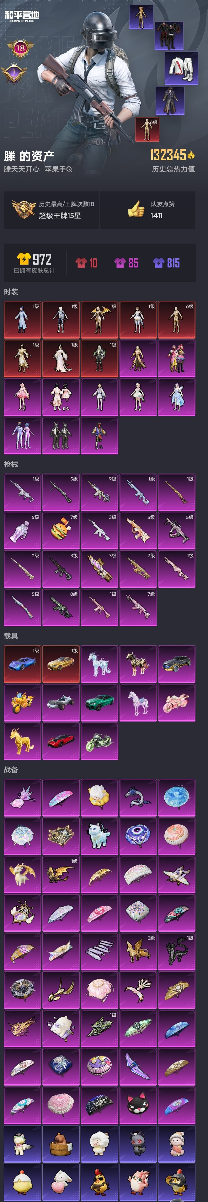 【和平精英】【lyhp17683】高印记 7红装 6级图卡盟 满级猫灵魔法师 女娲 墨龙九天 7级金蛇镇世 8级幽冥骑士 多呛型 帕加尼 宝马m4 猪妹 哥特等多热门皮肤 10粉装,19特效呛,13载具,历史最高段位:超级王牌15星 王牌印记18次 热力值:132345,199套装,241呛械,333装备,156战备;套装:沙丘之主-图卡盟,镜域双华-欧若拉,幽焰骑士-维塔,盛世惊鸿-云鸾,金蛇镇世-烛九,圣域龙灵-瑞拉,魔童闹海-敖丙,灵猫魔法师-塞维尔,套装-数码大师,套装-梦幻火箭,套装-缤纷油彩,套装-天禅智恒,角色-星梦奇缘,套装-桃粉嫣然,角色-樱桃泡泡,角色-月下星之子,角色-彩虹独角兽,角色-罗征,套装-特训学院,套装-猎鹰,套装-青年教官,套装-橘黑制服,套装-红色运动,套装-黄色运动,套装-蓝色运动,套装-黄色伏地魔,套装-白色伏地魔,套装-黑色伏地魔,套装-骑行爱好者,套装-登山爱好者,套装-竞技名士,套装-深蓝色名流,套装-酒红色名流,套装-湖蓝色名流,套装-黄色名流,套装-棕色飞行服,套装-游猎者,套装-长空猛禽,套装-竞技勇士朋克,套装-海岛探路者,套装-六六大吉,套装-冷焰舞者,套装-刚毅裁决者,套装-水银刺客,套装-战地菁英,套装-街舞达人,套装-黄色格斗者,套装-灰色格斗者,套装-甜蜜告白,套装-战地名士,套装-春日漫步,套装-燃烧卡路里,套装-滨海假日,套装-沙漠毒蛇,套装-苍穹猎鹰,套装-冷酷挑战者,套装-完美偶像,套装-人气偶像,套装-幻影武者,套装-特战英豪,套装-街头潮人,套装-怒火燎原,套装-决胜时刻,套装-魅力单车,套装-绮丽涂鸦,套装-s6赛事,套装-耀眼新星,套装-坚韧舞者,套装-竞技达人朋克,套装-夜莺强袭者,套装-ss1特训,套装-荣耀,套装-s5赛事,套装-热血青春,套装-沙漠兵团,套装-丛林猎人,套装-ss2特训,套装-派对绅士,套装-雪山精英,套装-传奇侦探,套装-极地朋克,套装-甜蜜菠萝,套装-半糖蓝莓,套装-暗影哥特,套装-弄潮海豚,套装-恒星战甲,套装-甜蜜熊情侣,套装-青涩时光,套装-缤纷果语,套装-滨海厨神,套装-特种空勤,套装-和平特警,套装-风暴特警,套装-冰川特警,套装-极速红龙,套装-格斗先锋,套装-海上生明月,套装-麻辣教官,套装-ss3特训,套装-梦魇先生,套装-破蛋小黄鸡,套装-疯狂小兔子,套装-深蓝冒险家,套装-迷域探索者,套装-ss5特训,套装-圣诞大吉,套装-红酒骑士,套装-北国孤狼,套装-ss6特训,套装-跃动心情,套装-ss7特训,套装-黑色刀锋,套装-核芯基因,套装-精神漫游,套装-新侠客行,套装-鹤鸣,套装-霓虹街区,套装-暗夜契约,套装-纯白誓言,套装-清香五月粽,套装-ss10特训,套装-ss8特训,套装-众神之王,套装-智慧之神,套装-萌黄之夏,套装-pel摇滚竞梦者,套装-pel躁动竞梦者,套装-ss9特训,套装-风华少年志,套装-抹茶蜜豆,套装-jdg战队服,套装-粉甜马卡龙,套装-牛气满满,套装-童话森林,套装-ss11特训,套装-诡谋托雷基亚,套装-原初圣火,套装-逆风勇士,套装-萌趣颜团子,套装-战术大师,套装-ss12特训,套装-牛气冲天,套装-ss18特训,套装-镭射皇者,套装-银白舞王,套装-治愈之星,套装-科技之星,套装-飞行日记,套装-ss13特训,套装-ss14特训,套装-吉莉礼服,套装-ss15特训,套装-ss17特训,套装-瑞龙福将,套装-团圆交子,套装-ss19特训,套装-ss21特训,套装-玉兔迎春,套装-ss22特训,套装-ss23特训,套装-柠萌假日,套装-龟仙人,套装-ss25特训,套装-龙的传人,套装-童真绒兔,套装-ss27特训,套装-恋语绒绒,套装-ss28特训,角色-粉雾星云,套装-新风雅兰,套装-白辉玉蕊,套装-海盐绵绵冰,套装-创世·幻影,角色-蜜桃派对,角色-都市丽猫,角色-糖霜甜心,套装-ss30特训,角色-夜瞳黯灵,角色-六号稻草人,套装-ss31特训,套装-鱼渊荷华,套装-燕燕于飞,套装-智谋强哥,套装-紫幽梦,套装-ss33特训,套装-云朵鹅,套装-巳巳如意,角色-冷霜之星,套装-ss32特训,角色-幽秘之星,套装-蓝冰羽,套装-雪绒豹,角色-幽澜祭司,套装-炫彩糖果,套装-ss34特训,套装-薄荷星砂,套装-ss35特训,套装-ss36特训,套装-萌鸡速递;呛皮:8级akm-幽焰骑士,akm-生命誓言,akm-冰凉西瓜,akm-破晓战魂,akm-霓虹街区,akm-夜灯,akm-彩虹符号,akm-龙的传人,akm-玄冥寒域,akm-灵猫魔法师,akm-砺玉逐花,akm-霓彩脉冲,akm-乌木金纹,1级m416-心之恋语,3级m416-墨龙九天,3级m416-女娲灵识,9级m416-灵猫魔法师,m416-夜灯,m416-绯红前夜,m416-红色方程式,m416-糯团青竹,m416-乌木金纹,mk47-乌木金纹,7级scar-l-金蛇镇世,scar-l-生命誓言,scar-l-黄金龙骨,scar-l-雷霆特警,scar-l-甜蜜誓约,scar-l-繁花小夜曲,scar-l-海盐豹豹,scar-l-乌木金纹,famas-桃粉嫣然,famas-墨龙九天,famas-镜域双华,famas-月下星之子,famas-乌木金纹,7级m762-甜蜜誓约,m762-绯红前夜,m762-牛气冲天,m762-镭射皇者,m762-瑞龙福将,m762-天降萌叽,m762-云朵鹅,m762-乌木金纹,q-神秘黑猫,q-原初圣火,q-彩虹符号,q-乌木金纹,g36c-不夜海上花,g36c-桃粉嫣然,g36c-镜域双华,g36c-乌木金纹,蜜獾-天降萌叽,蜜獾-冰澜龙吟,蜜獾-乌木金纹,ac-val-天降萌叽,ac-val-圣辉之星,5级aug-暖羊咩咩,aug-幻影战神,aug-pec最牛战神,aug-异域银装,aug-金蛇镇世,aug-乌木金纹,m16a4-快乐主宰,m16a4-乌木金纹,5级groza-镜光银凌,groza-生命誓言,groza-黑色刀锋,groza-治愈之星,groza-荧海星豚,groza-乌木金纹,1级arx-无垠阁,1级kar98k-圣域龙灵,5级kar98k-巳巳如意,kar98k-诡娃娃,kar98k-梦幻火箭,kar98k-勇闯险境,kar98k-彩虹符号,amr-墨龙九天,2级m24-镜域双华,m24-众神之王,m24-治愈之星,m24-樱桃泡泡,m24-乌木金纹,莫辛纳甘-乌木金纹,svd-云朵鹅,awm-盛世惊鸿,awm-乌木