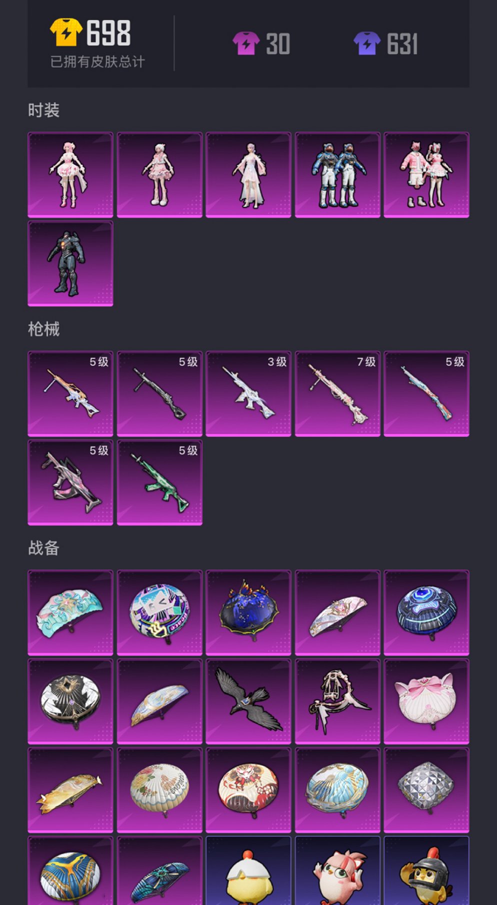 0载具-141套装-196呛皮-【蓝螳螂m4女娲灵识6粉装7特效呛 秒换绑不用等】 苹果q区-59236热力值-6印记-141套装-196呛皮 【2稀有】 mark.06蓝螳螂 awm-黄金龙骨【6粉装】 彩虹甜喵 复仇流浪者 角色-烟云彩露 角色-奇迹舞步 美雪 角色-羊梦糖心 未来领航者【7特效呛】 m416-女娲灵识3级 m762-青锋波束5级 dp-28-千金淑猫7级 kar98k-巳巳如