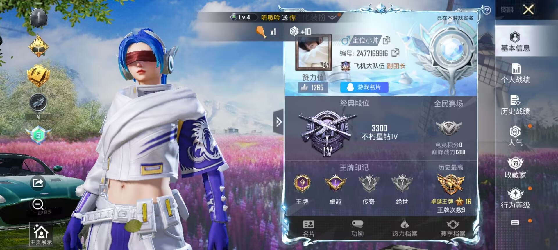 0载具-0套装-0呛皮-安卓q;可以二次;历史最高段位:卓越王牌16星 王牌印记9次 等级:lv.67 热力值:97068, 30粉装,11粉呛,6载具,25粉色战备,194套装,228呛械,312装备,6飞行器,177战备; 连体号王者v9,皮肤339;1典藏;31传说