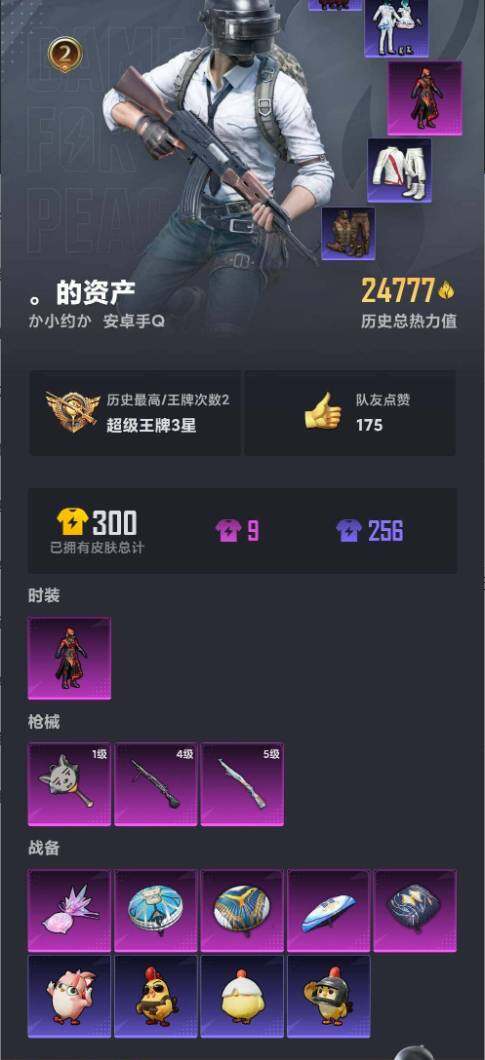 [14489153]安卓【小号/炎氏战神/龟仙人】 手q-1粉装-3特效呛-0载具-1粉色飞行器-24777热力值-2王牌印记-66套装-84呛皮 【热门品类】:套装-龟仙人 【粉色套装】:粉装-炎氏战神 【粉色呛皮等级】:kar98k-巳巳如意五级,dp-28-豹影疾电四级,平底锅-喜羊羊与灰太狼一级 【粉色呛皮】:kar98k-巳巳如意,dp-28-豹影疾电,平底锅-喜羊羊与灰太狼 【粉色降落伞】:环太平洋降落伞,青空秋雨降落伞,未来歌姬降落伞,异瞳寒姬降落伞 【稀有套装】:套装-龟仙人,套装-星影赞美诗 【稀有呛皮】:akm-彩虹符号,akm-破晓战魂,akm-虎虎生威,akm-龙的传人,m16a4-幻世战舞者,m16a4-红色方程式,m16a4-蓝色火焰,scar-l-炫彩节奏,scar-l-玉兔迎春,scar-l-红色方程式,m416-糯团青竹,m416-红色方程式,m416-绯红前夜,m416-蓝色火焰,groza-彩虹符号,aug-耀粉歌者,q-彩虹符号,q-未来歌姬,m762-天降萌叽,m762-绯红前夜,ac-val-天降萌叽,蜜獾-天降萌叽,uzi-炫彩节奏,uzi-红色方程式,ump45-涂山之恋,ump45-蓝色火焰,汤姆逊-天降萌叽,汤姆逊-耀粉歌者,p90-飞驰魅影,p90-巳巳如意,kar98k-梦幻火箭,kar98k-红色方程式,m24-影袭,sks-未来歌姬,sks-糯团青竹,mini14-涂山之恋,mini14-耀粉歌者,win94-粉樱探戈,slr-彩虹符号,m417-惊鸿侠骨,m200-惊鸿侠骨,s686-红色方程式,s12k-玩趣呆呆,s12k-幻世战舞者,dbs-彩虹符号,m249-彩虹符号,m249-破晓战魂,m249-糯团青竹,dp-28-彩虹符号,mg3-惊鸿侠骨,mg3-第五大道,蝎式手呛-欢乐香蕉,爆炸猎弓-惊鸿侠骨,爆炸猎弓-炎氏战神 【其他套装】:套装-ss16特训,套装-ss17特训,套装-ss18特训,套装-ss22特训,套装-ss23特训,套装-ss24特训,套装-ss25特训,套装-ss26特训,套装-人气偶像,套装-光之冒险,套装-冷焰舞者,套装-完美偶像,套装-幻世战舞者,套装-幻影武者,套装-战地督导,套装-旭日情侣,套装-极速红龙,套装-柠萌假日,套装-格斗先锋,套装-橘黑制服,套装-海岛探
