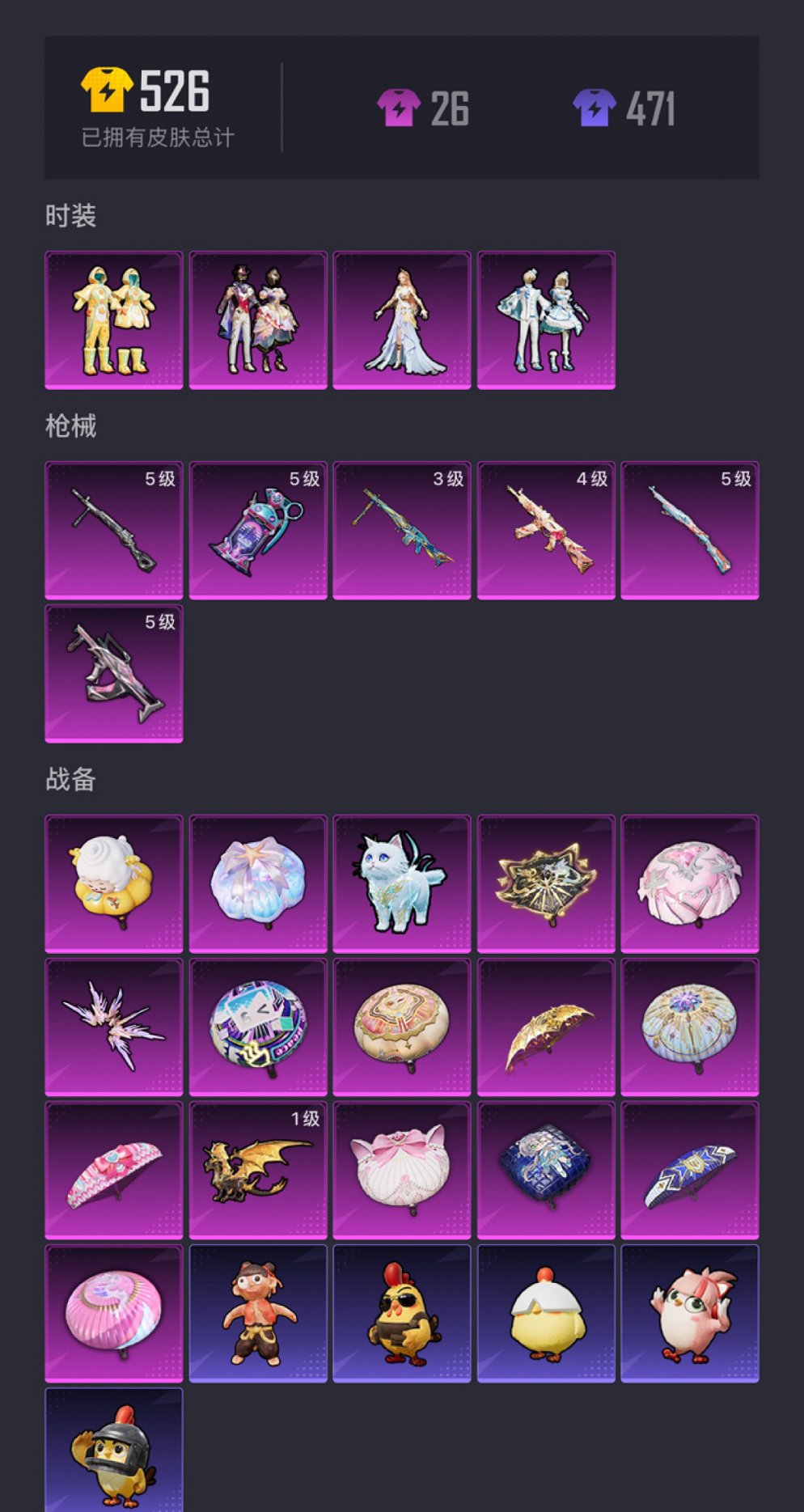 0载具-98套装-145呛皮-可二次实名【1300璀璨碎片可自行兑换1红装6特效呛4粉装 秒换绑不用等】 苹果q区-44282热力值-9印记-98套装-145呛皮 【1稀有】 奇异狩猎者【4粉装】 垂柳戏鸭 雪月幻音 角色-智耀战神 星穹咏叹调【6特效呛】 mg3-辉羽雀灵3级 盐雾蛋-电雾迷城5级 kar98k-巳巳如意5级 aks-74u-星穹咏叹调4级 groza-镜光银凌5级 d