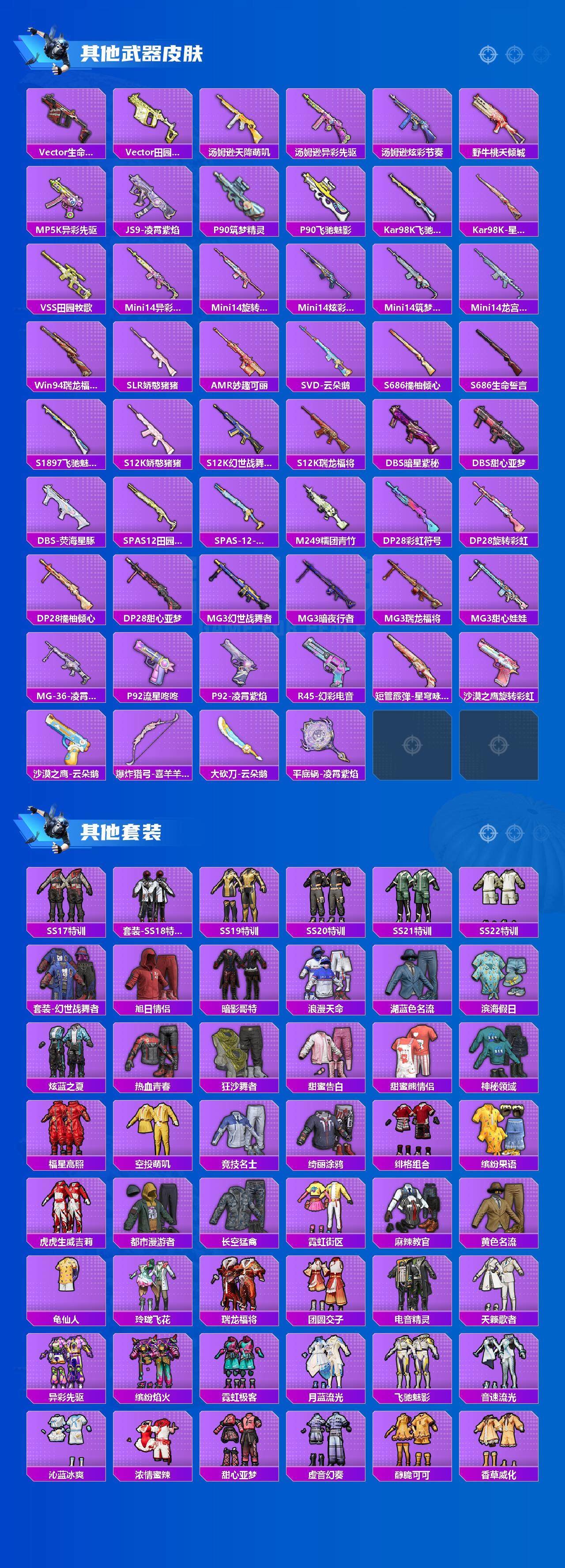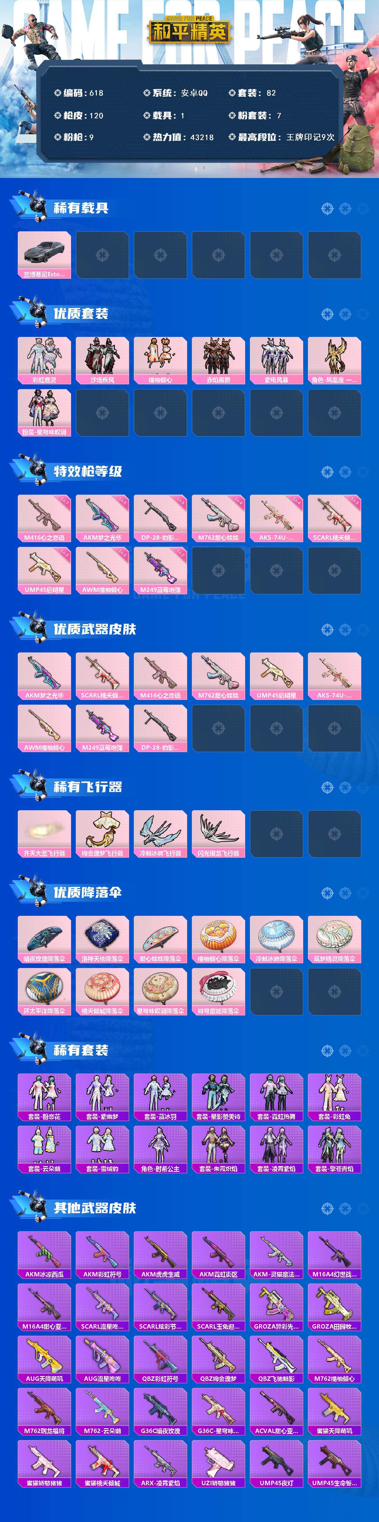 1载具-82套装-120呛皮-82套装/呛械9/装备151/载具1/战备93/王牌印记9/热力值43218/五级akm-梦之光华/三级scar-l-桃夭倾城/七级m416-心之恋语/四级m762-甜心娃娃/三级ump45-启明星/四级aks-74u-星穹咏叹调/二级awm-橘柚倾心/二级m249-蓝莓炮弹/五级dp-28-豹影疾电/套装-浪漫天命/套装-龟仙人/套装-暗影哥特/兰博基尼estoque银翼灰/彩虹鹿灵/沙