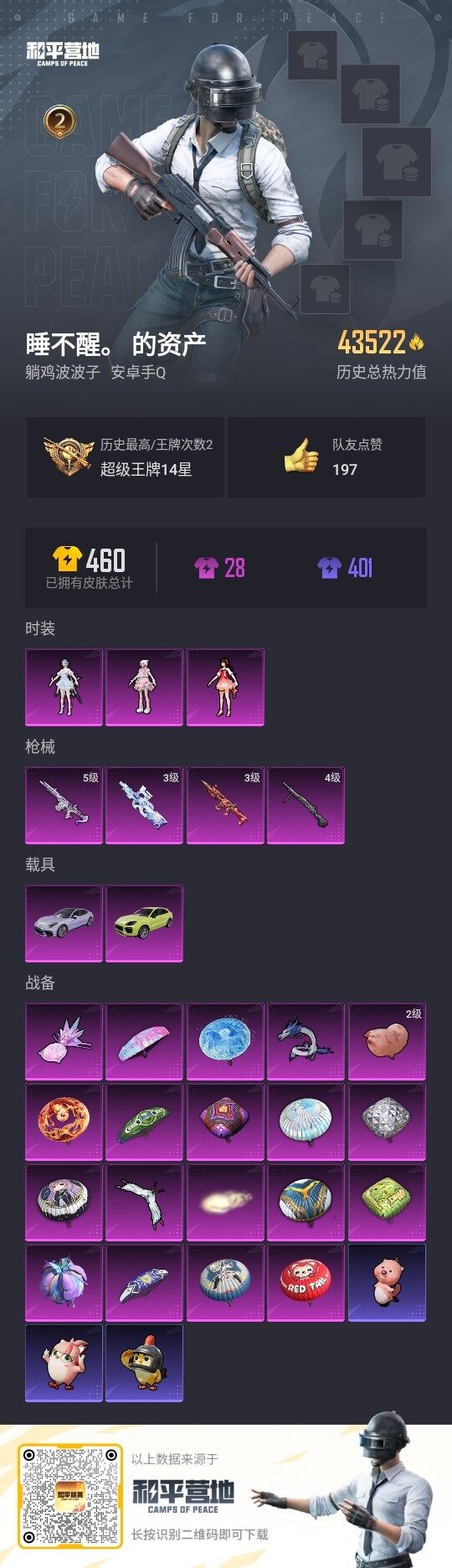 [14490022]安卓 【载具号 mark.06/羊梦糖心/歌者泠鸢/scar-l-魔童闹海 哪吒三级/保时捷panamera(星辰紫)/176扭蛋碎片】手q-3粉装-4特效呛-2载具-5粉色飞行器-43522热力值-2王牌印记-74套装-134呛皮 【热门品类】:角色-mark.06 【粉色载具】:保时捷panamera(星辰紫),保时捷cayenne(橄榄绿) 【粉色套装】:角色-歌者泠鸢,角色-冰魄,角色-羊梦糖心 【粉色呛皮等级】:scar-l-魔童闹海 哪吒三级,arx-无垠阁五级,p90-魔童闹海 敖丙三级,dp-28-豹影疾电四级 【粉色呛皮】:scar-l-魔童闹海 哪吒,arx-无垠阁,p90-魔童闹海 敖丙,dp-28-豹影疾电 【粉色飞行器】:齐天大圣飞行器,天之羽翼飞行器,飞天猪飞行器,灵珠游龙飞行器 【粉色降落伞】:荧光虫舞降落伞,阿狸红降落伞,银刃赛罗降落伞,天之羽翼降落伞,青春物语降落伞,恐龙拽拽降落伞,星夜魔法师降落伞,环太平洋降落伞,千面幻镜降落伞,初号机 觉醒ver.降落伞,忍者神龟降落伞,魔童闹海 哪吒降落伞,魔童闹海 敖丙降落伞 【稀有套装】:角色-米开朗基罗,套装-朱霞炽焰,套装-凌霄紫焰,套装-擎苍青焰,玩偶服-懒羊羊,玩偶服-美羊羊,角色-绯色魅影,套装-炫彩糖果 【稀有呛皮】:aug-冰晶雪宝,akm-恐龙拽拽,akm-灼热熔岩,akm-破晓战魂,akm-龙的传人,m16a4-幻世战舞者,m16a4-千金淑猫,scar-l-暗夜玫瑰,scar-l-炫彩节奏,scar-l-红色方程式,m416-糯团青竹,m416-红色方程式,groza-异彩先驱,groza-治愈之星,groza-马卡龙,aug-天降萌叽,aug-耀粉歌者,q-未来歌姬,q-赛罗,q-飞驰魅影,m762-奇异狩猎者,m762-暗夜鎏金,m762-牛气冲天,m762-镭射皇者,g36c-暗夜玫瑰,蜜獾-千面幻镜,蜜獾-天降萌叽,arx-凌霄紫焰,uzi-天降萌叽,uzi-炫彩节奏,uzi-红色方程式,ump45-蓝色火焰,vect-彩虹符号,vect-治愈之星,vect-创世·救赎,汤姆逊-天降萌叽,汤姆逊-奇异狩猎者,汤姆逊-异彩先驱,汤姆逊-暗夜鎏金,mp5k-异彩先驱,js9-凌霄紫焰,p90-飞驰魅影,kar98k-彩虹