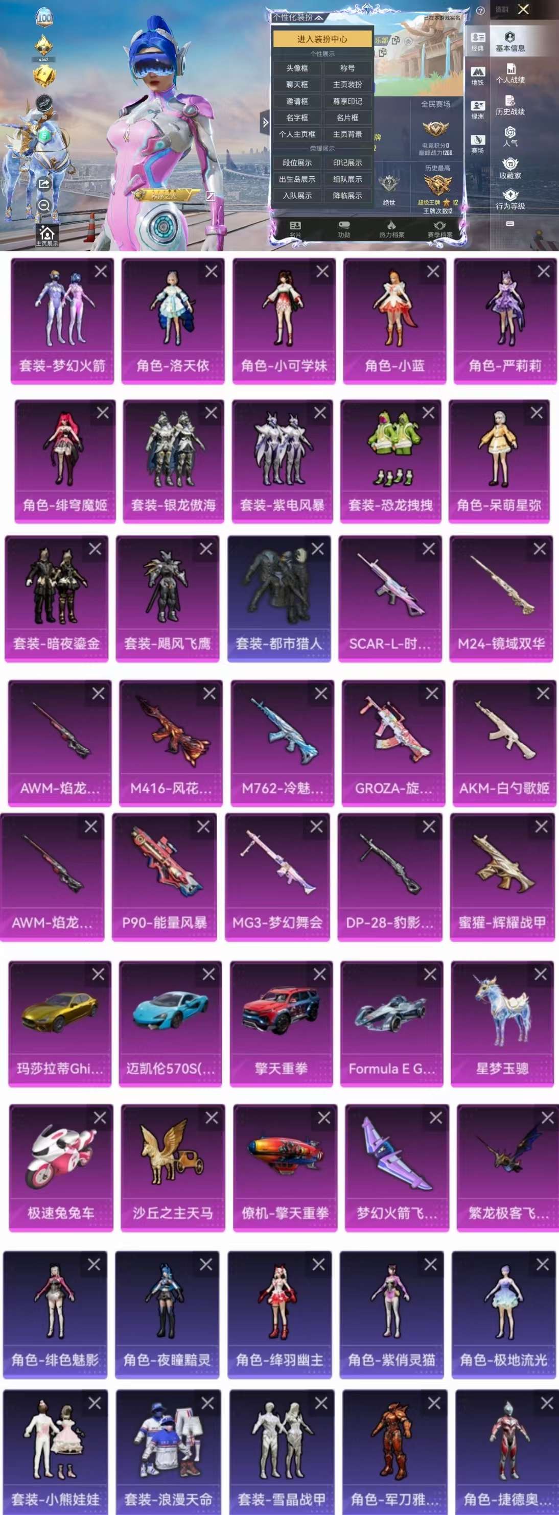 6载具-142套装-214呛皮-aqy622-12粉装-12特效呛-6载具-79955热力值-12王牌印记-142套装-214呛皮【优质套装】: 梦幻火箭 洛天依 恐龙拽拽 严莉莉 飓风飞鹰 银龙傲海 小可学妹 紫电风暴 暗夜鎏金 呆萌星弥 小蓝【优质载具皮肤】无二次 玛莎拉蒂ghibli金 擎天重拳 迈凯伦570s天际蓝 fmula e gen2巅峰兰 星梦玉骢 极速兔兔车【特效呛等级】:s