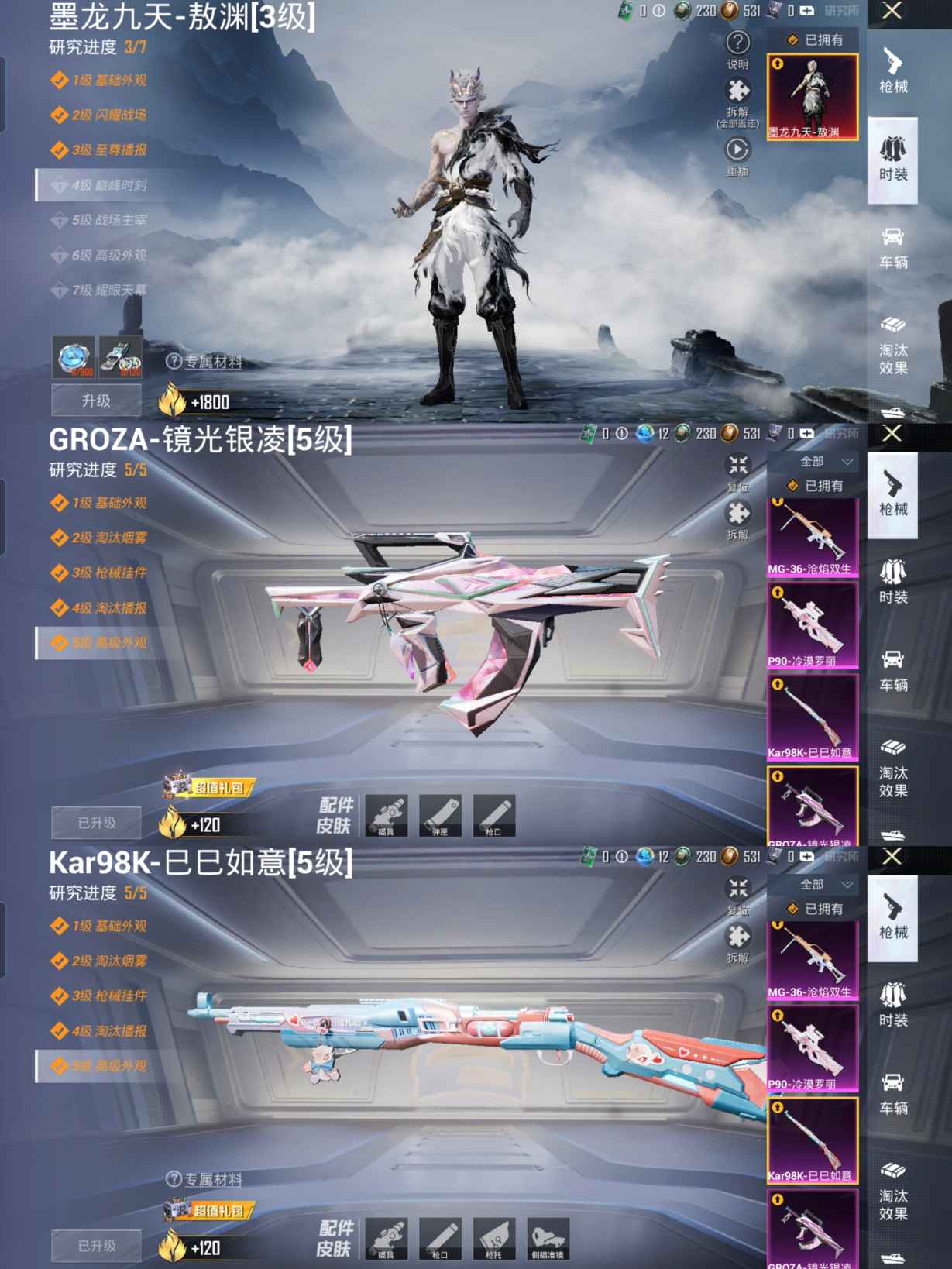 0载具-63套装-114呛皮-【3级敖渊】安卓q-1红装3粉装5特效呛3热门63套装114呛皮 35575热力值 8印记 历史绝世王牌16星 【1红装】 墨龙九天-敖渊 3级 【3粉装】 星穹咏叹调 羊梦糖心 星云暗核 【5特效呛】 p90-冷漠罗丽 7级 kar98k-巳巳如意 5级 mg-36-沧焰双生 5级 dp-28-豹影疾电 5级 groza-镜光银凌 5级 【3热门】 龟