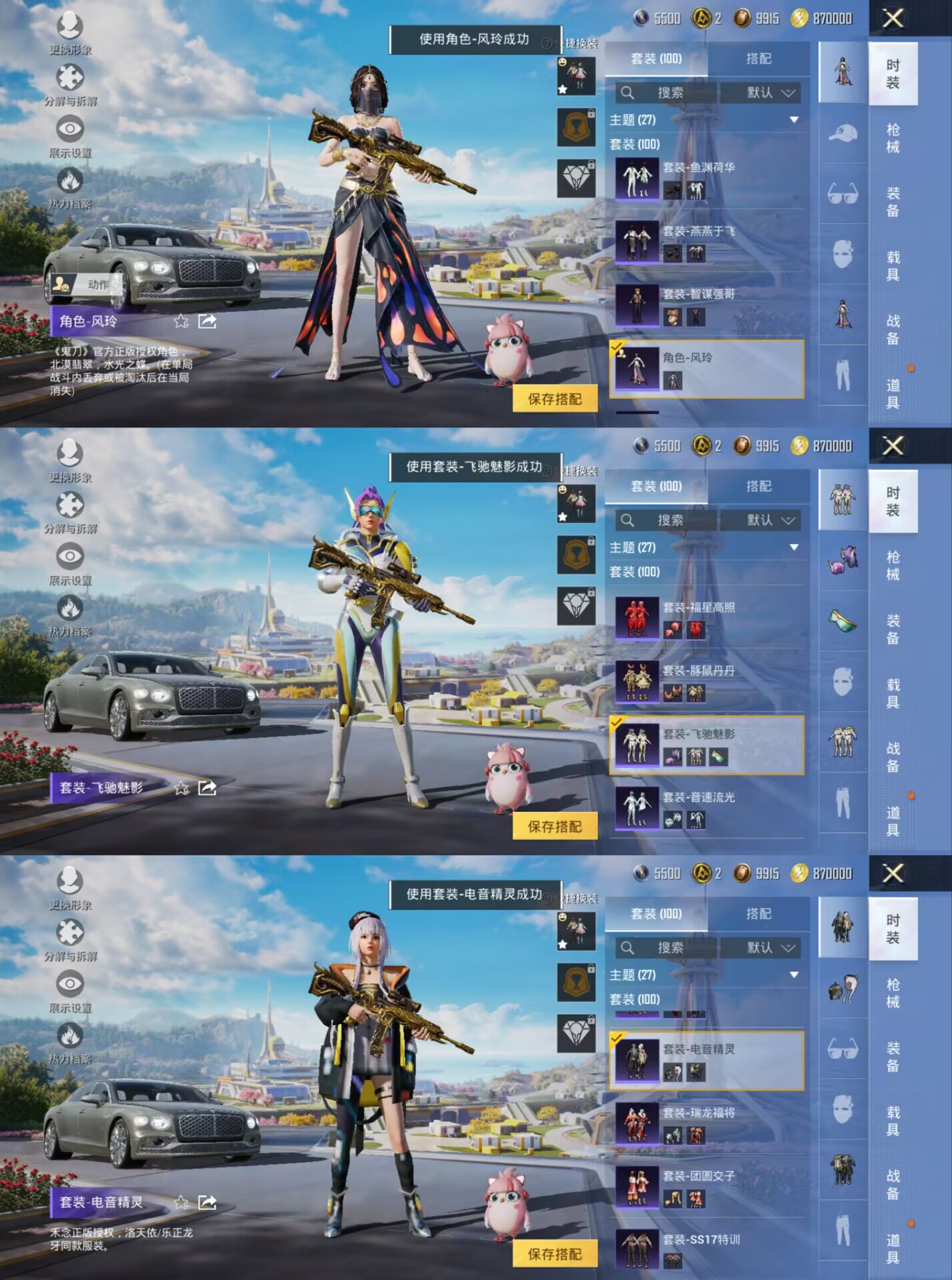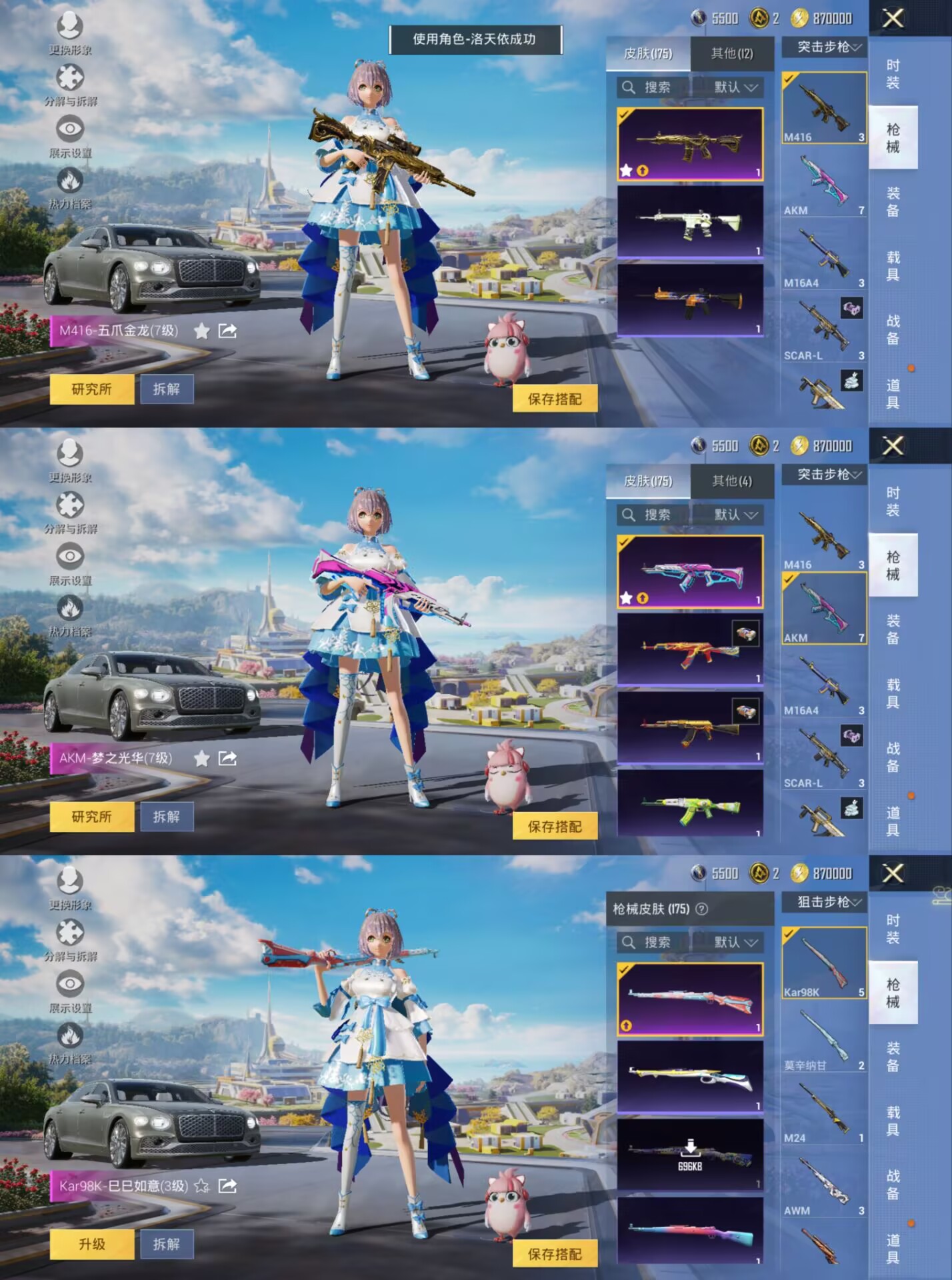 1载具-100套装-175呛皮-安卓q-1载具2粉装4特效呛6热门100套装175呛皮 49520热力值 18印记 历史绝世王牌18星 【1载具】 宾利飞驰布罗德盖棕双色 【2粉装】 蝶舞迷情 洛天依 【4特效呛】 m416-五爪金龙 7级 kar98k-巳巳如意 3级 dp-28-豹影疾电 4级 akm-梦之光华 7级 【6热门】 龟仙人 鹰眼刺客 团圆交子 瑞龙福将 豚鼠丹丹 m762-瑞