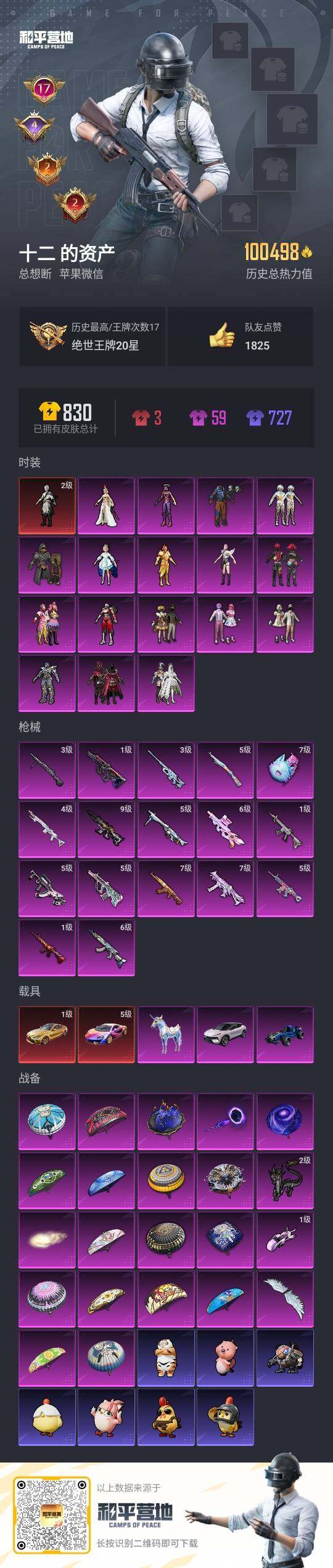 [14491235]苹果【极品神装号/2套绝世印记/17王牌印记/迈凯伦570s(镭射紫)五级/宝马m4(灿阳金)一级/墨龙九天-敖渊二级/合金龙骨(蓝)/m416-超新星一级/怪诞乔克/缤纷油彩/甜心巧克力/放客神游/洛天依/初号机 觉醒ver/赤蝎幽灵/都市猎人/冥河战士/派对舞王/小丑鱼/蓝螳螂/萌熊伴侣背包/1神装-17粉装-17特效呛-5载具-5粉色飞行器】 微信100498热力值-17王牌印记-157套装-235呛皮 【红色载具】:迈凯伦570s(镭射紫)五级,宝马m4(灿阳金)一级 【红色神装等级】:墨龙九天-敖渊二级 【红色角色神装】:墨龙九天-敖渊 【热门品类】:粉装-怪诞乔克,粉装-缤纷油彩,套装-浪漫天命,套装-赤蝎幽灵,套装-都市猎人,套装-冥河战士,套装-派对舞王,套装-深海小丑鱼,套装-小丑鱼,套装-金羽特工,套装-龟仙人,角色-mark.06 【粉色载具】:路特斯eletre(花绽灰),宝马m4(灿阳金),迈凯伦570s(镭射紫),合金龙骨(蓝),星梦玉骢 【粉色套装】:粉装-极限特训,粉装-怪诞乔克,粉装-甜心巧克力,粉装-宝贝奶油派,粉装-天使彩虹糖,粉装-缤纷油彩,粉装-放客神游,粉装-冰霜白皇,粉装-炙焰红王,角色-洛天依,粉装-千面幻镜,粉装-盖世英雄,角色-阿尔茜,角色-幻影,角色-茉莉星,角色-初号机 觉醒ver.,角色-萨利娅 【粉色呛皮等级】:akm-甜心宝贝七级,scar-l-童趣迷兔五级,m416-风花雪月一级,m416-超新星一级,m416-墨龙九天九级,groza-超新星五级,aug-星之彼岸一级,aug-超新星五级,m762-激战未来六级,ump45-玉魂晶魄七级,p90-仙履奇缘六级,kar98k-巳巳如意五级,mk14-精灵梦叶罗丽四级,m200-伏羲圣卦三级,dp-28-豹影疾电三级,mg3-洛神天依五级 【粉色呛皮】:akm-甜心宝贝,scar-l-童趣迷兔,m416-风花雪月,m416-超新星,m416-墨龙九天,groza-超新星,aug-星之彼岸,aug-超新星,m762-激战未来,ump45-玉魂晶魄,p90-仙履奇缘,kar98k-巳巳如意,mk14-精灵梦叶罗丽,m200-伏羲圣卦,dp-28-豹影疾电,mg3-