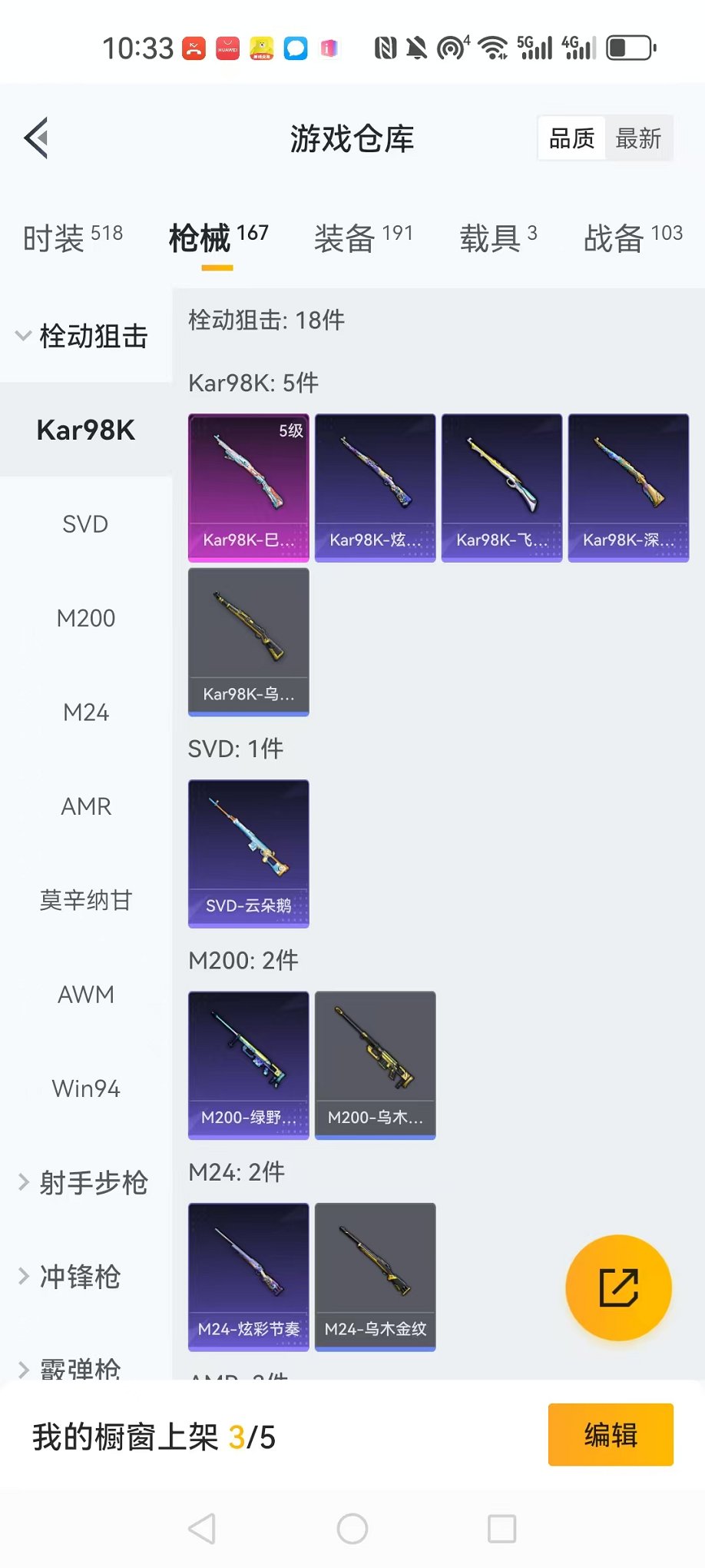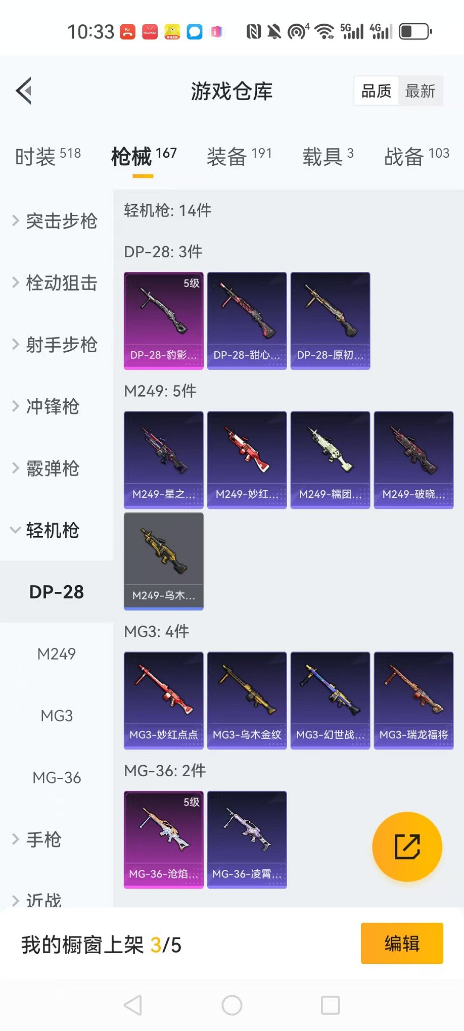 3载具-137套装-167呛皮-可二次【4粉装4特效呛3载具可秒换绑】 安卓q区-58312热力值-9印记-137套装-167呛皮 【3载具】 特斯拉3银色 特斯拉x白色 特斯拉x银色【4粉装】 数码大师 星之彼岸 深海曼妙 pel轰鸣竞梦者【4特效呛】 m416-风花雪月7级 kar98k-巳巳如意5级 dp-28-豹影疾电5级 mg-36-沧焰双生5级【52热门】 m416-蓝色火焰 gr