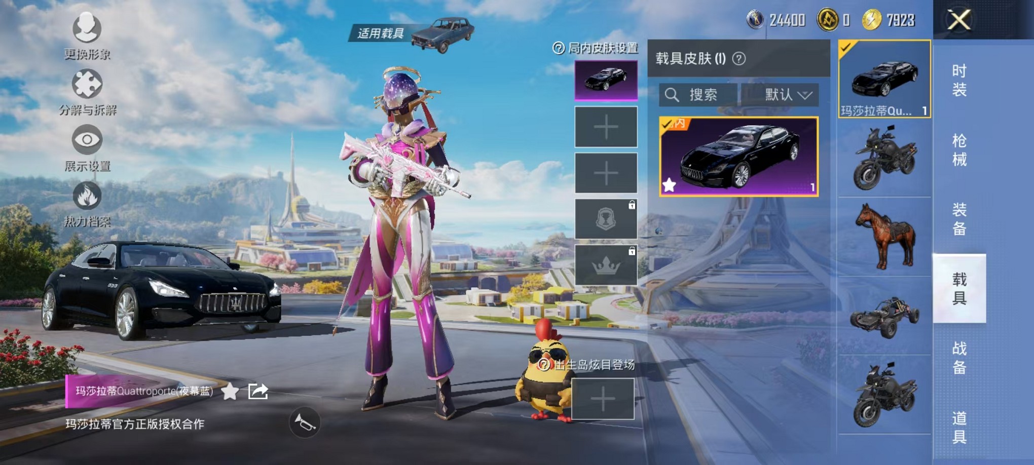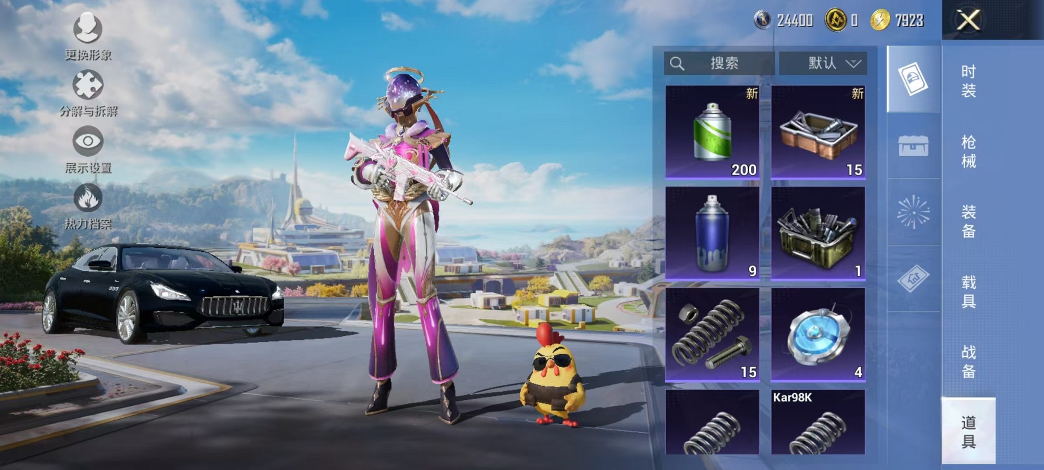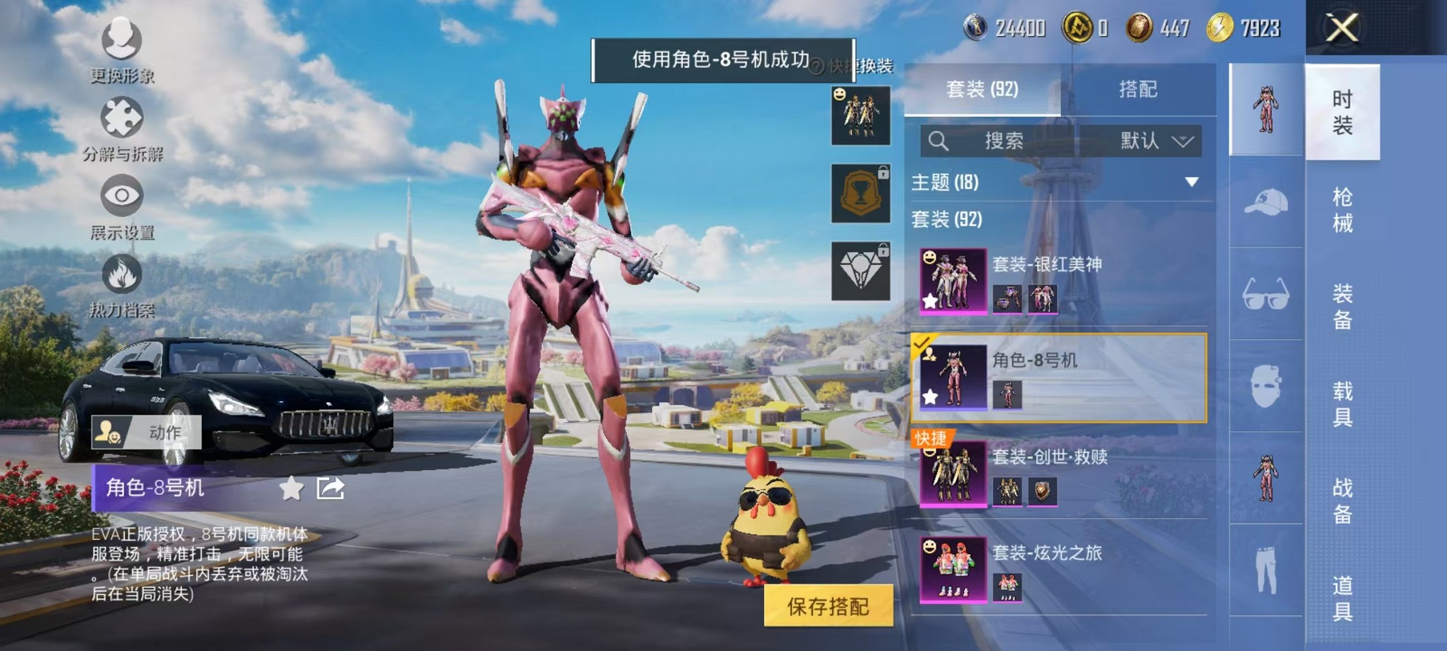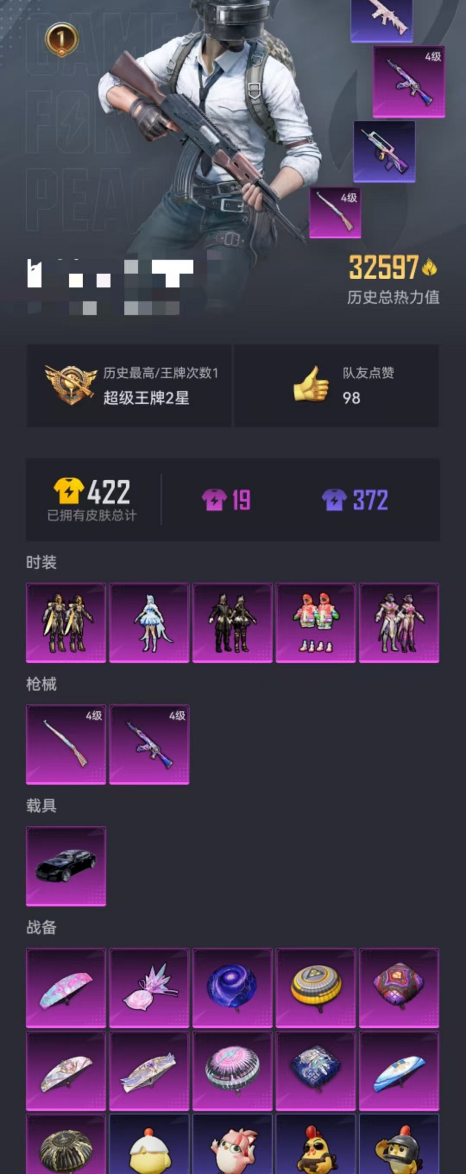 1载具-92套装-102呛皮-【蓝粉螳螂5粉装2特效呛1载具】 安卓v区-32627热力值-1印记-92套装-102呛皮 【1载具】 玛莎拉蒂q蓝色【2稀有】 8号机 mark.06【5粉装】 角色-美琪 炫光之旅 暗夜鎏金 银红美神 创世·救赎【2特效呛】 akm-星际浪客4级 kar98k-巳巳如意4级【25热门】 m416-蓝色火焰 m762-暗夜鎏金 长空猛禽 破蛋小黄鸡 军刀雅典娜 极速红