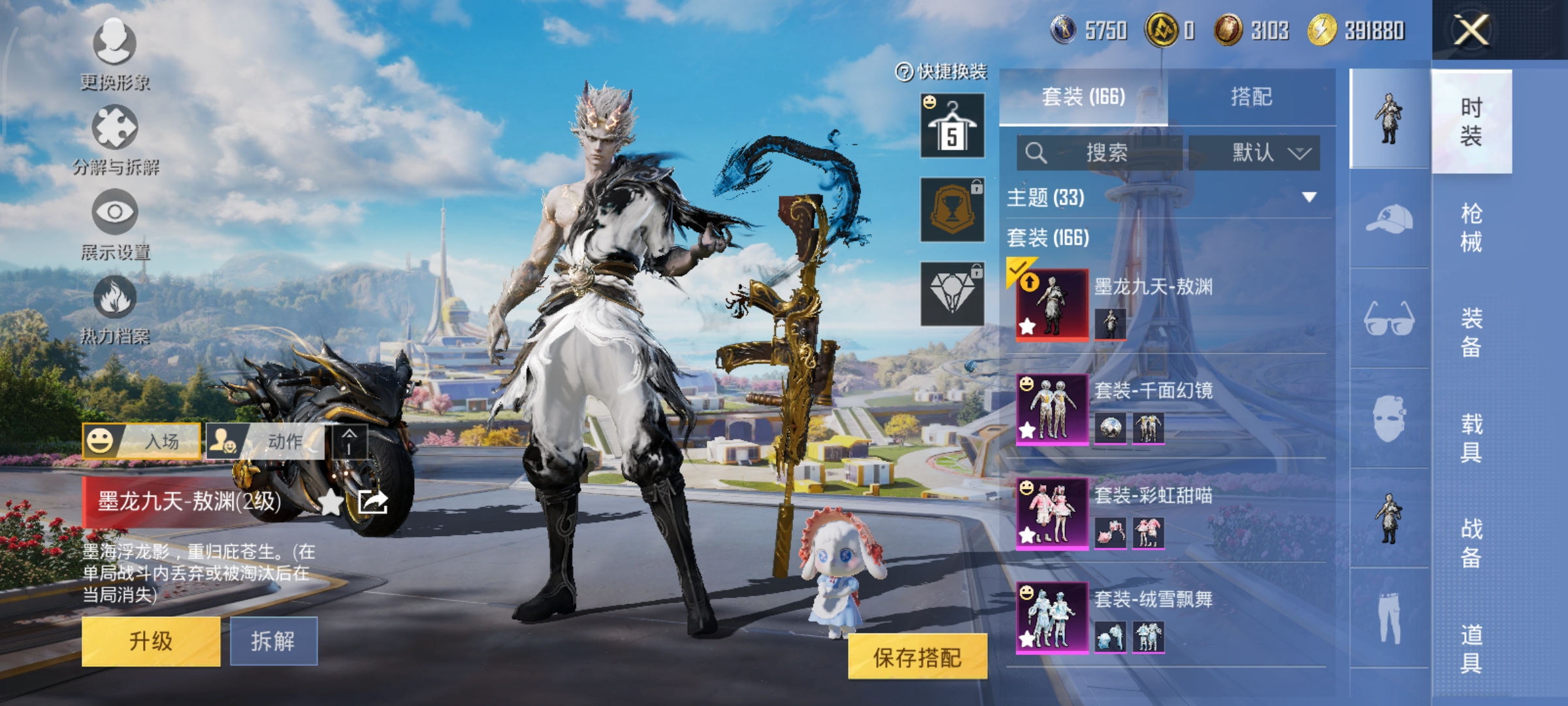 1载具-166套装-190呛皮-7.29万热力值,红装2级墨龙九天,套装-浪漫天命套装-深海小丑鱼套装-放客神游套装-蜜桃特工套装-蓝莓炮弹套装-千面幻镜套装-绒雪飘舞套装-霁雪冰心套装-彩虹甜喵套装-莲影清波墨龙九天-敖渊,m416-五爪金龙m416-墨龙九天akm-星际浪客scar-l-机甲封神dp