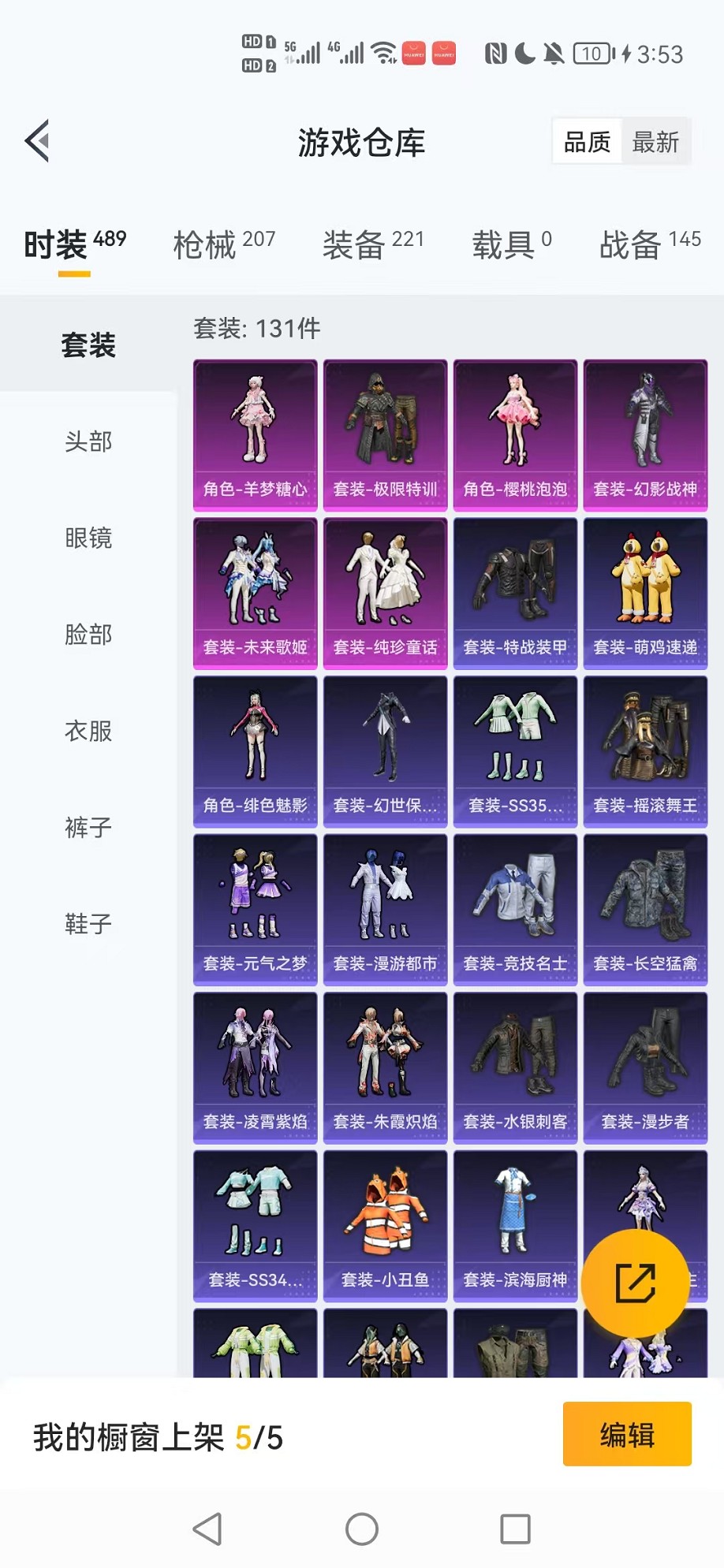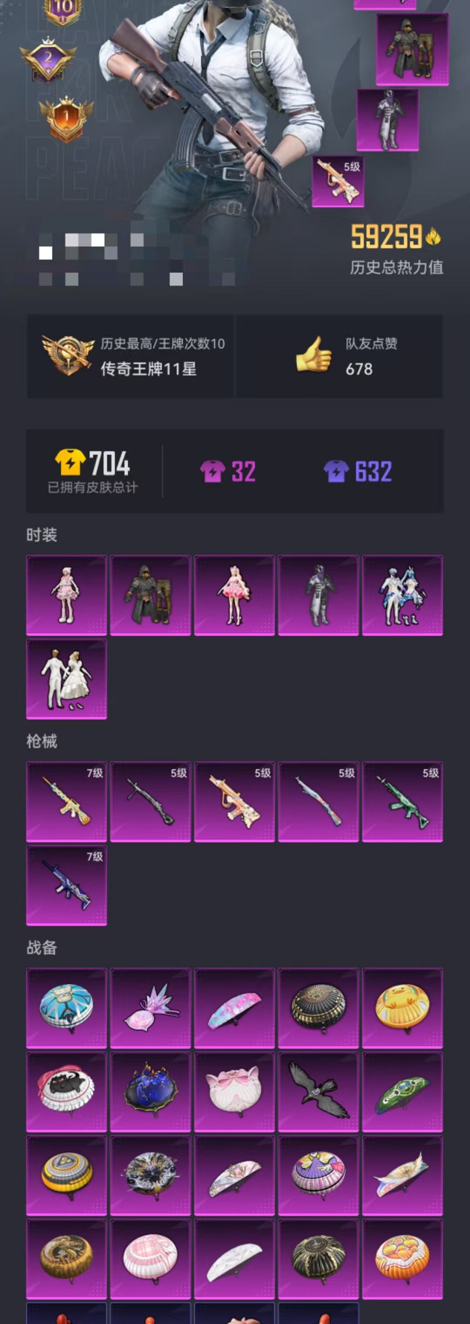 0载具-131套装-207呛皮-【蓝螳螂小丑鱼 6粉装6特效呛 可秒换绑】 安卓q区-59259热力值-10印记-131套装-207呛皮 【2稀有】 mark.06 奇异狩猎者【6粉装】 角色-樱桃泡泡 纯珍童话 未来歌姬 幻影战神 极限特训 角色-羊梦糖心【6特效呛】 scar-l-青春物语7级 m16a4-垂柳戏鸭7级 m762-青锋波束5级 kar98k-巳巳如意5级 dp-28-豹影疾