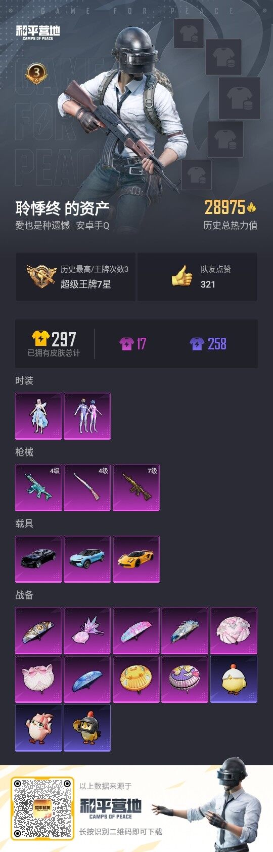 [14491893]安卓 手q-2粉装-3特效呛-3载具-1粉色飞行器-28975热力值-3王牌印记-53套装-84呛皮 【热门品类】:粉装-梦幻火箭,套装-浪漫波比,套装-粉红小猪 【粉色载具】:路特斯evija(星际黄),路特斯eletre(冰川蓝),玛莎拉蒂quattropte(夜幕蓝) 【粉色套装】:粉装-梦幻火箭,角色-星梦奇缘 【粉色呛皮等级】:m416-五爪金龙七级,蜜獾-异瞳寒姬四级,kar98k-巳巳如意四级 【粉色呛皮】:m416-五爪金龙,蜜獾-异瞳寒姬,kar98k-巳巳如意 【粉色降落伞】:梦幻火箭降落伞,垂柳戏鸭降落伞,星梦奇缘降落伞,千金淑猫降落伞,冷漠罗丽降落伞,宁雨蝶降落伞,极意拳锋降落伞 【稀有套装】:套装-糖糖葫芦,套装-青团波波,套装-棉花软糖,角色-摩登魅猫,套装-燕燕于飞,套装-鱼渊荷华,角色-糖霜甜心,套装-紫幽梦,套装-蓝冰羽,套装-云朵鹅,套装-雪绒豹,套装-炫彩糖果 【稀有呛皮】:aug-冰晶雪宝,scar-l-炫彩节奏,scar-l-玉兔迎春,m416-红色方程式,groza-异彩先驱,aug-青春冒险家,q-彩虹符号,m762-天降萌叽,m762-彩虹符号,m762-镭射皇者,m762-云朵鹅,ac-val-天降萌叽,蜜獾-娇憨猪猪,uzi-天降萌叽,uzi-娇憨猪猪,ump45-夜灯,ump45-生命誓言,汤姆逊-天降萌叽,kar98k-彩虹符号,kar98k-梦幻火箭,sks-炫彩节奏,mini14-梦幻火箭,slr-娇憨猪猪,amr-暗夜行者,svd-云朵鹅,s686-千金淑猫,s1897-炫彩节奏,s12k-娇憨猪猪,spas-12-云朵鹅,dp-28-彩虹符号,mg3-幻世战舞者,沙墨之鹦-云朵鹅,大砍刀-云朵鹅,平底锅-宁雨蝶 【其他套装】:套装-ss21特训,套装-ss22特训,套装-ss24特训,套装-旭日情侣,套装-热血青春,套装-特战装甲,套装-狂沙舞者,套装-猎鹰,套装-疯狂小兔子,套装-破蛋小黄鸡,套装-竞技名士,套装-粉红小猪,套装-缤纷果语,套装-耀粉歌者,套装-长空猛禽,套装-青年教官,套装-魅力单车,套装-麻辣教官,套装-冰川特警,套装-浪漫波比,套装-娇憨猪猪,套装-萌趣咩咩,角色-粉雾星云 【稀有头盔】:梦幻火箭头盔3级,梦幻火箭头盔2级,梦幻火箭头盔1级 【稀
