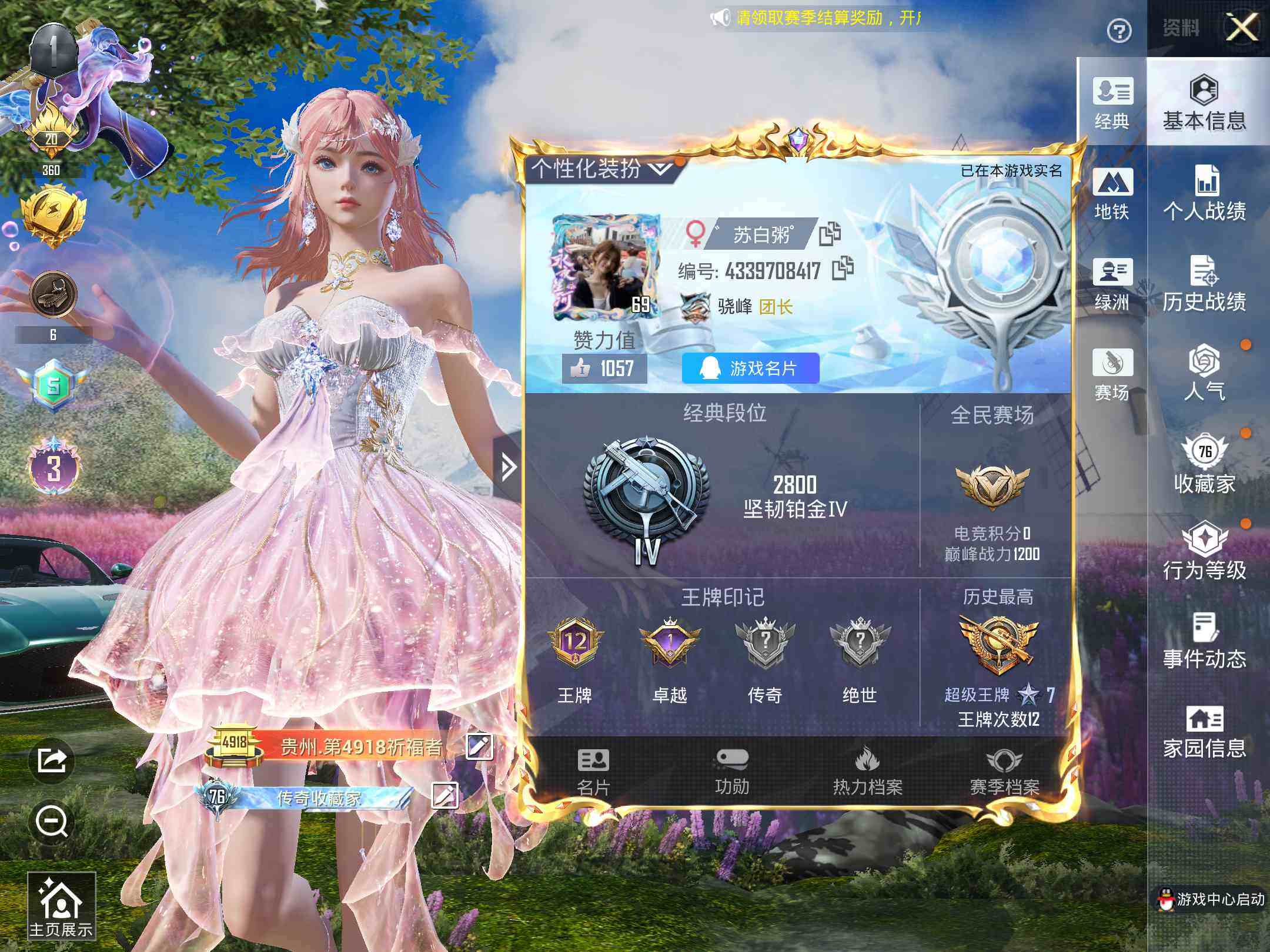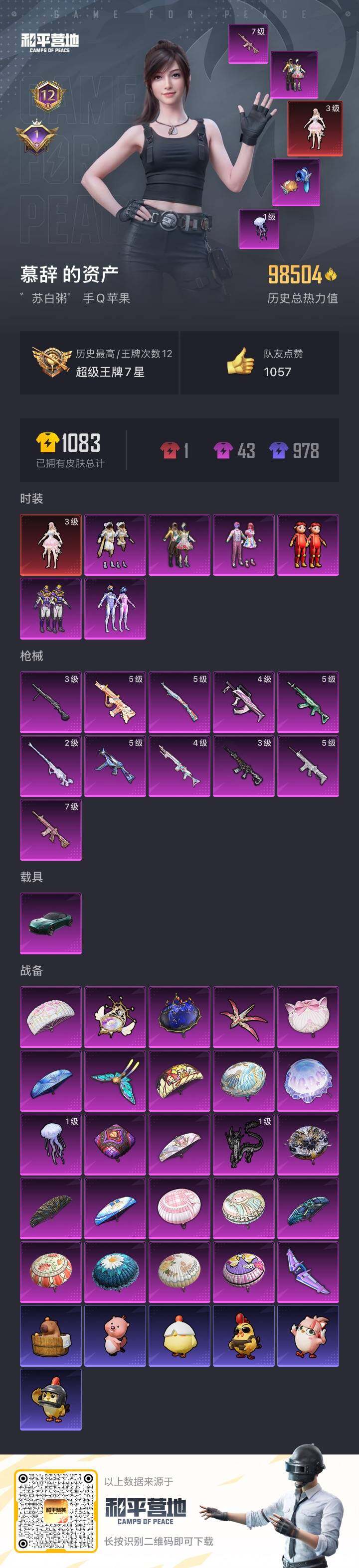 2294891手q-1神装-6粉装-11特效呛-1载具-6粉色飞行器-98504热力值-12王牌印记-217套装-300呛皮【满天赋】 【红色神装等级】:梦海之灵-妮芮妲三级 【红色角色神装】:梦海之灵-妮芮妲 【热门品类】:粉装-梦幻火箭,套装-龟仙人,套装-暗影哥特,套装-浪漫波比,套装-粉红小猪,角色-mark.06 【粉色载具】:阿斯顿马丁dbs(绿) 【粉色套装】:粉装-天