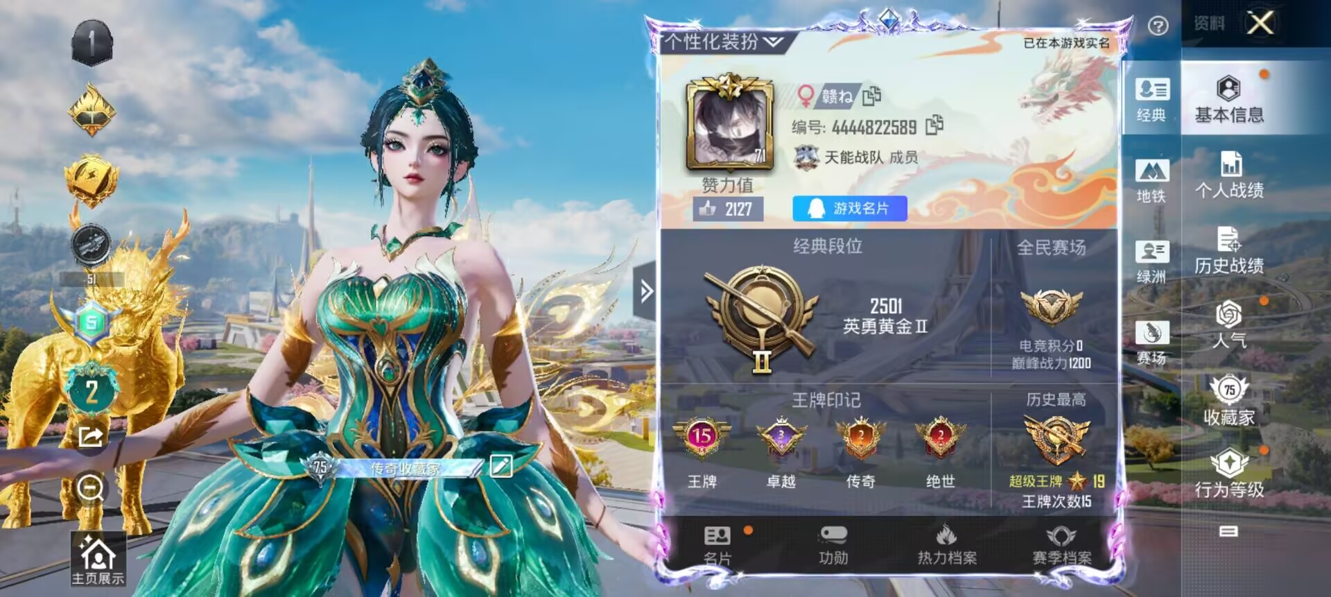 0载具-0套装-0呛皮-热力值:85050,15粉装,11粉呛,2载具,22粉色战备,186套装,240呛械,330装备,10滑翔尾翼,87降落伞;等级:lv.71 历史最高段位:超级王牌19星 当前段位:英勇.黄金ⅱ;王牌印记15次 卓越印记3次 传奇印记2次 绝世印记2次; 【热门套装】:辉羽雀灵-初翊[2级],盛世惊