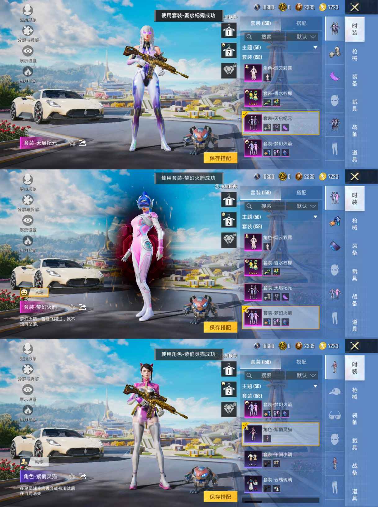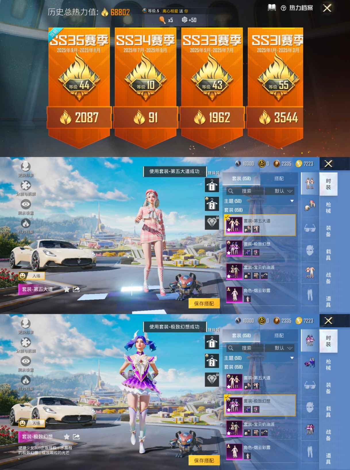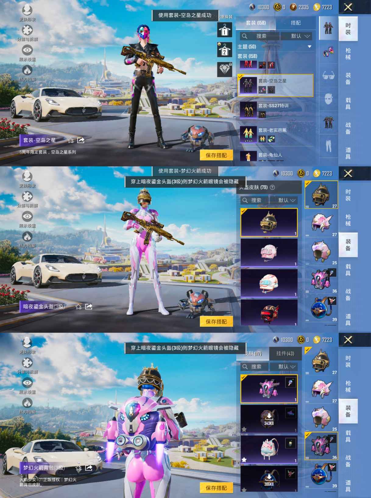 3载具-158套装-192呛皮-【3载具7粉装4特效梦幻火箭 胖达圆圆 】安卓q-3载具7粉装4特效呛15热门158套装192呛皮 68802热力值 13印记 历史超级王牌17星 【3载具】 玛莎拉蒂m白色 阿斯顿马丁s绿色 焰龙咆哮 【7粉装】 梦幻火箭 天启纪元 宝贝奶油派 烟云彩露 第五大道 极致幻想 香水柠檬 【4特效呛】 m416-五爪金龙 7级 kar98k-巳巳如意 5级 m16a4-垂
