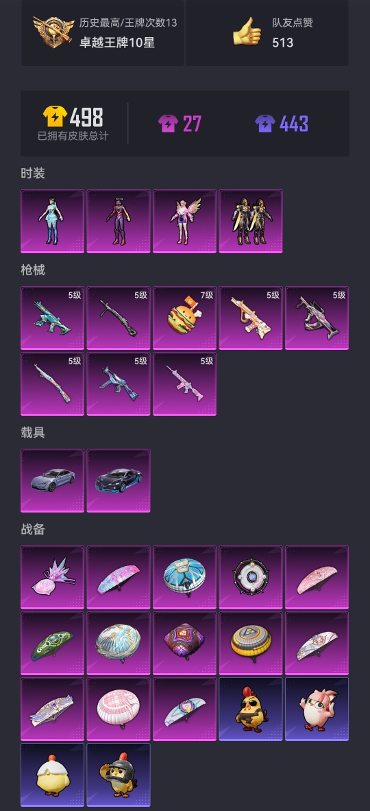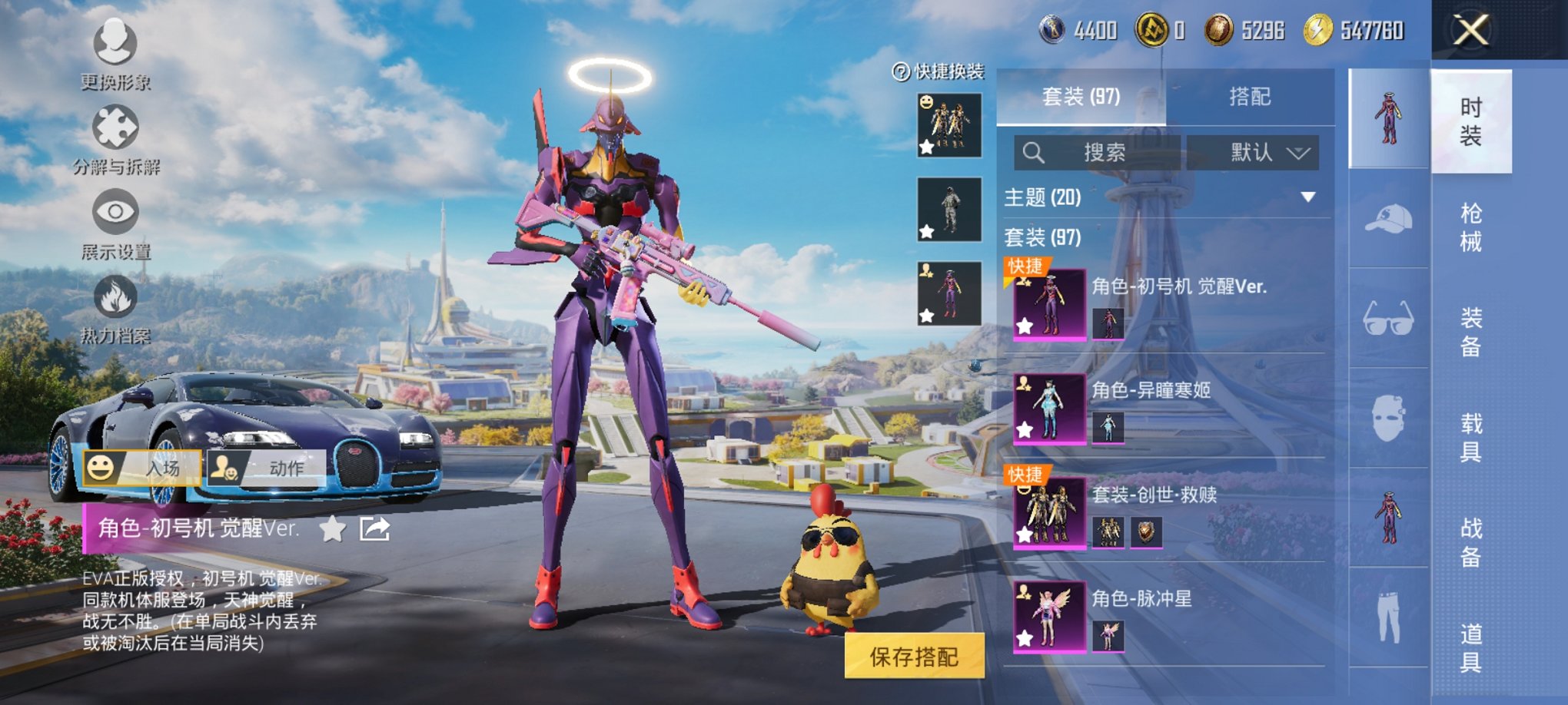 2载具-97套装-140呛皮-【觉醒螳螂8特效呛4粉装2载具 秒换绑不用等】 安卓q区-45699热力值-13印记-97套装-140呛皮 【2载具】 仰望u7先锋版阿盖尔紫 布加迪威龙海洋蓝【2稀有】 mark.06蓝螳螂 8号机粉螳螂【4粉装】 角色-初号机 觉醒ver. 创世·救赎 角色-脉冲星 角色-异瞳寒姬【8特效呛】 破片手留单-热量炸弹7级 蜜獾-异瞳寒姬5级 kar98k-巳巳