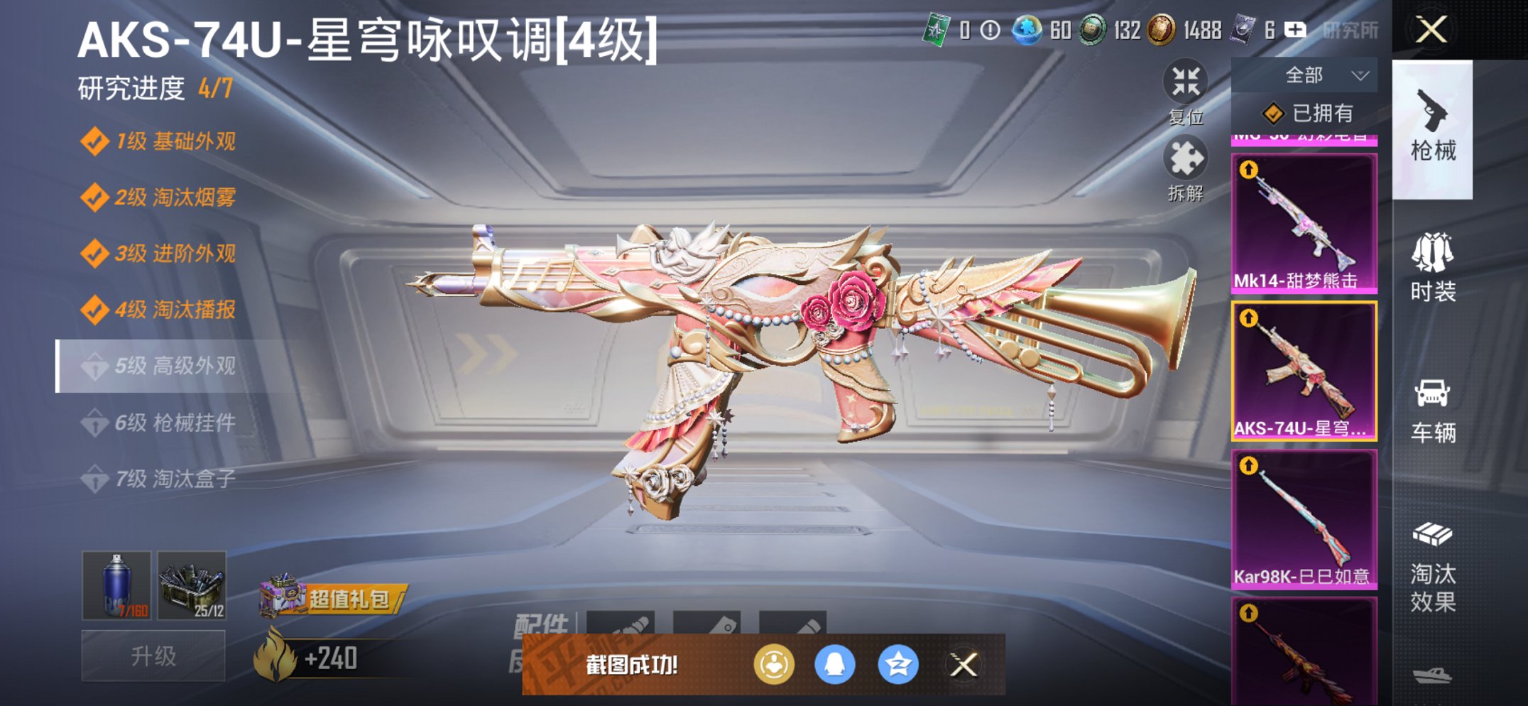 1载具-115套装-138呛皮-【m4风花雪月6特效呛3粉装1载具浪漫天命红眼罩迪迦奥特曼赛罗奥特曼 秒换绑不用等】 苹果q区-47958热力值-5印记-115套装-138呛皮 【1载具】 兰博轿车灰色【3粉装】 骨龙祭渊 银龙傲海 星穹咏叹调【6特效呛】 m416-风花雪月6级 kar98k-巳巳如意3级 aks-74u-星穹咏叹调4级 mk14-甜梦熊击5级 dp-28-豹影疾电5级