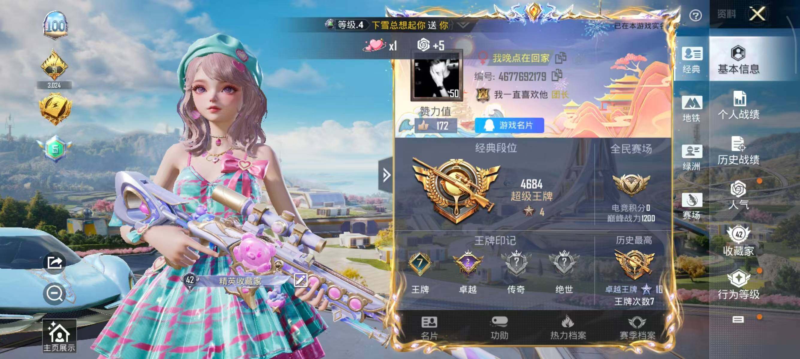 1载具-78套装-103呛皮-bl安卓 手q-1粉装-3特效呛-1载具-0粉色飞行器-28595热力值-7王牌印记-78套装-103呛皮 【精品1车皮3满级特效呛公主号 女号 小裙子多】:套装-龟仙人 【粉色载具】:霜龙神御(云雾蓝) 【粉色套装】:粉装-星穹咏叹调 【粉色呛皮等级】:kar98k-巳巳如意五级,mk14-甜梦熊击五级,dp-28-豹影疾电五级 【粉色呛皮】:kar98k-巳巳如意,mk14-甜