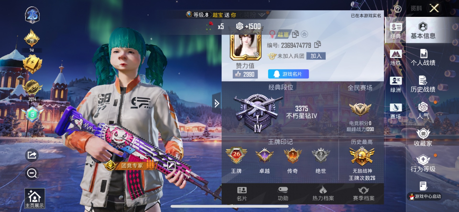 [14493986]3粉装 4特效呛 26印记 可二次 可修改实名 战神框 【热门装扮】:奇异狩猎者巡查员衣服绝对防御上衣幻彩电音宝贝奶油派炙焰牛王胖达团团鹰眼刺客呆萌铁蟹深海小丑鱼 【稀有呛皮】:mg-36-沧焰双生dp-28-豹影疾电m416五爪金龙spas-12音爆索