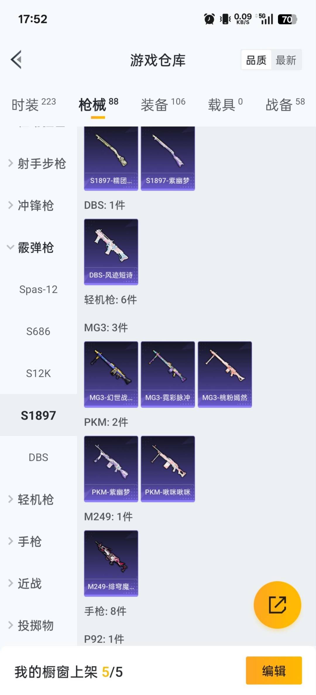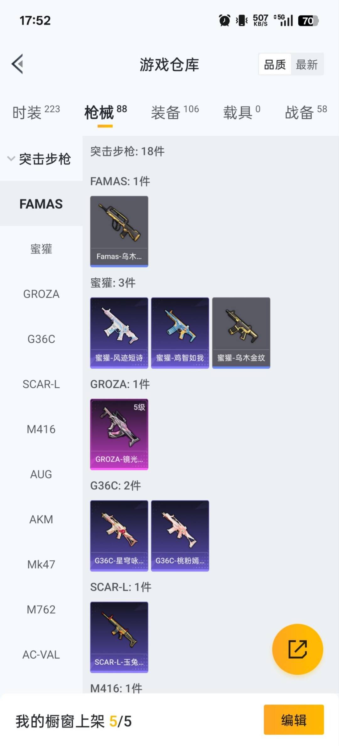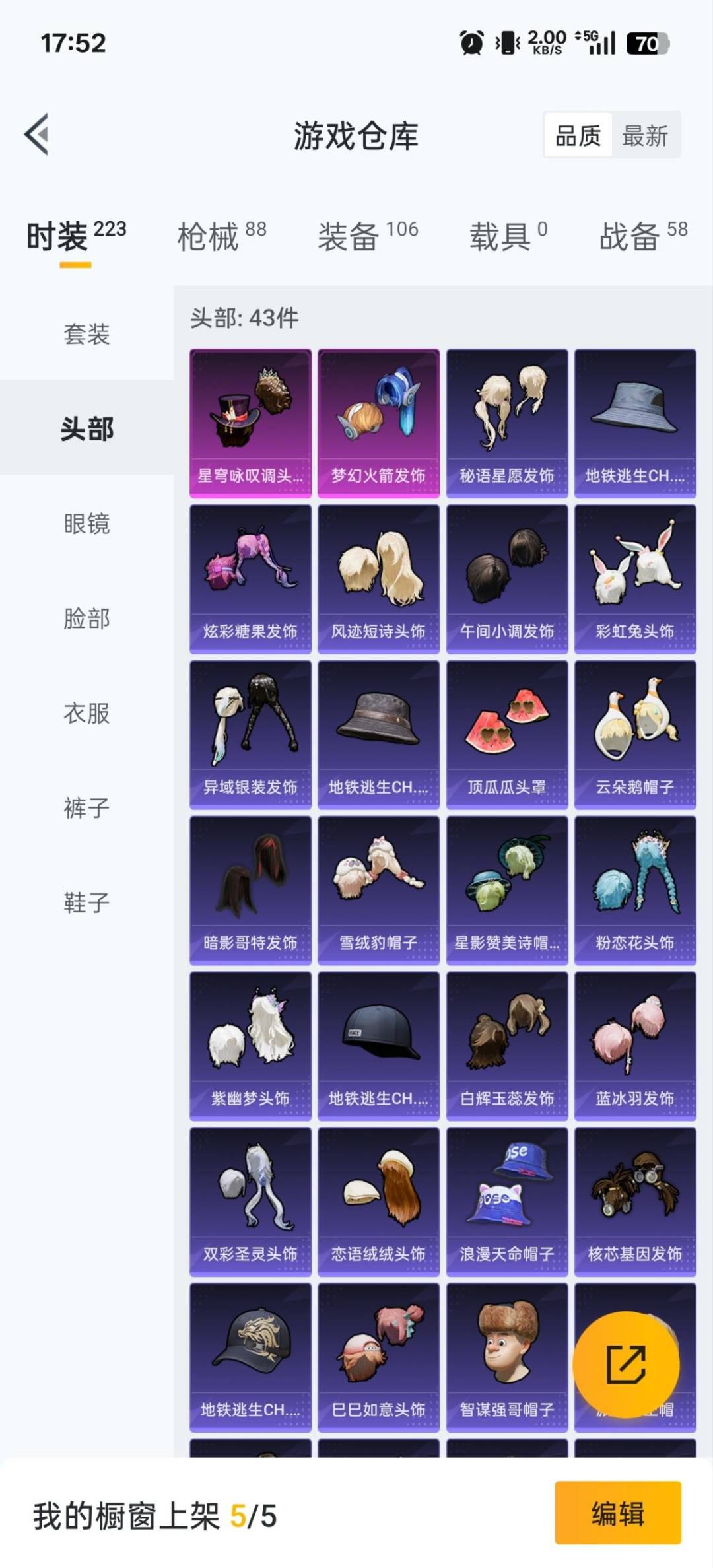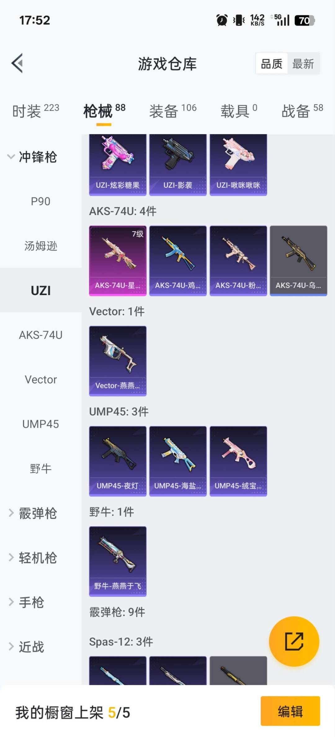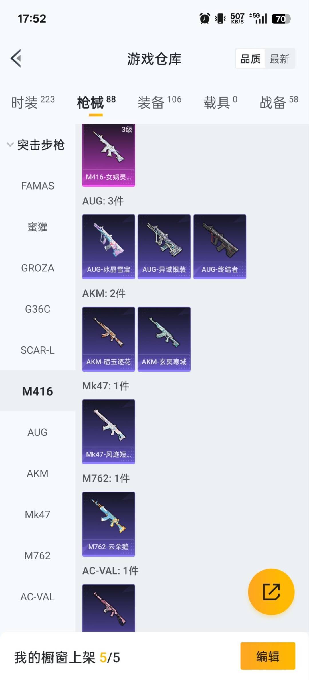 2粉装 4特效呛 3印记 可二次 可修改实名 【热门装扮】:星穹咏叹调梦幻火箭新101 派对舞王小金鞋 【稀有呛皮】:aks-74u-星穹咏叹调m416-女娲灵识kar98k-巳巳如意groza-镜光银凌 【七级特效呛】:七级aks-74u-星穹咏叹调 【五级特效呛】:五级gro