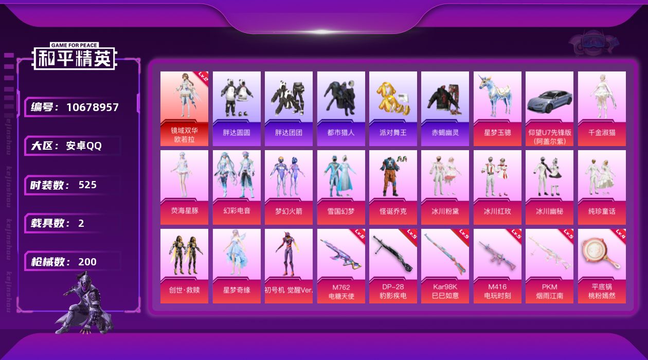 2载具-143套装-208呛皮yzj10211 可二次 安卓q-67959热力值 7王牌印记 历史传奇王牌12星 【身法素材小极品 欧若拉 2级 赤蝎 都市 天命 金鞋 螳螂 雪国幻梦 怪诞乔克(小丑)星梦奇缘 胖达 红眼罩 】137套装 200呛皮 【2载具】 仰望u7先锋版阿盖尔紫 星梦玉骢 【1神装】 镜域双华-欧若拉 2级 【5稀有】 赤蝎幽灵 都市猎人 浪漫天命 派对舞王 派对舞王(金靴子) 【13