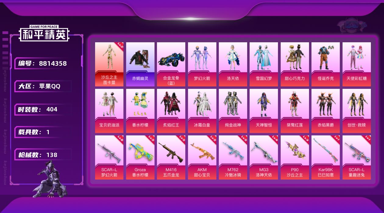 1载具-105套装-142呛皮yzj9198 可二次 苹果q-56557热力值【红装图卡盟身法素材号 ss20无敌战神框 m4星际 ak甜心 图卡盟2级 雪国 小丑[怪诞] 火箭少女 巧克力三姐妹 洛天依 赤蝎 西部牛仔[黄口罩] 红眼罩 合金龙骨 粉熊包灰熊包 1红装15粉12呛】 11王牌印记 历史无敌战神 99套装 138呛皮 【1载具】 合金龙骨蓝色 【1神装】 沙丘之主-图卡盟 2级 【6稀有】 赤蝎幽灵