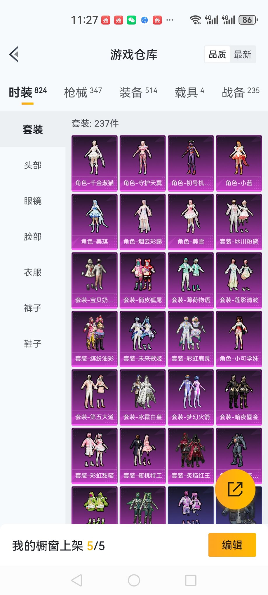 4载具-237套装-347呛皮-【满级m4至情至圣觉醒螳螂26粉装11特效呛4载具身法素材号 秒换绑不用等】 安卓q区-热力值-18印记-237套装-347呛皮 【4载具】 特斯拉r沁心粉 合金龙骨蓝色 仰望u9赤霞丹朱 疾风龙骑【3稀有】 mark.06蓝螳螂 8号机粉螳螂 奇异狩猎者【26粉装】 角色-初号机 觉醒ver. 梦幻火箭 宝贝奶油派 缤纷油彩(猪脸妹) 蜜桃特工 冰霜白皇 彩虹