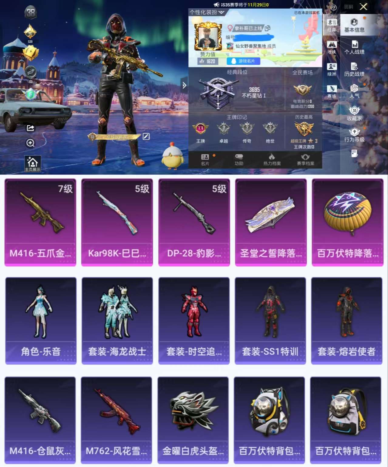 0载具-163套装-202呛皮-hx8277【3特效呛163套装202呛皮58515热力值13王牌印记-7级m416-五爪金龙-m416-仓鼠灰灰-百万伏特背包-身法素材号】可二次-安卓q-3特效呛17热门163套装202呛皮 58515热力值 13印记 历史超级王牌3星 【3特效呛】 m416-五爪金龙 7级 kar98k-巳巳如意 5级 dp-28-豹影疾电 5级 【17热门】角色-乐音 奇