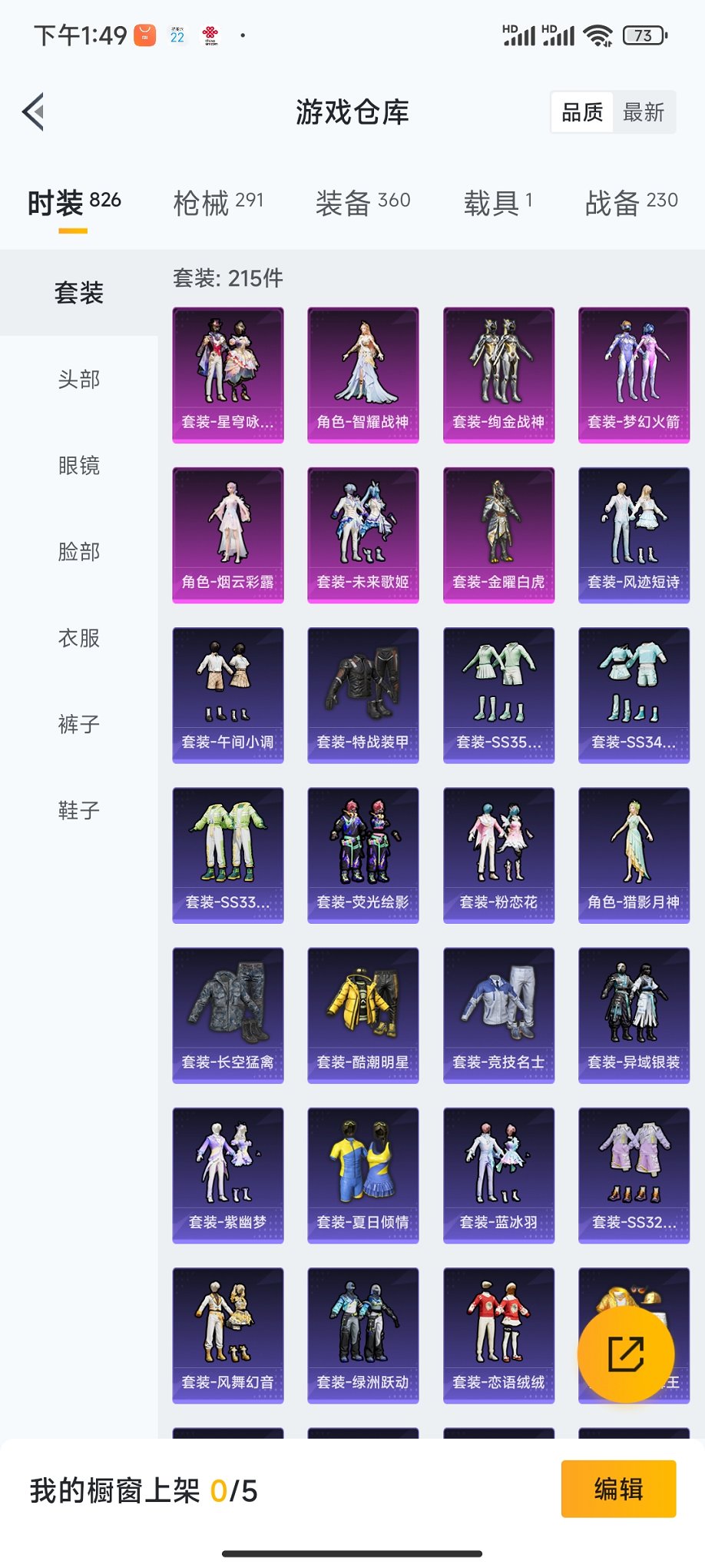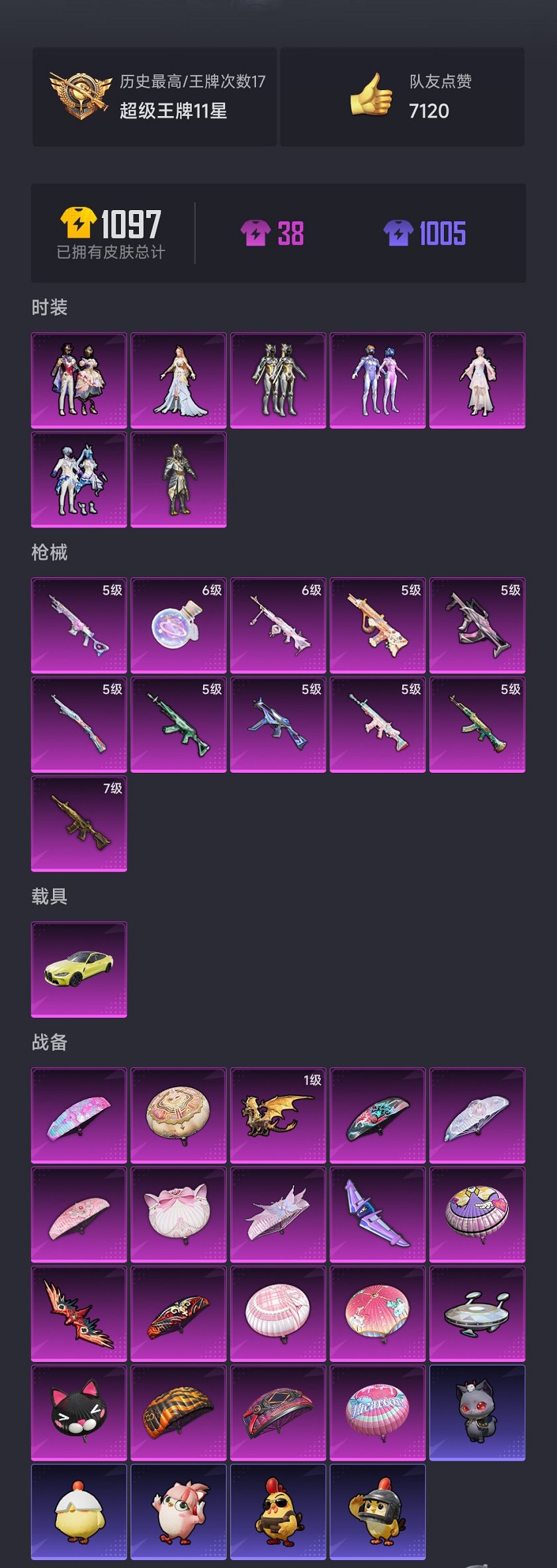 1载具-215套装-291呛皮-【巡查衣金鞋都市男神梦幻火箭11特效呛7粉装1载具身法素材号 秒换绑不用等】 安卓q区-94443热力值-17印记-215套装-291呛皮 【1载具】 宝马m4圣保罗黄【5稀有】 巡查衣 派对舞王 派对舞王(金靴子) 都市猎人 mark.06蓝螳螂【7粉装】 梦幻火箭 绚金战神 未来歌姬 金曜白虎 角色-智耀战神 角色-烟云彩露 星穹咏叹调【11特效呛】 m416-五爪金龙