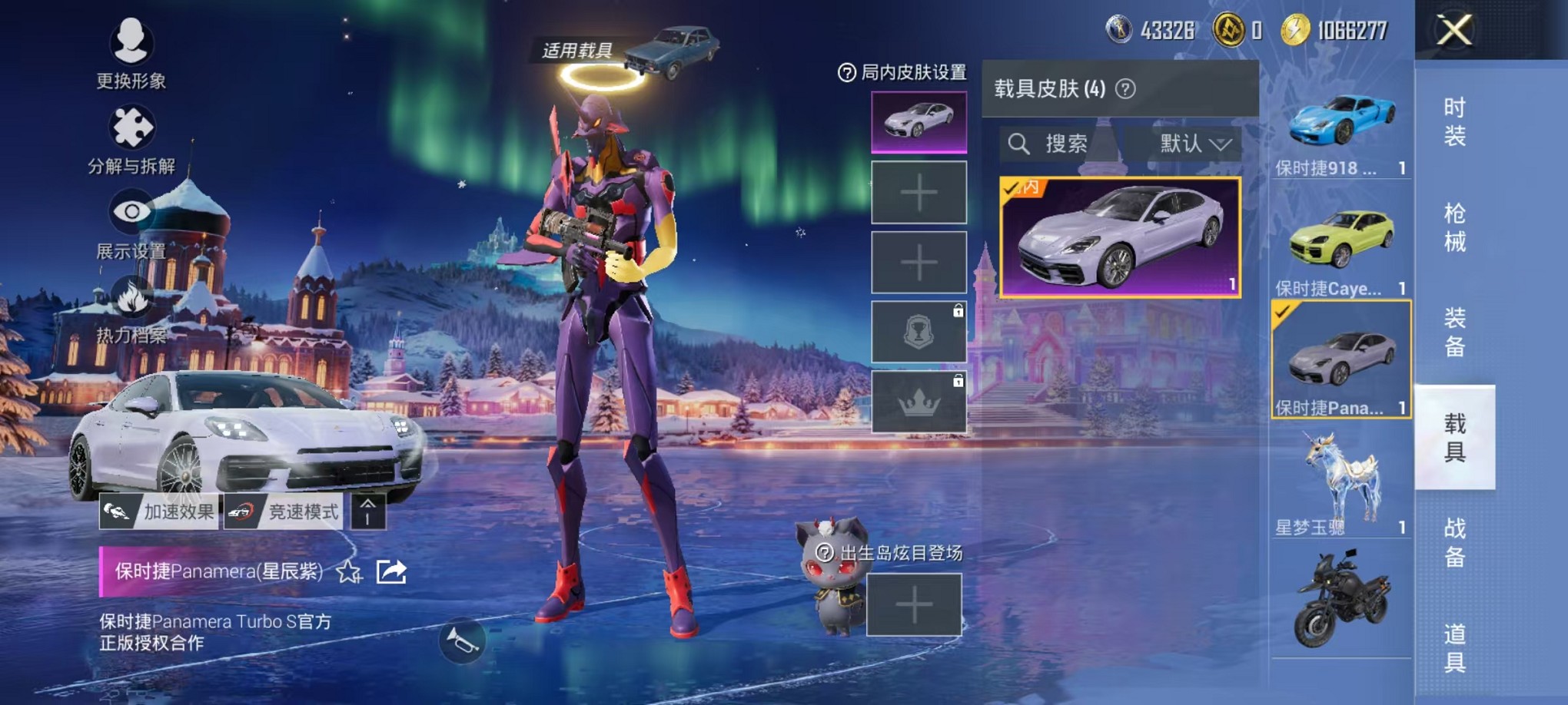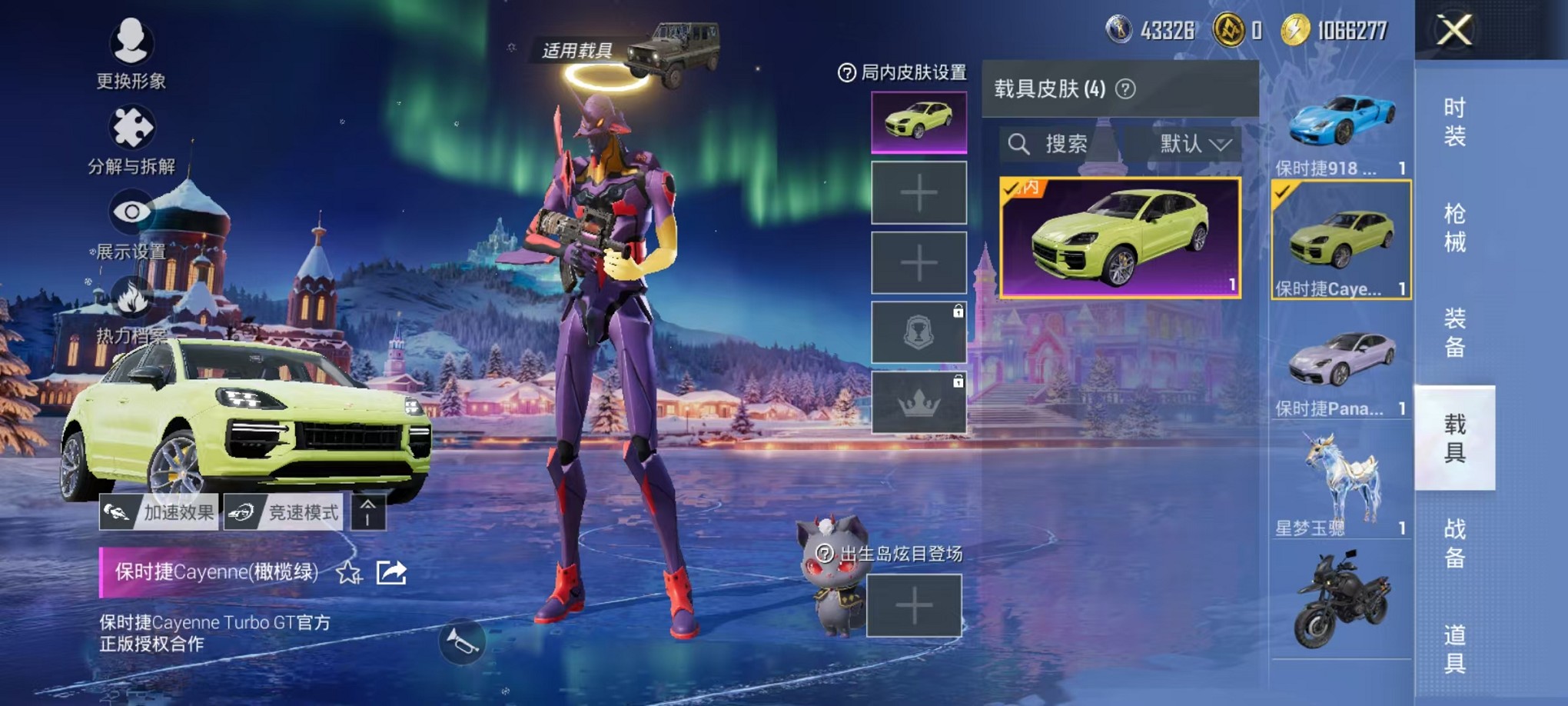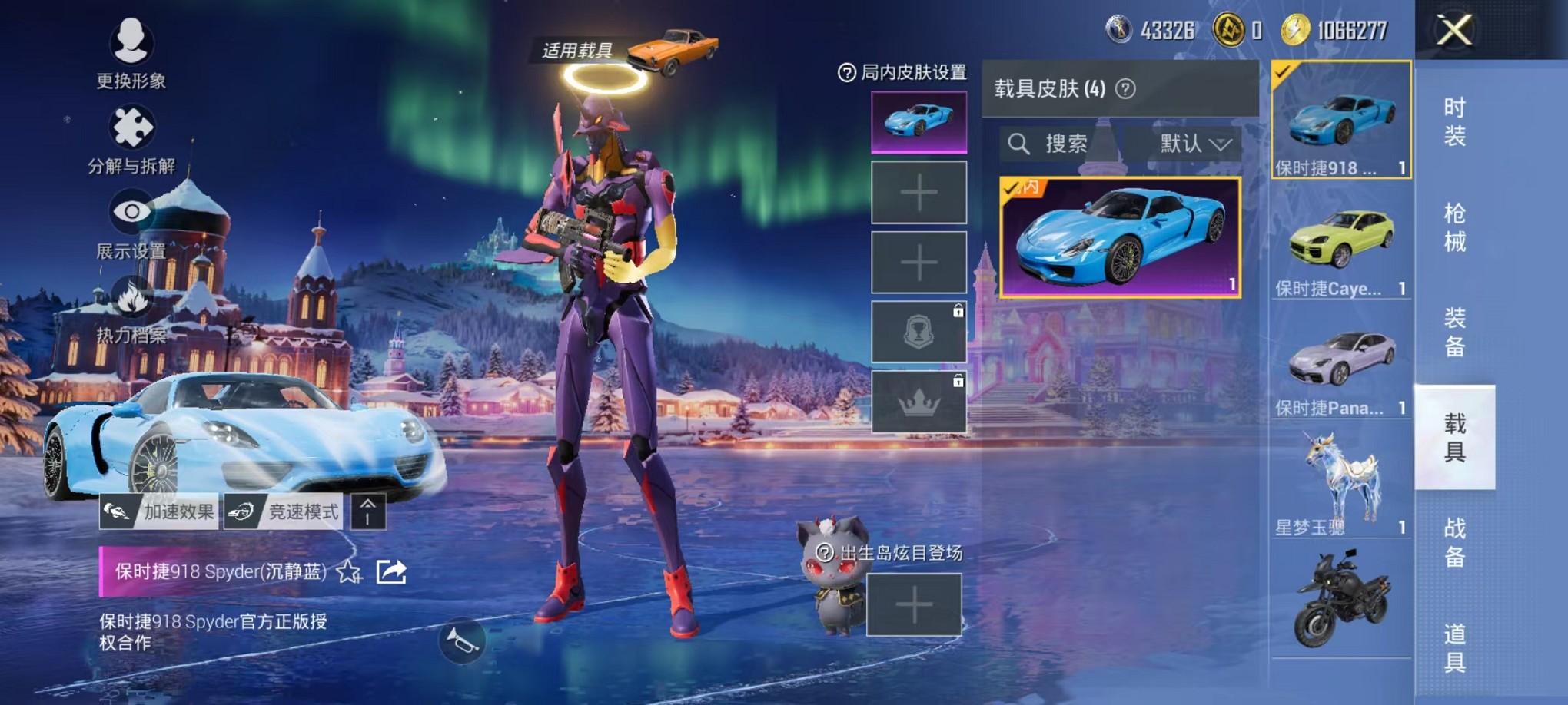 4载具-144套装-194呛皮-【觉醒螳螂 金鞋子3辆保时捷 15粉装9特效呛4载具】 安卓v区-72077热力值-12印记-144套装-194呛皮 【4载具】 保时捷cayenne橄榄绿 星梦玉骢 保时捷918 sper沉静蓝 保时捷panamera星辰紫【1稀有】 派对舞王【15粉装】 角色-初号机 觉醒ver. 水仙星 绚金战神 星之彼岸 复仇流浪者 星之信仰 紫电风暴 赤焰黑爵 深渊皇